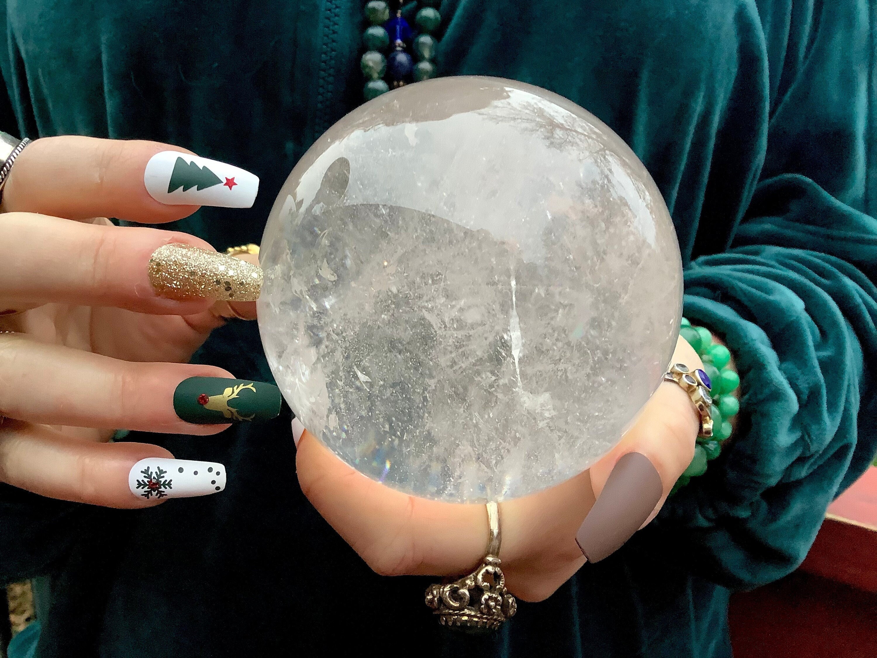 I am very happy to pass along this large, 2-pound 2-ounce, clear quartz crystal ball.