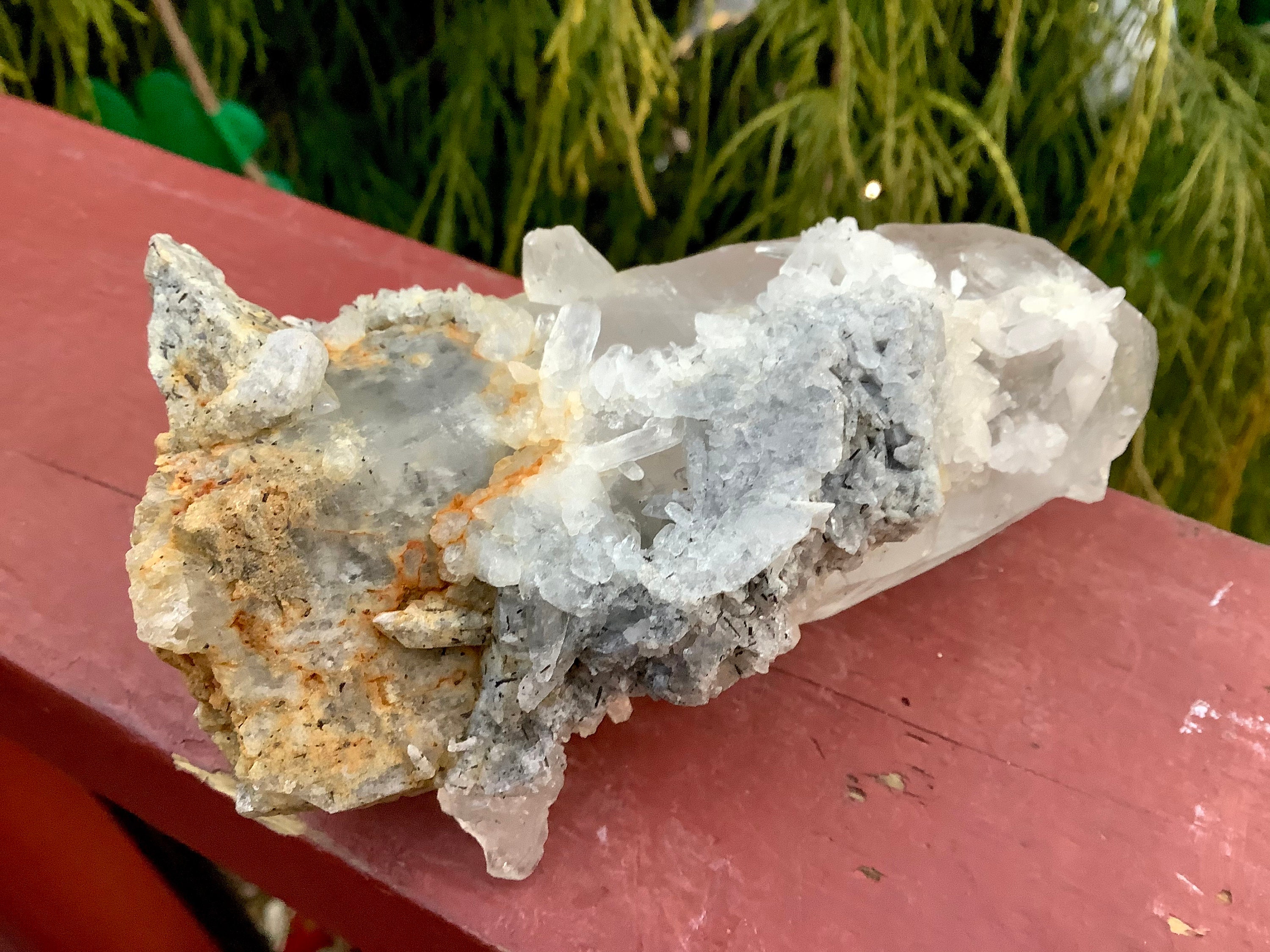 Himalayan Quartz Cluster ~ 12 oz. ~ 4 1/2" Long ~ Actinolite Encrusted Inclusions ~ Reiki Healing Altar Display ~ Metaphysical Home Decor