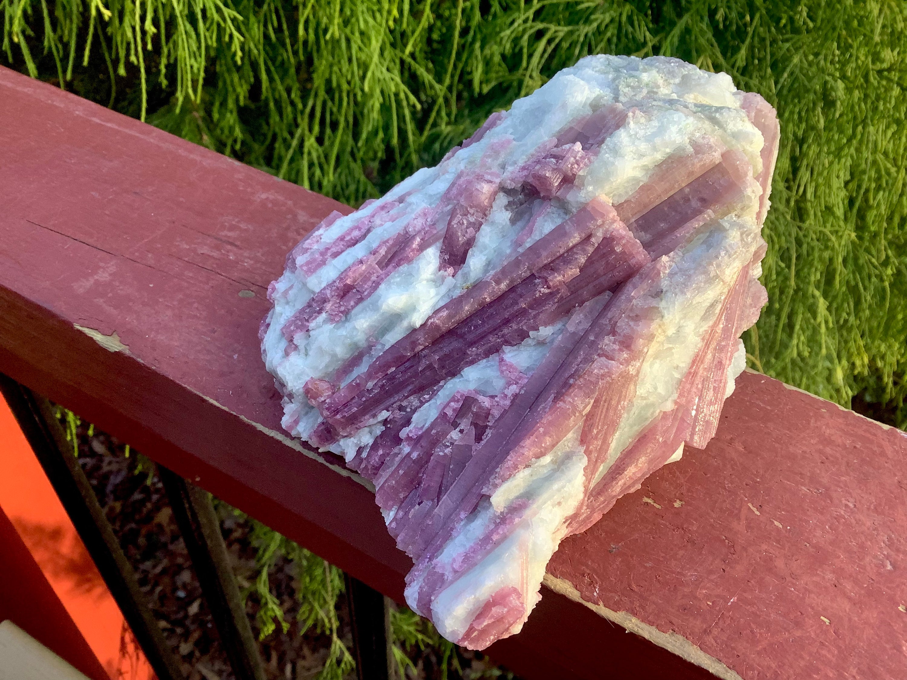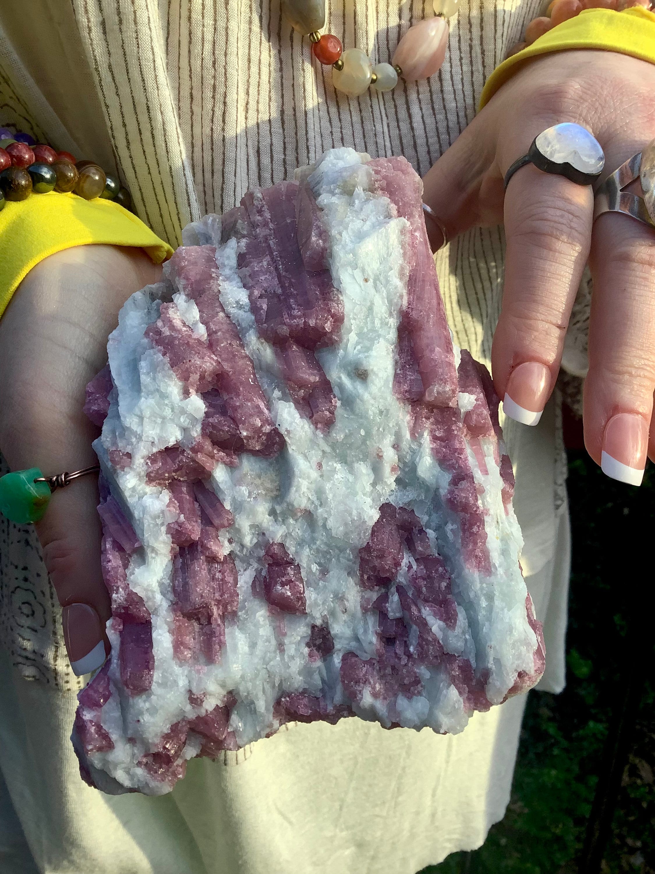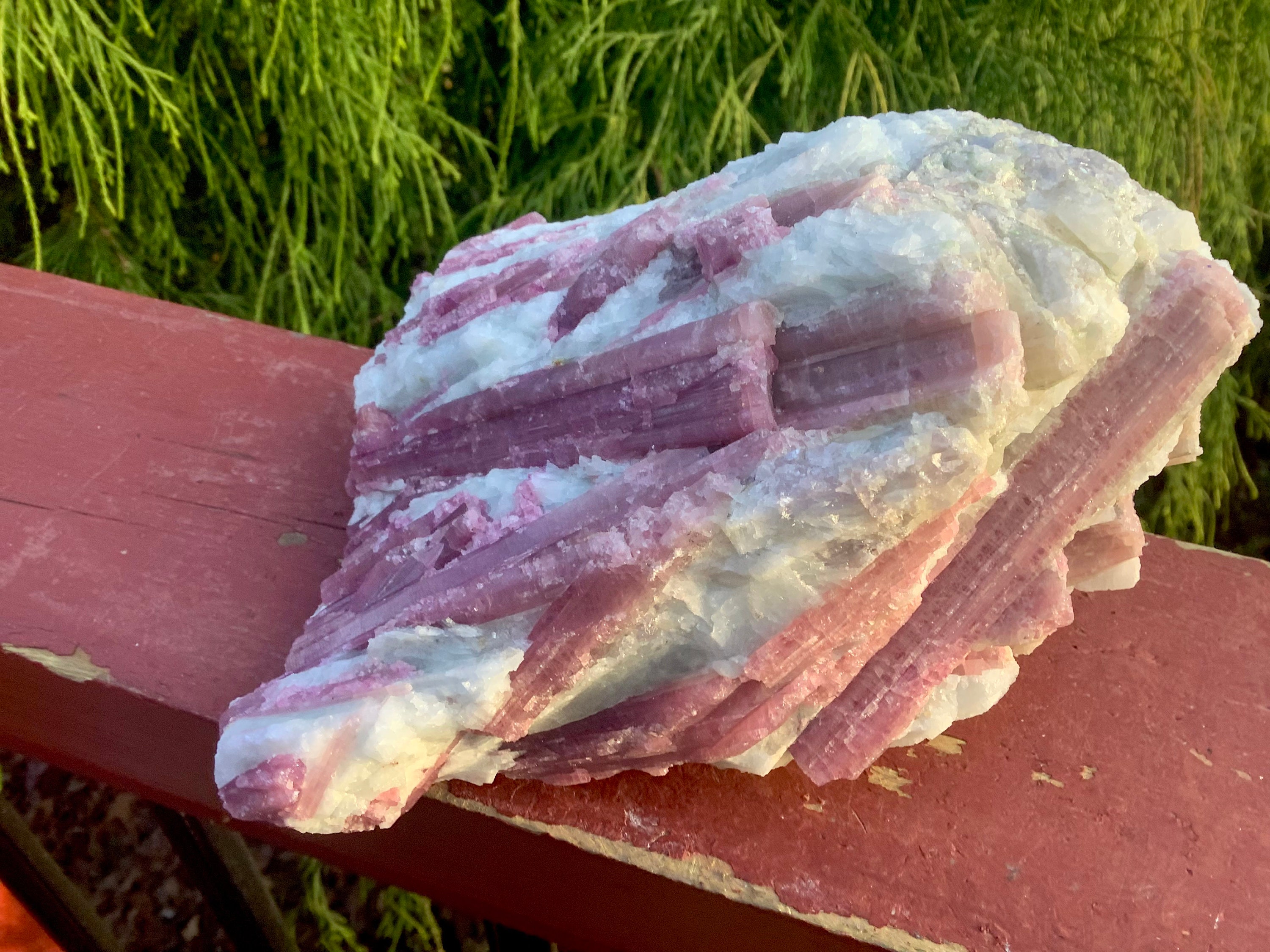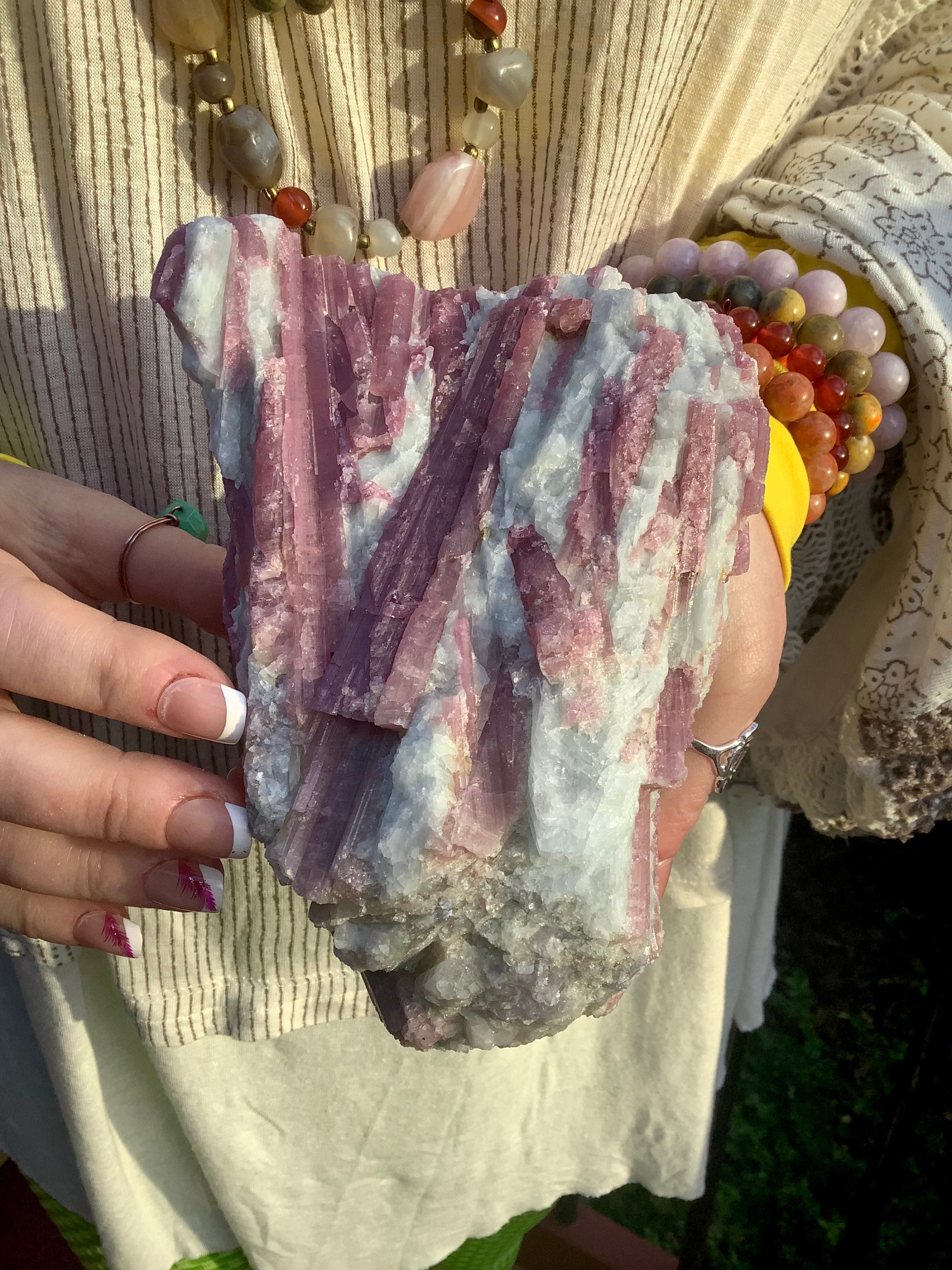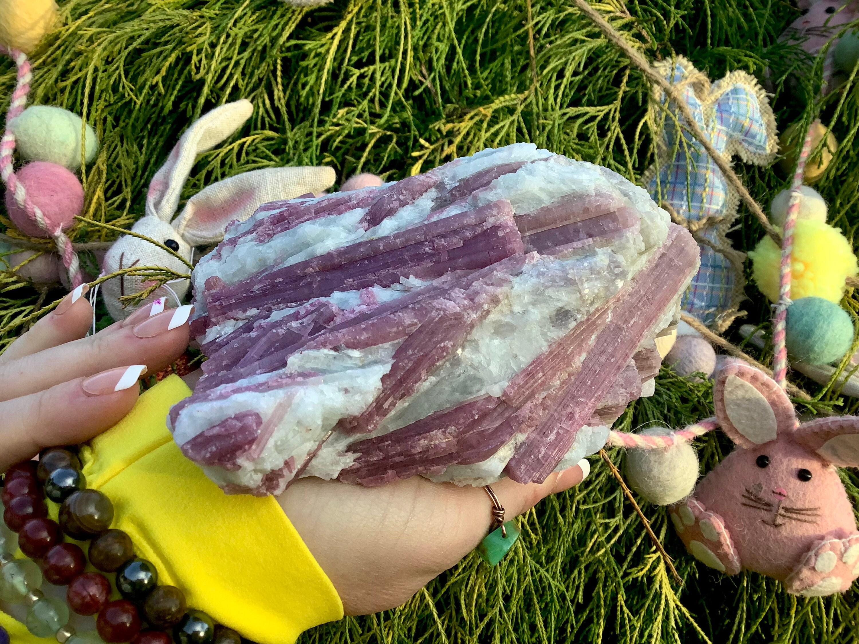 Tourmaline on Clear Quartz Crystal Large 2 Lb. 12 oz. Cluster~ 5" Long ~ Colorful Gemmy Pink Rubellite Bands on Quartz Matrix ~ Altar, Reiki Display Specimen ~ Fast & Free Shipping + Free Gift + Gift Wrap ~ Layaways available on ALL crystals ~ Message me for options! 🍾🥂🔮