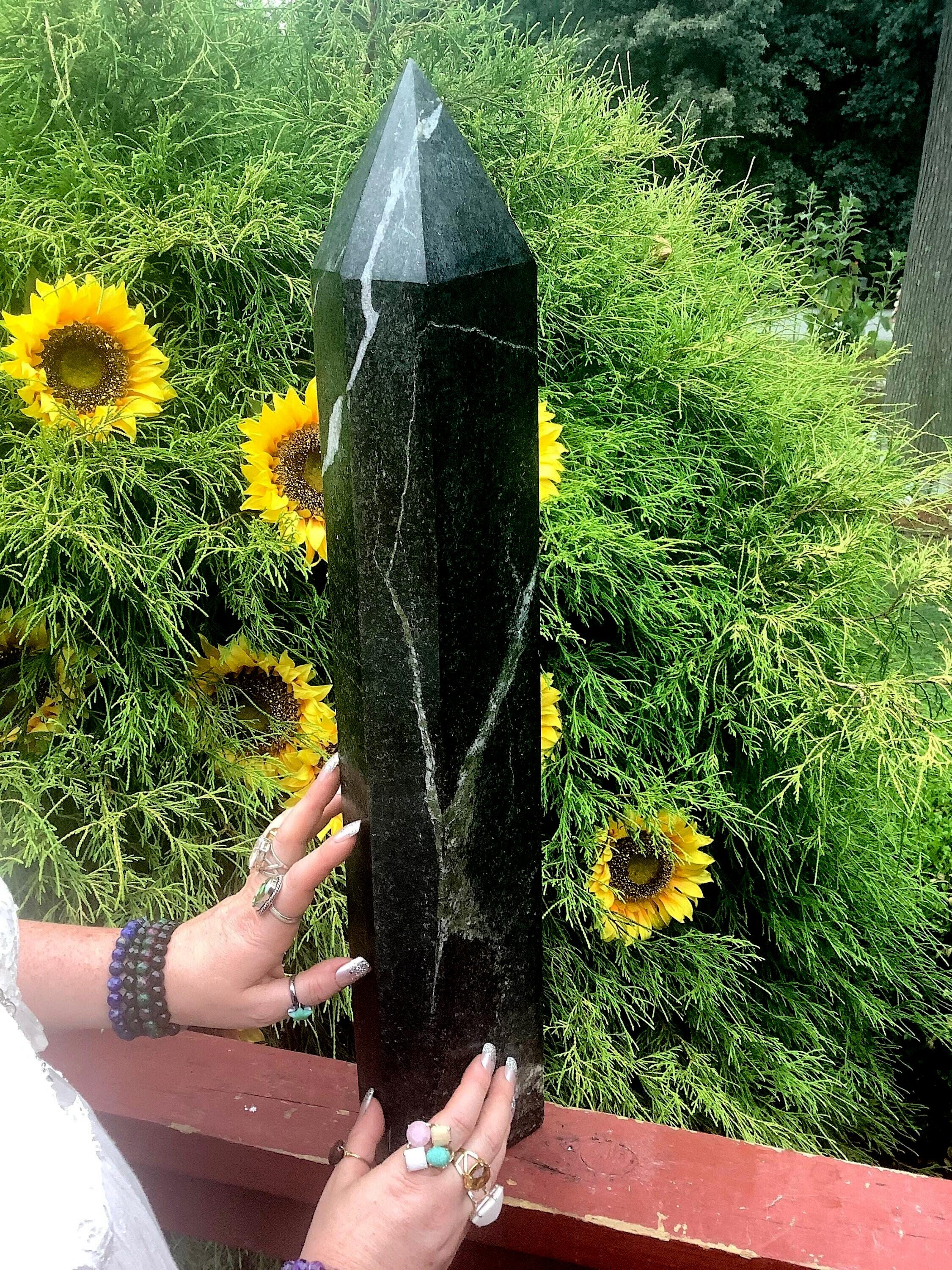 Large Black Tourmaline Crystal Generator Tower: 25" Natural Home Decor