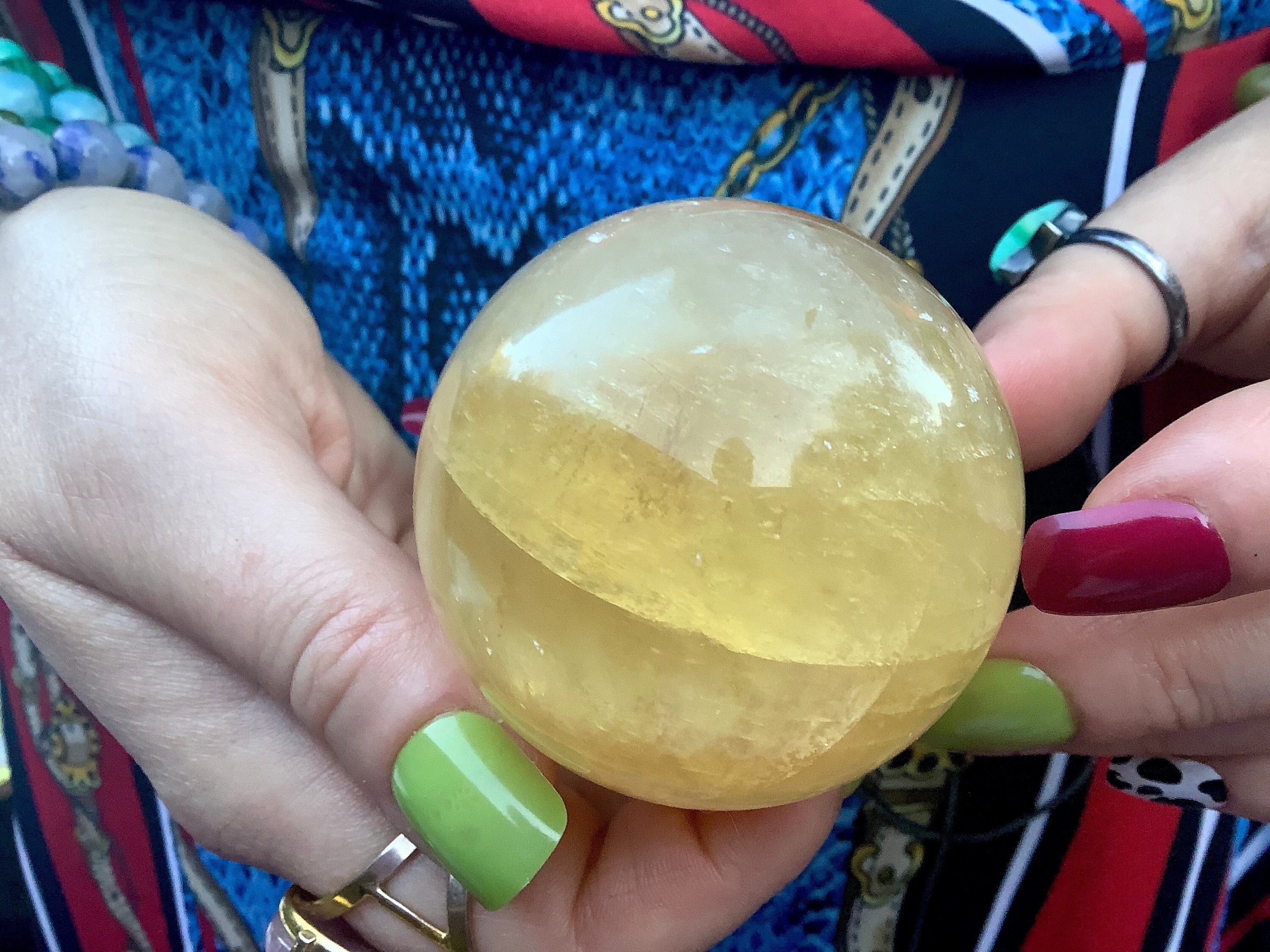 What makes this a truly one-of-a-kind yellow Calcite Crystal ball are the amazing incredible inclusions locked inside this beautiful crystal I cannot say enough about the colors they are insane!