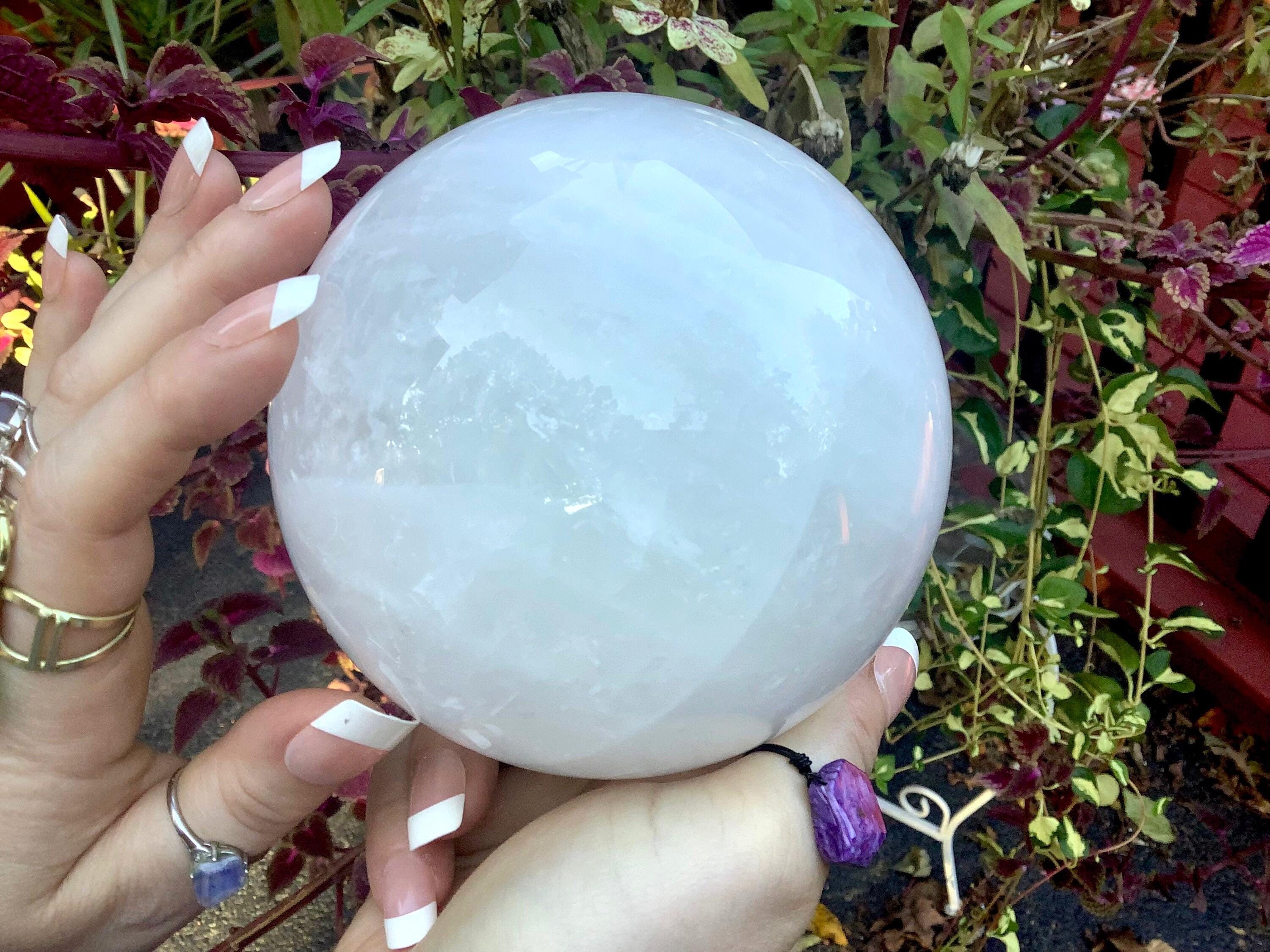 Large Snow Quartz Crystal Ball: Polished Reiki Altar Display (4" Wide)