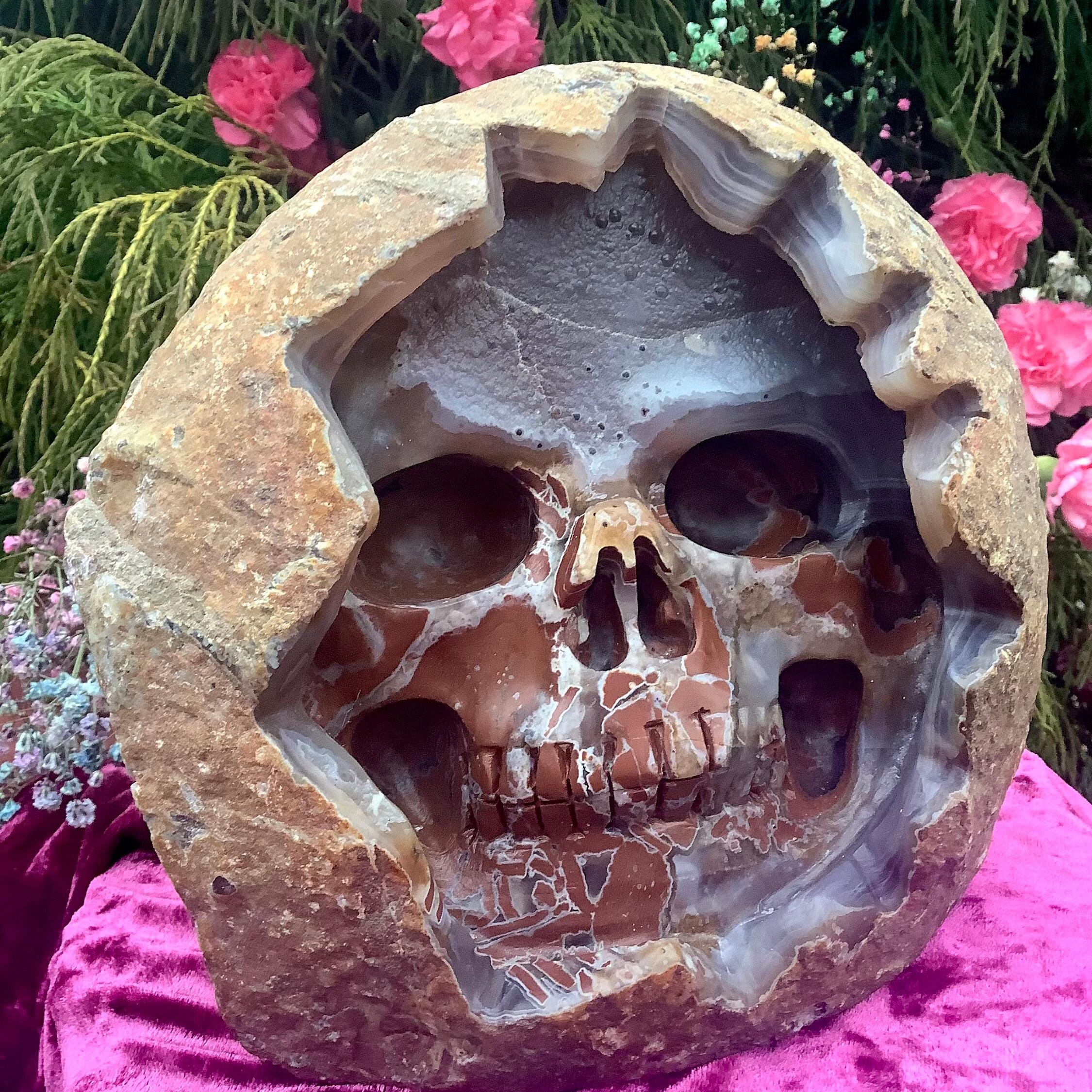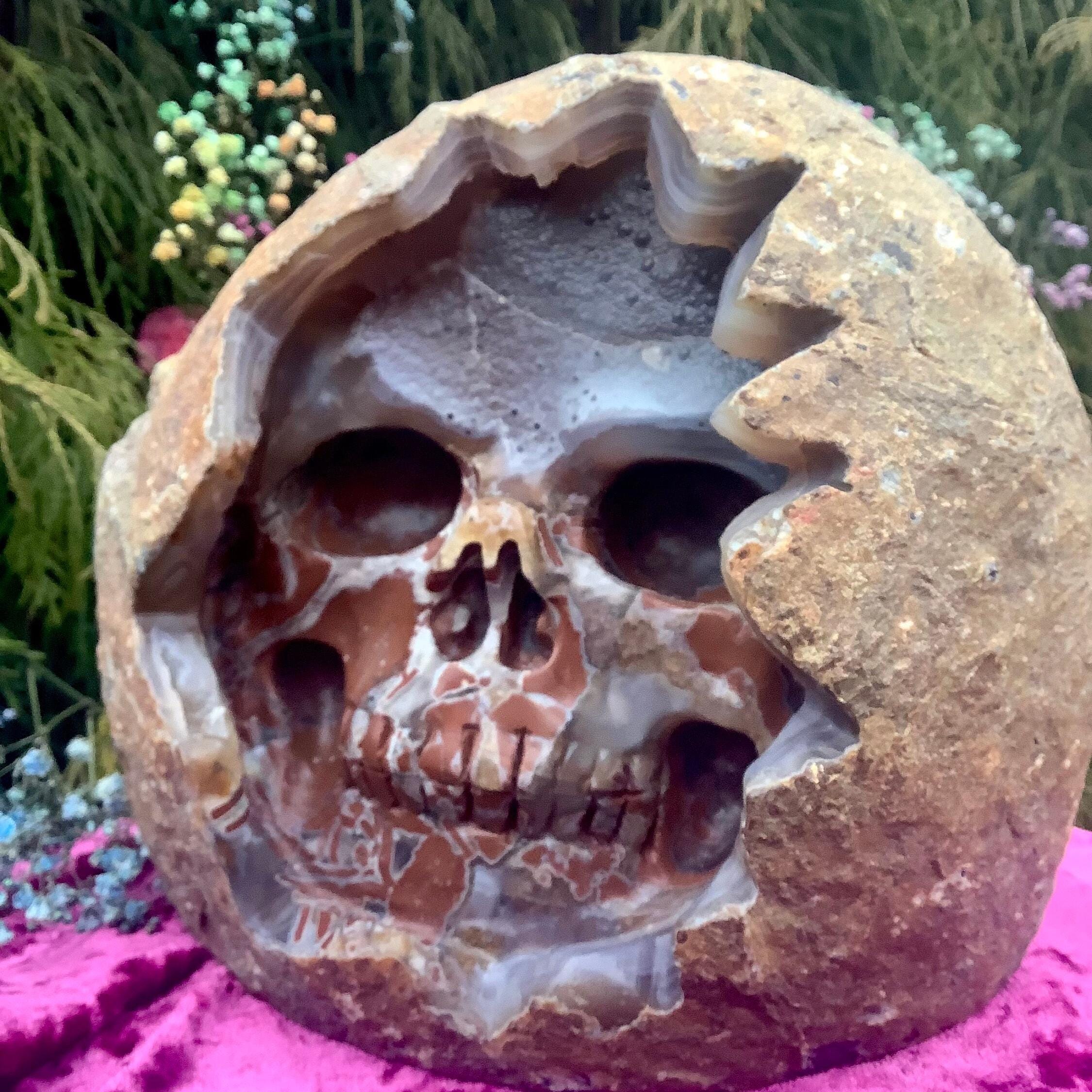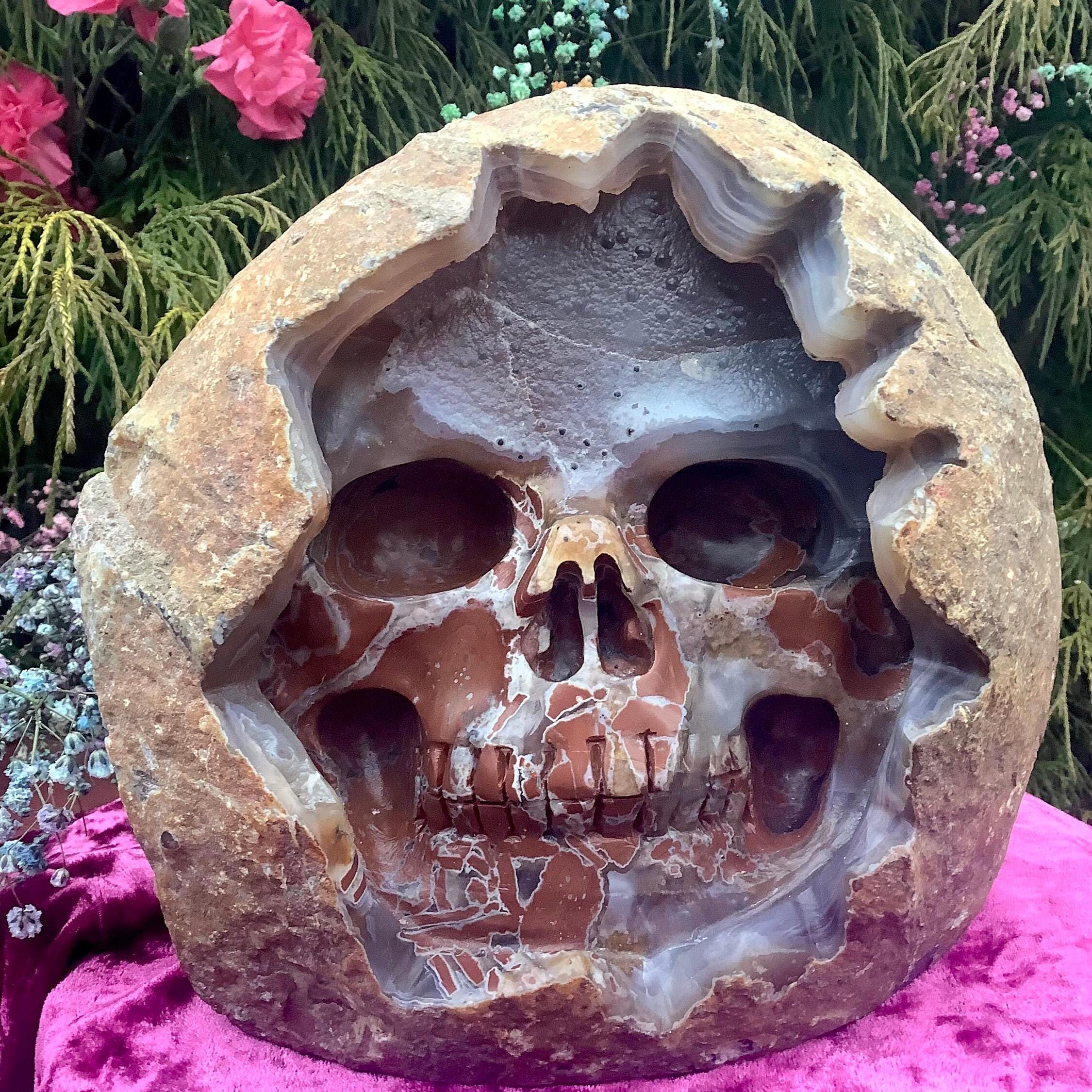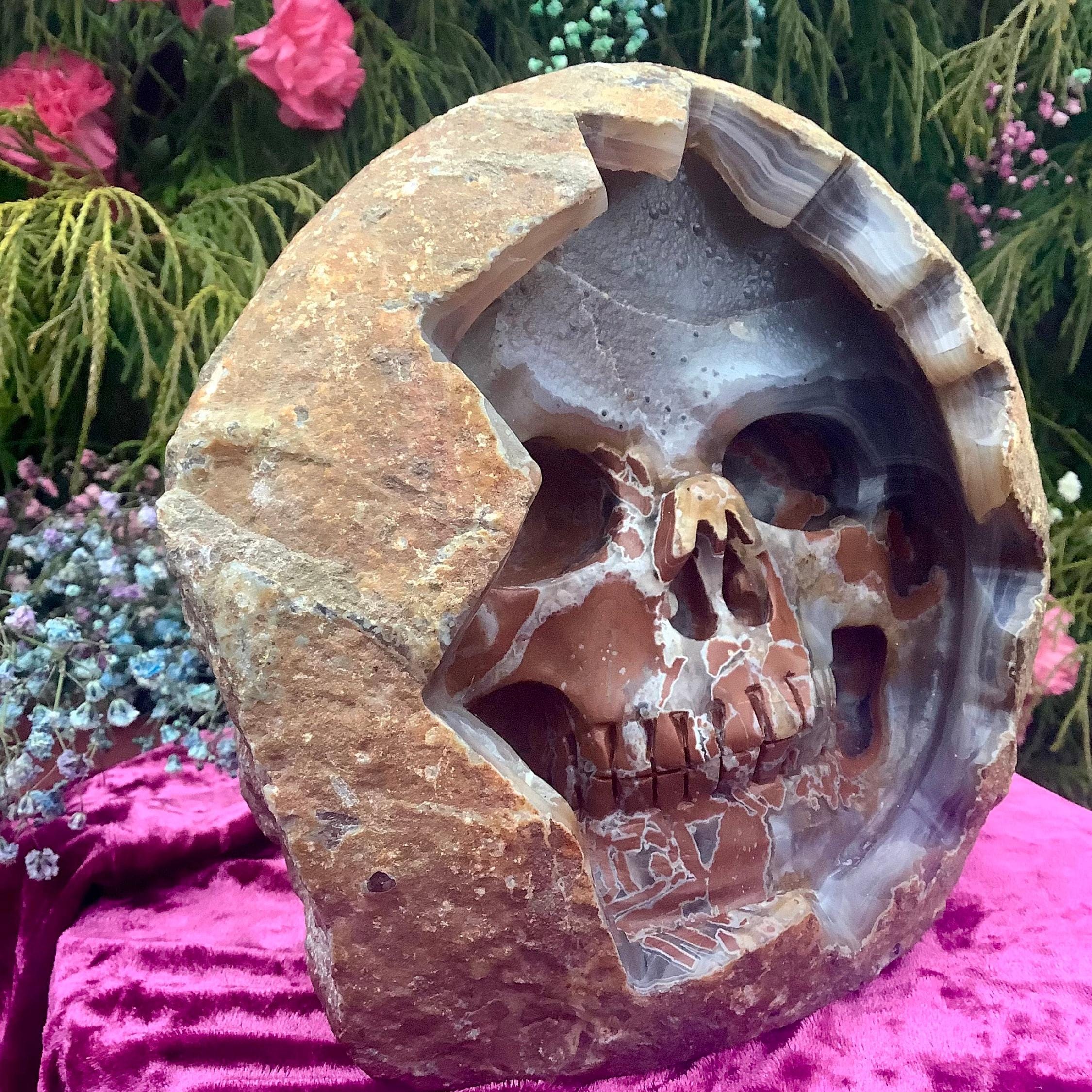 This is the most breathtaking Brecciated Jasper Agate Skull that has been hand carved from deep inside an Agate on piece stone.