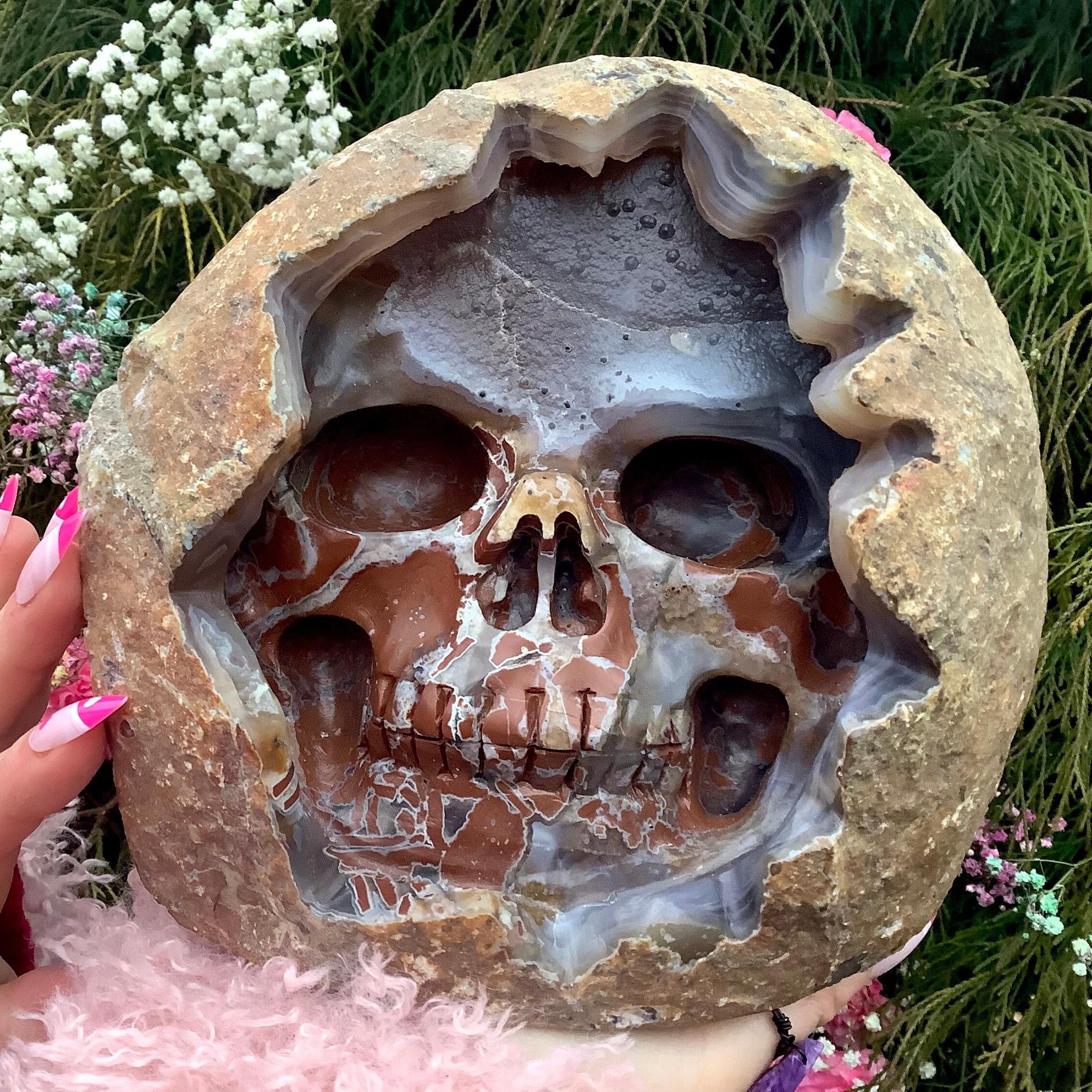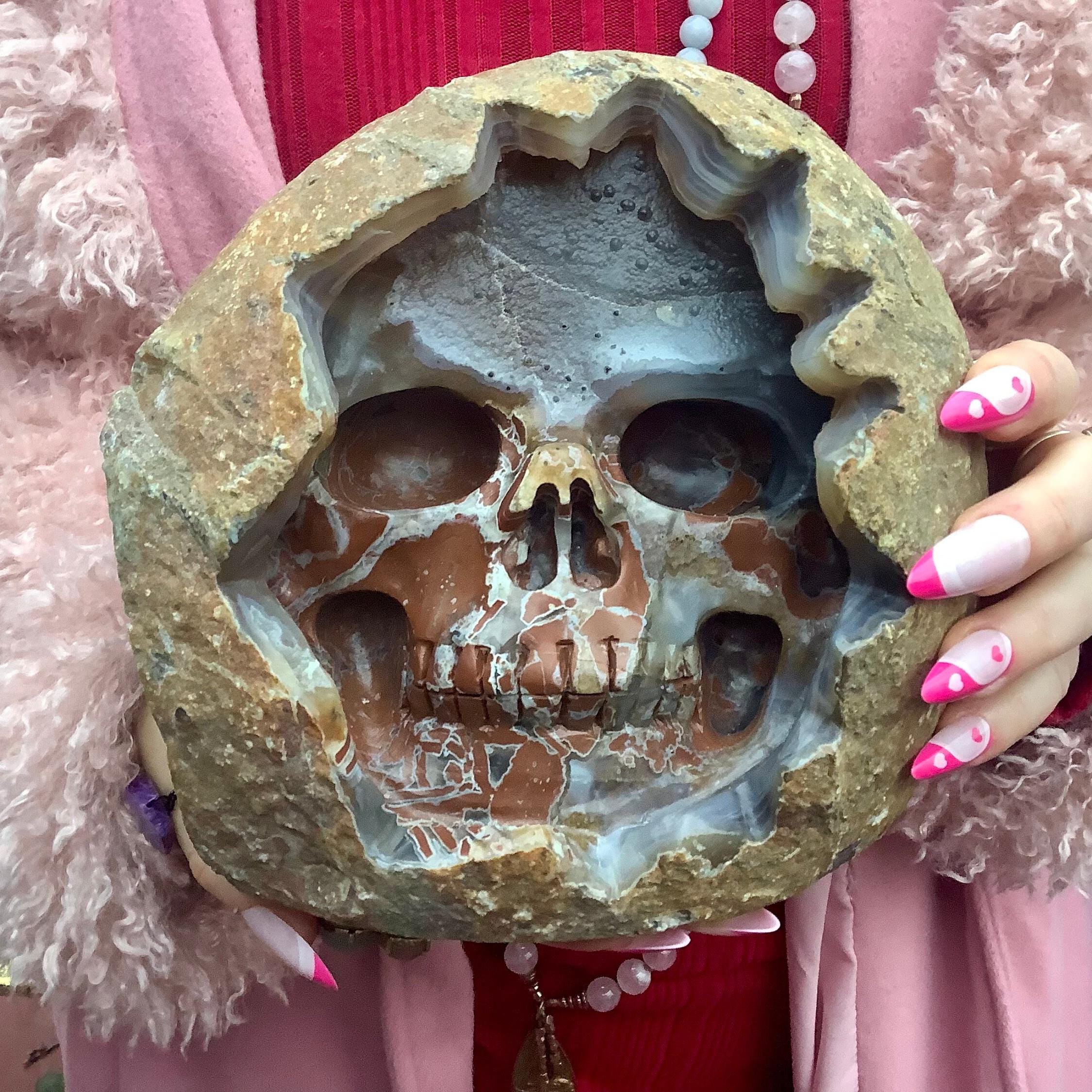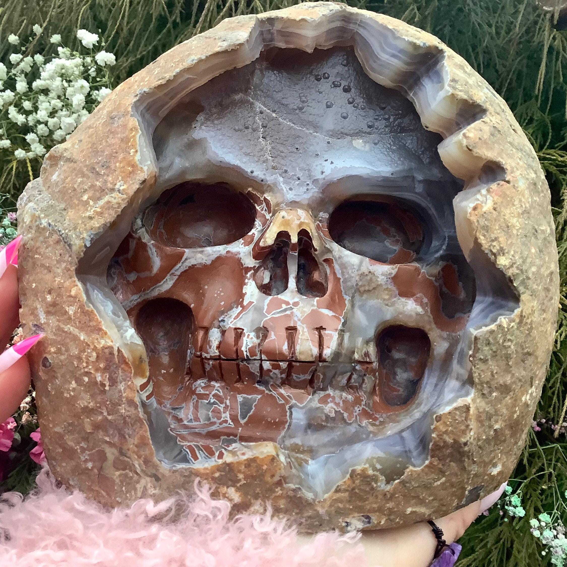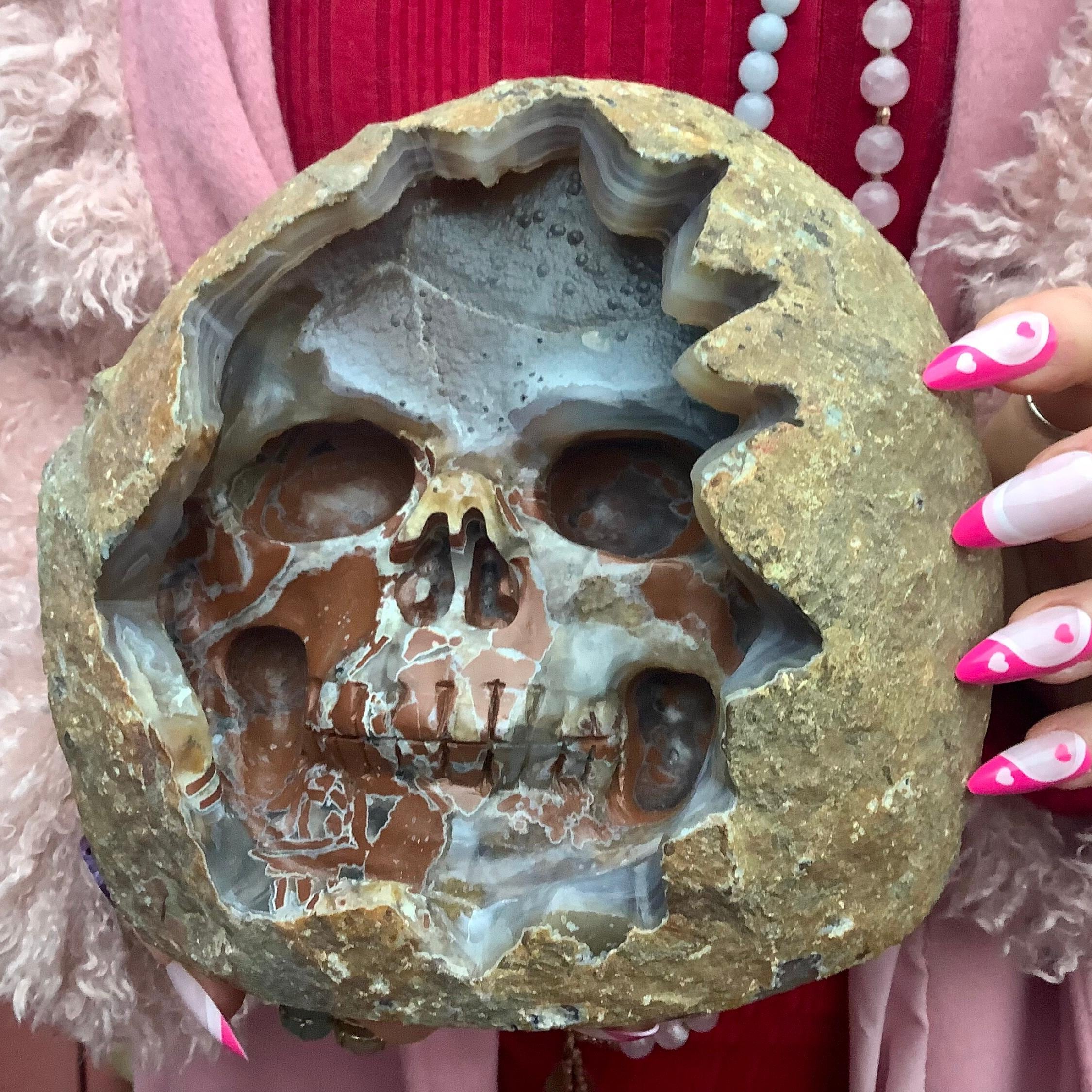 This is the most breathtaking Brecciated Jasper Agate Skull that has been hand carved from deep inside an Agate on piece stone.