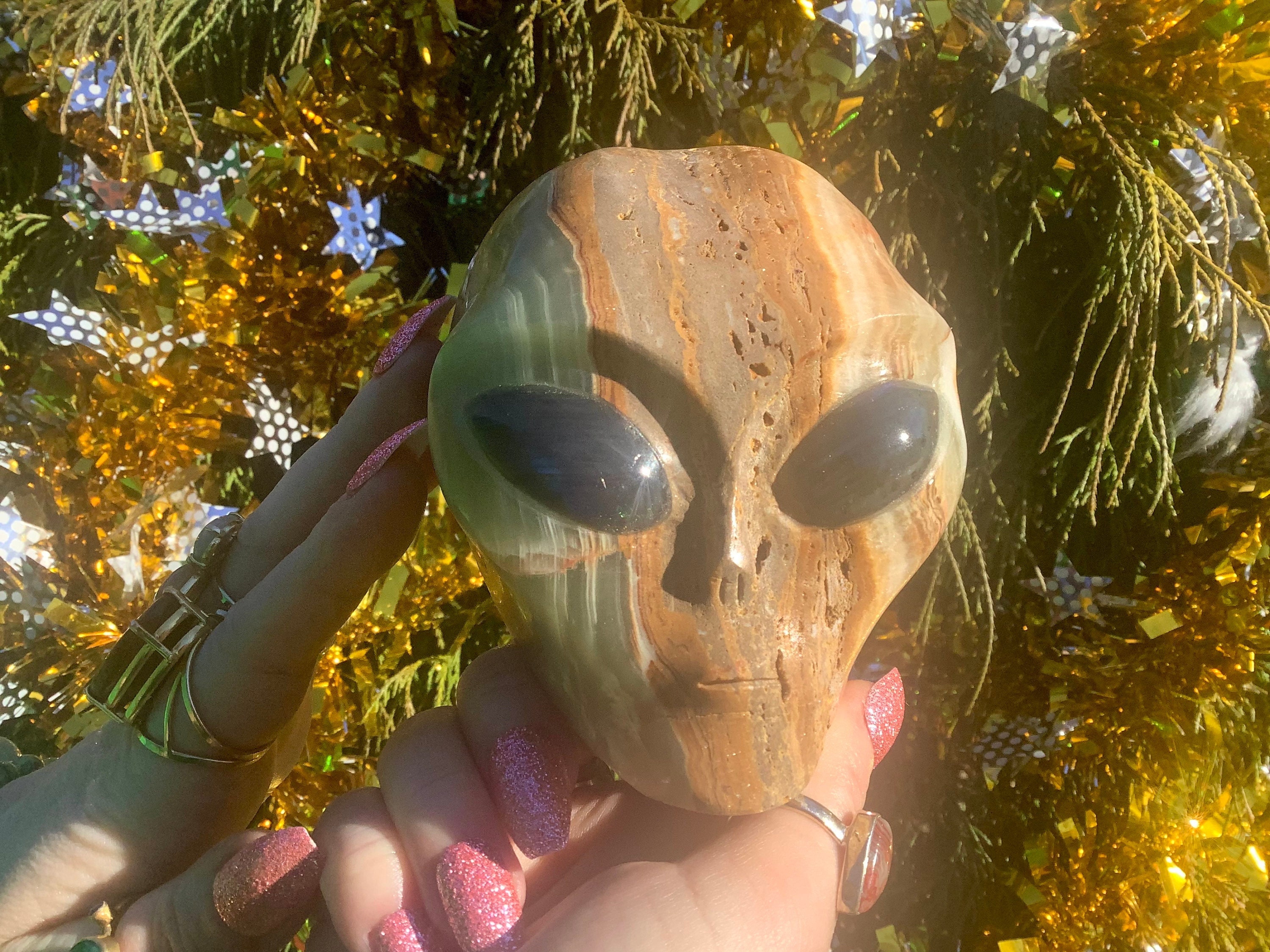 This hand carved one-of-a-kind Alien Skull Sculpture will be the high mark of your collection.
