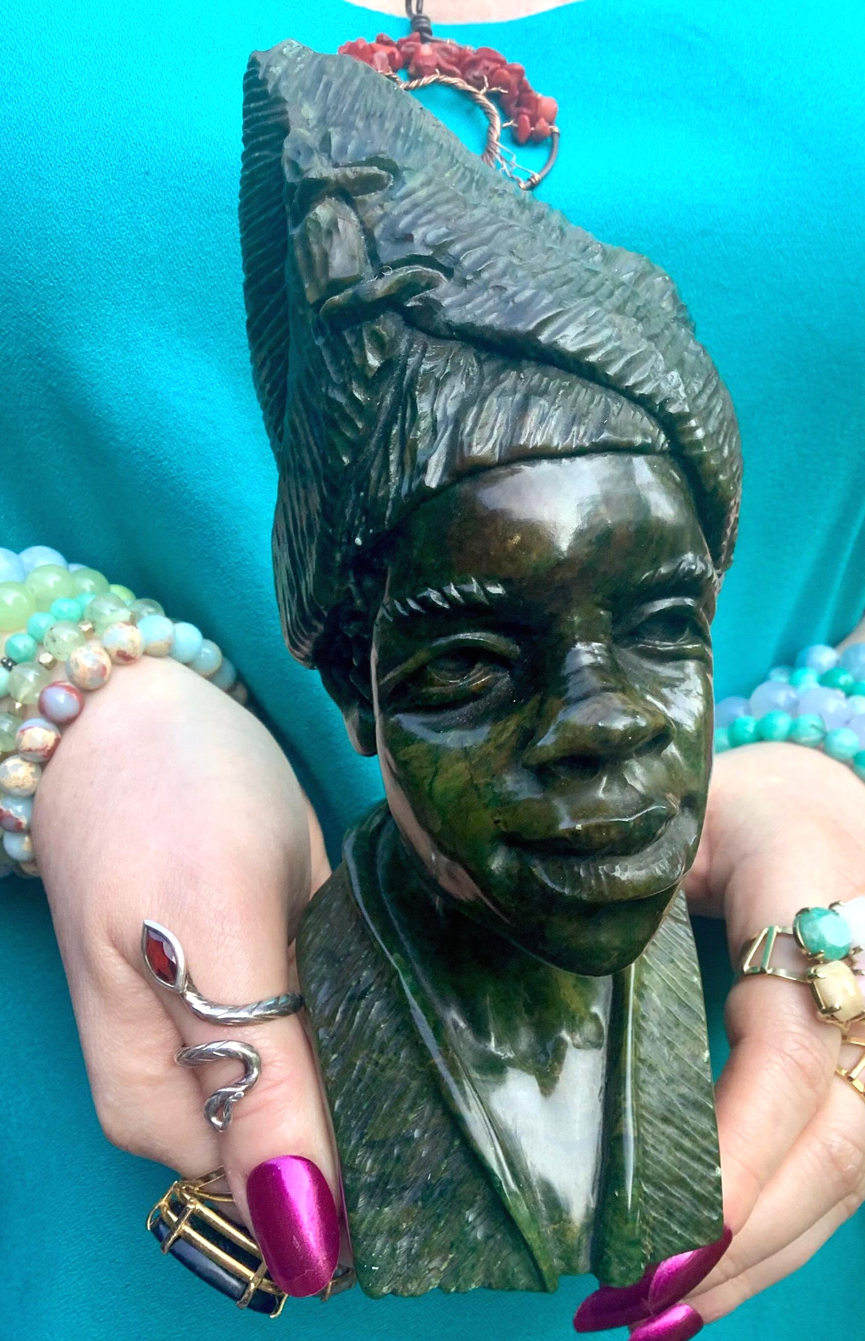 Verdite African Shona Tribe "Zulu Princess" Crystal ~ 2 Lb 13 oz ~ 7" Tall ~ Hand Carved Bust from Zimbabwe ~ Museum Quality Display, Rare ~