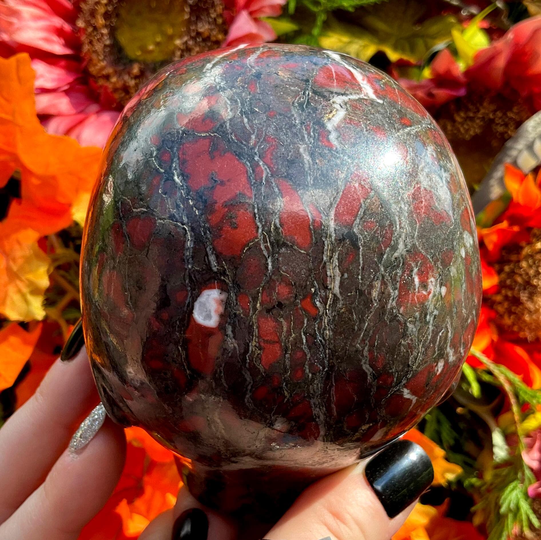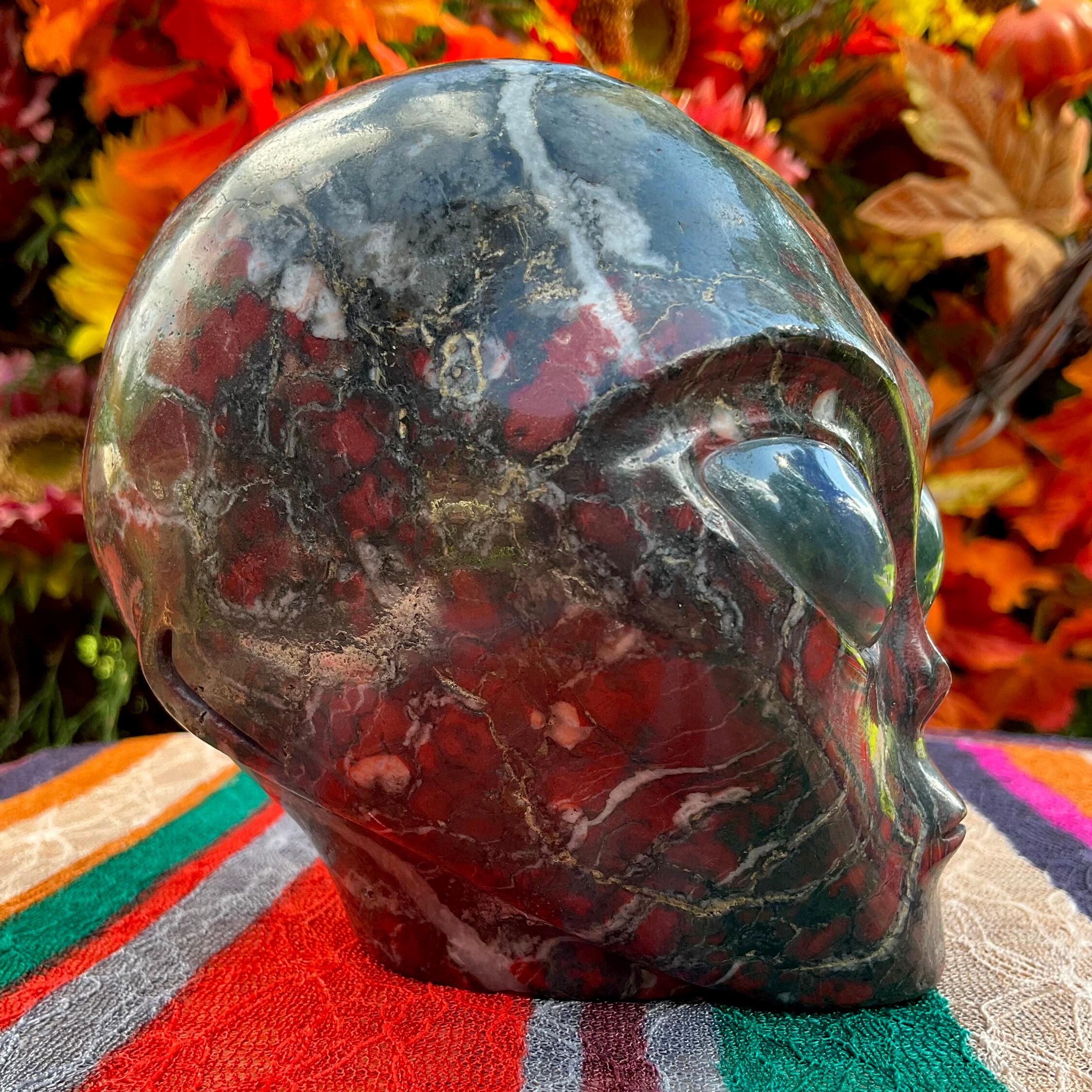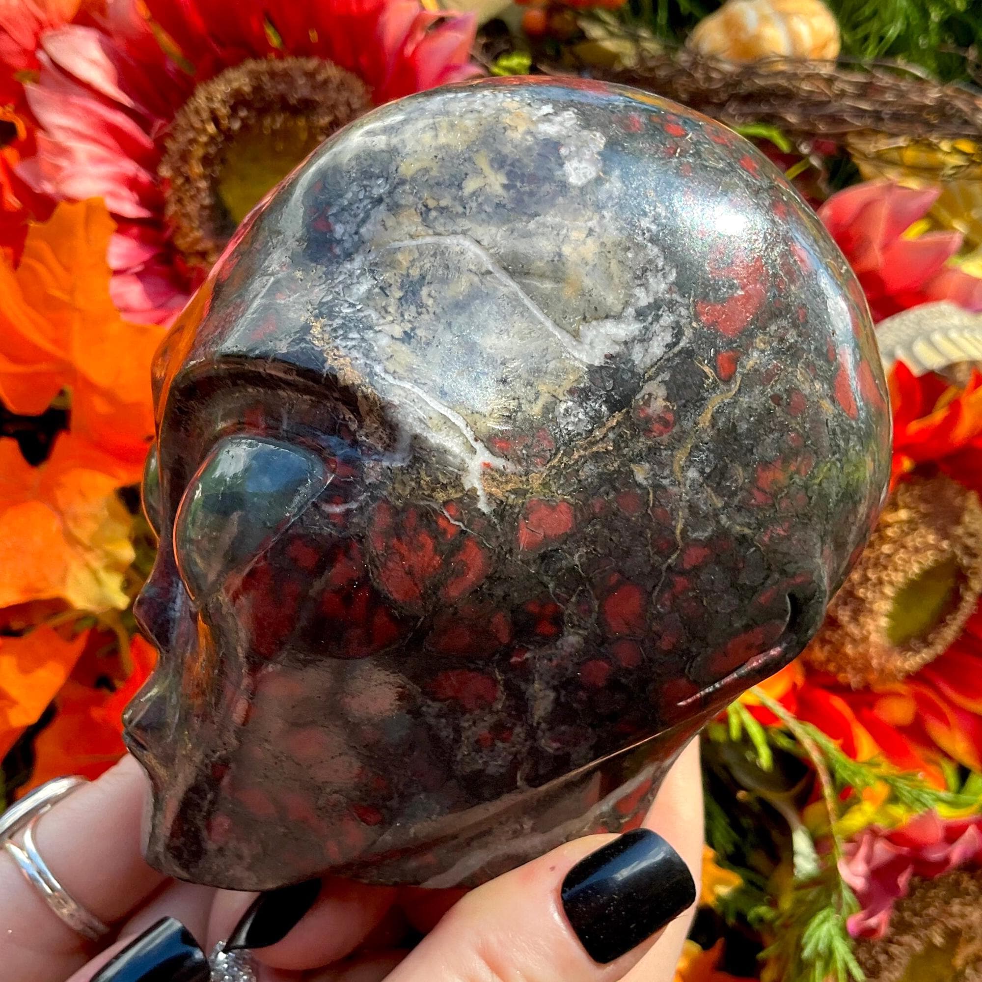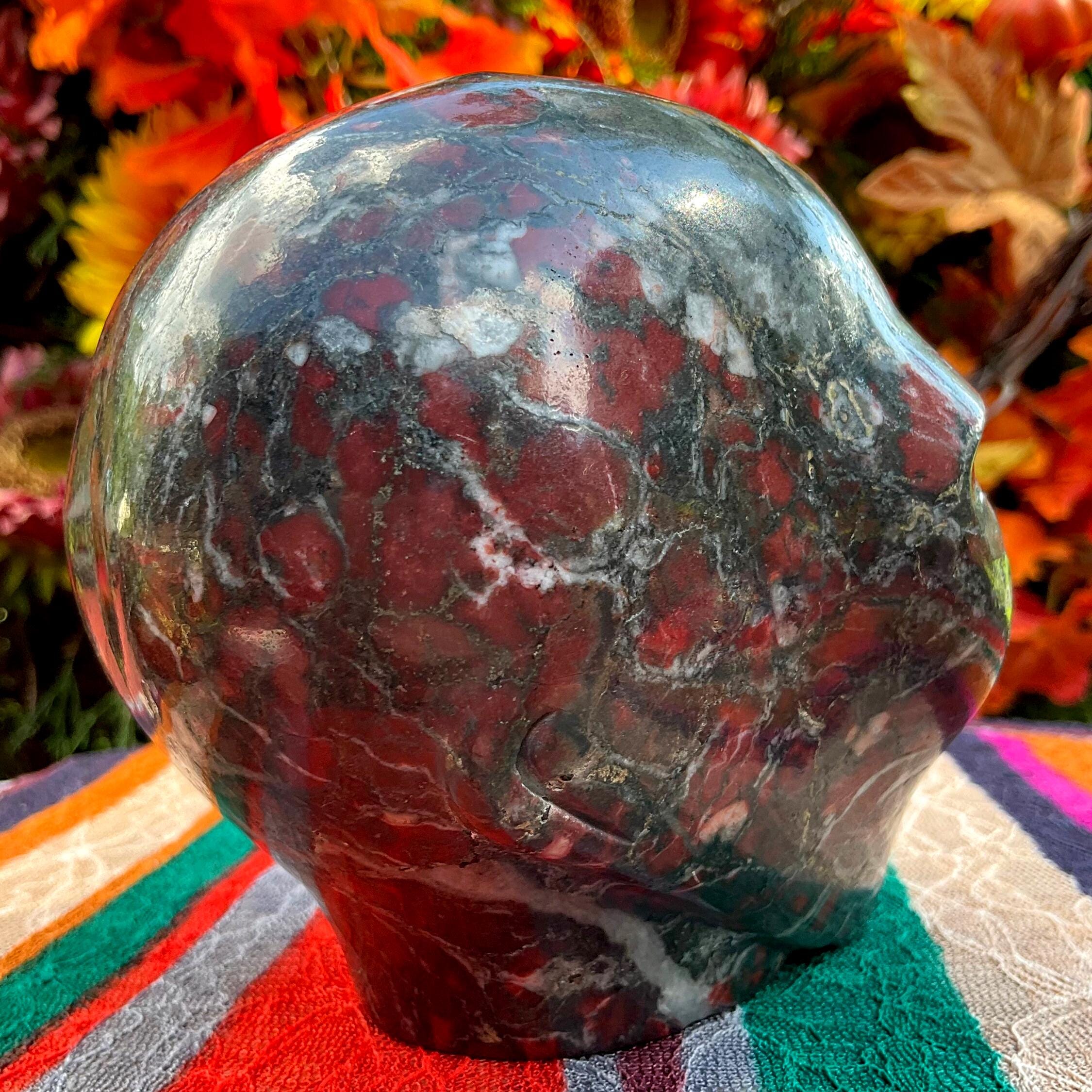 This Gorgeous Brecciated Jasper Alien Skull Hand Carved Crystal Sculpture is perfection in every way.