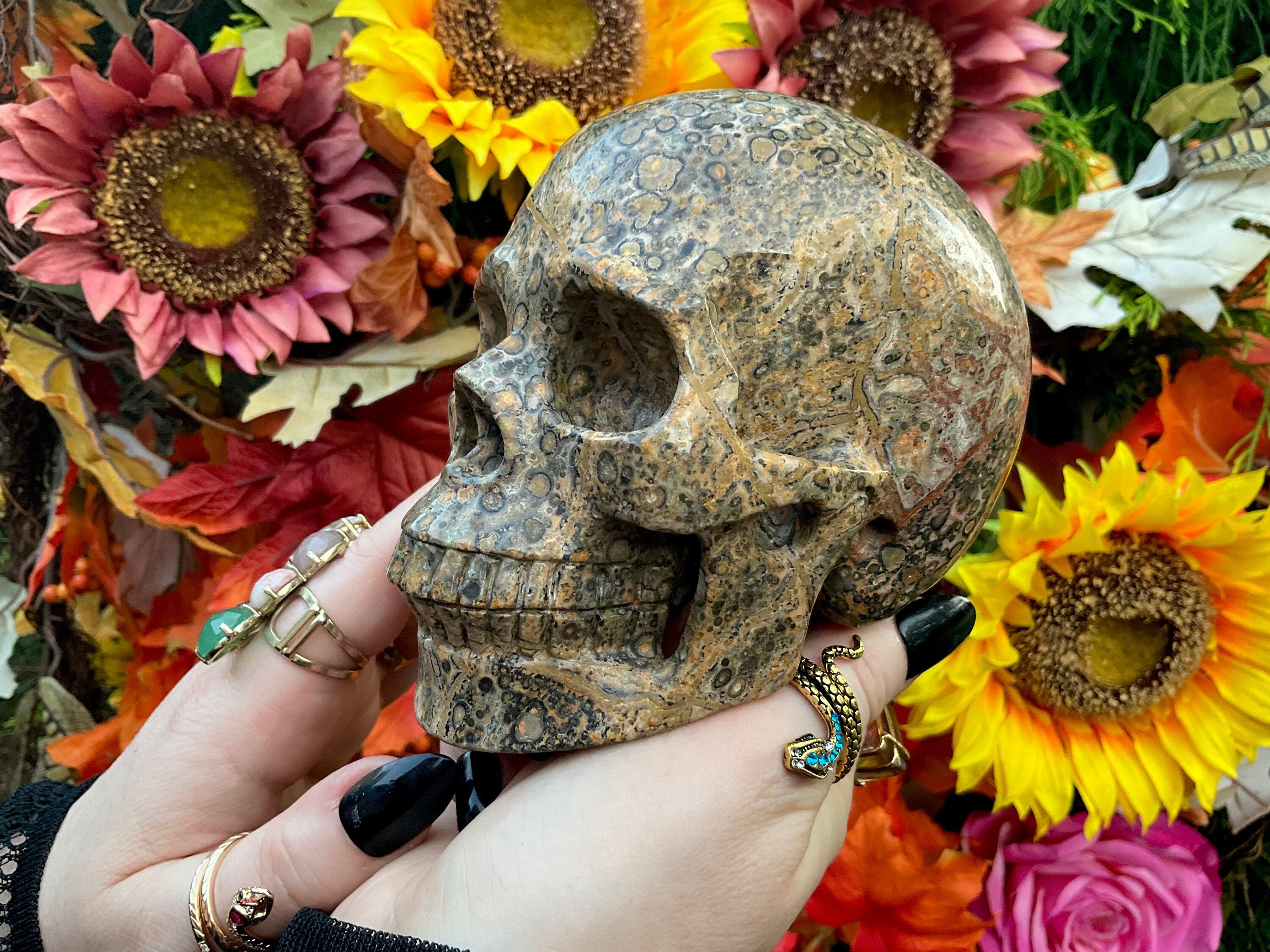 This is such a gorgeous Orbicular Jasper Crystal Skull.