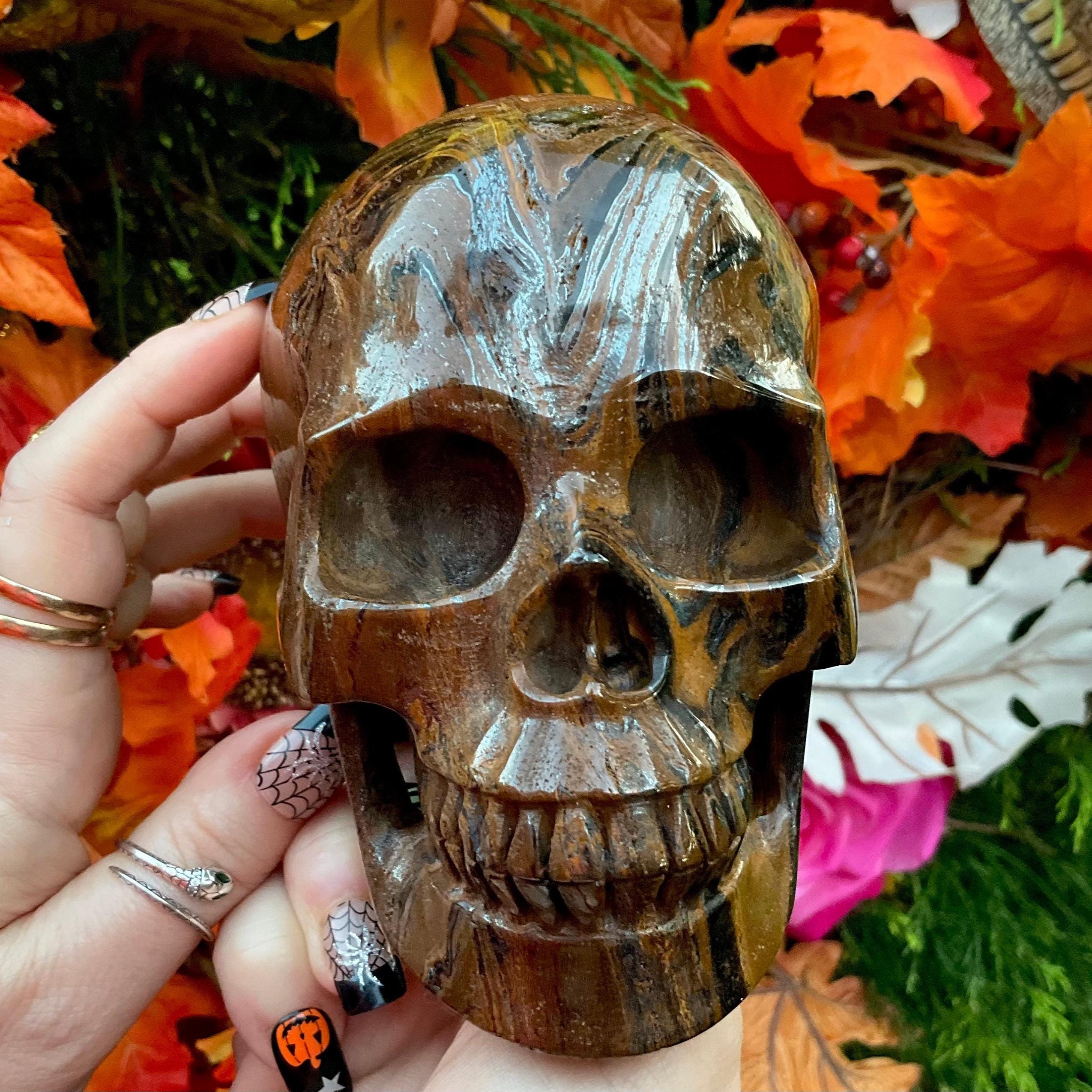 What makes this Tiger's Eye Skull so unique is the original one-of-a-kind carving.