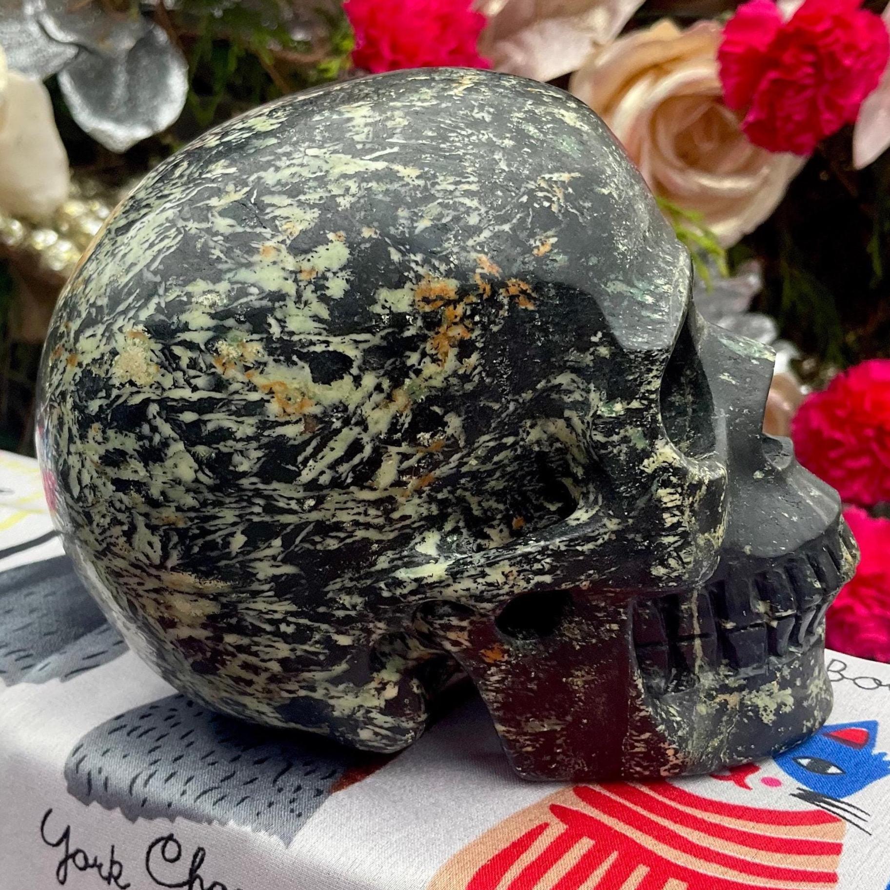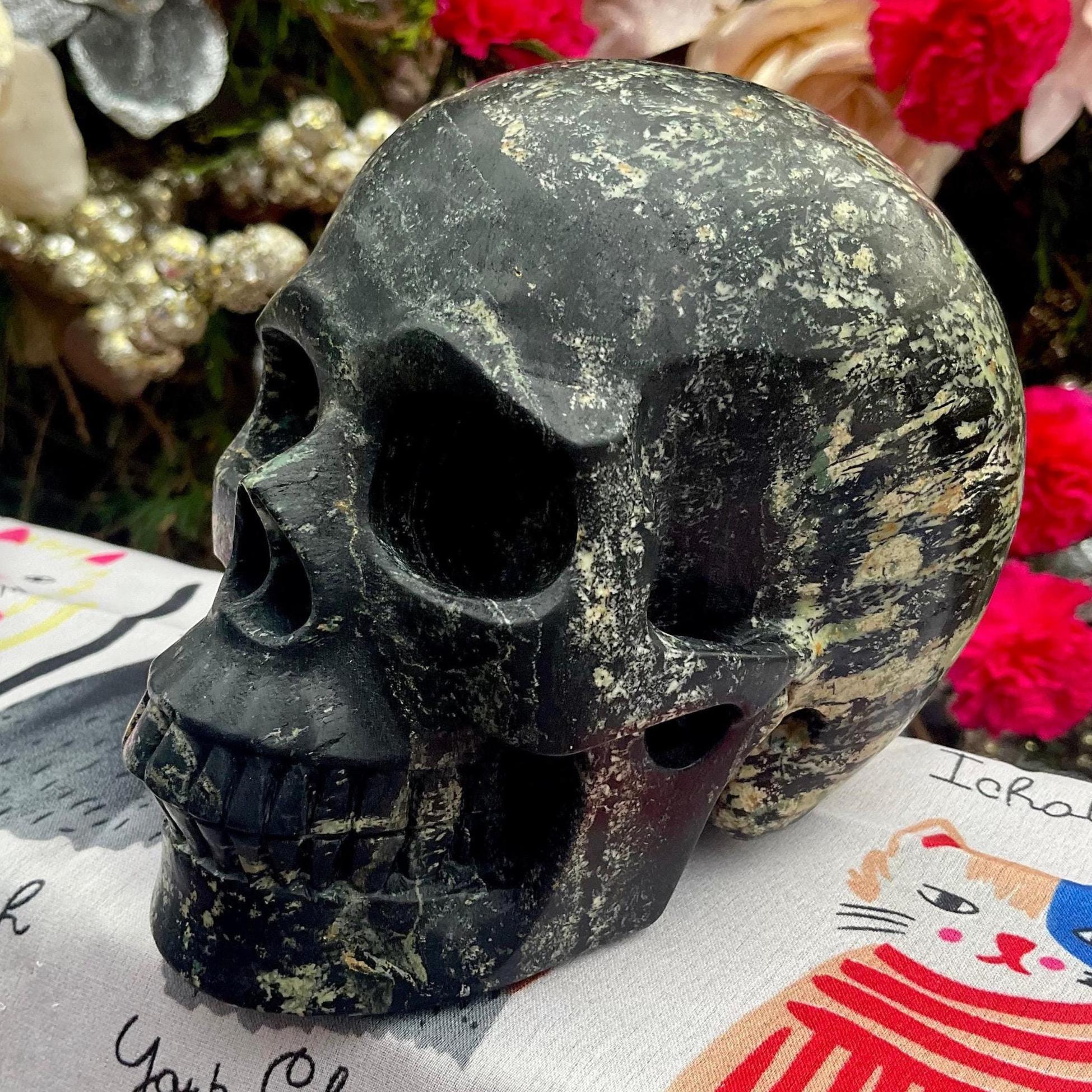 Black & Green Tourmaline Crystal Skull ~ Large 3 Lb. 6 oz. ~ 5" Long ~ Swirling Thick Colorful Inclusions ~ Hand Carved ~ Fast Free Shipping