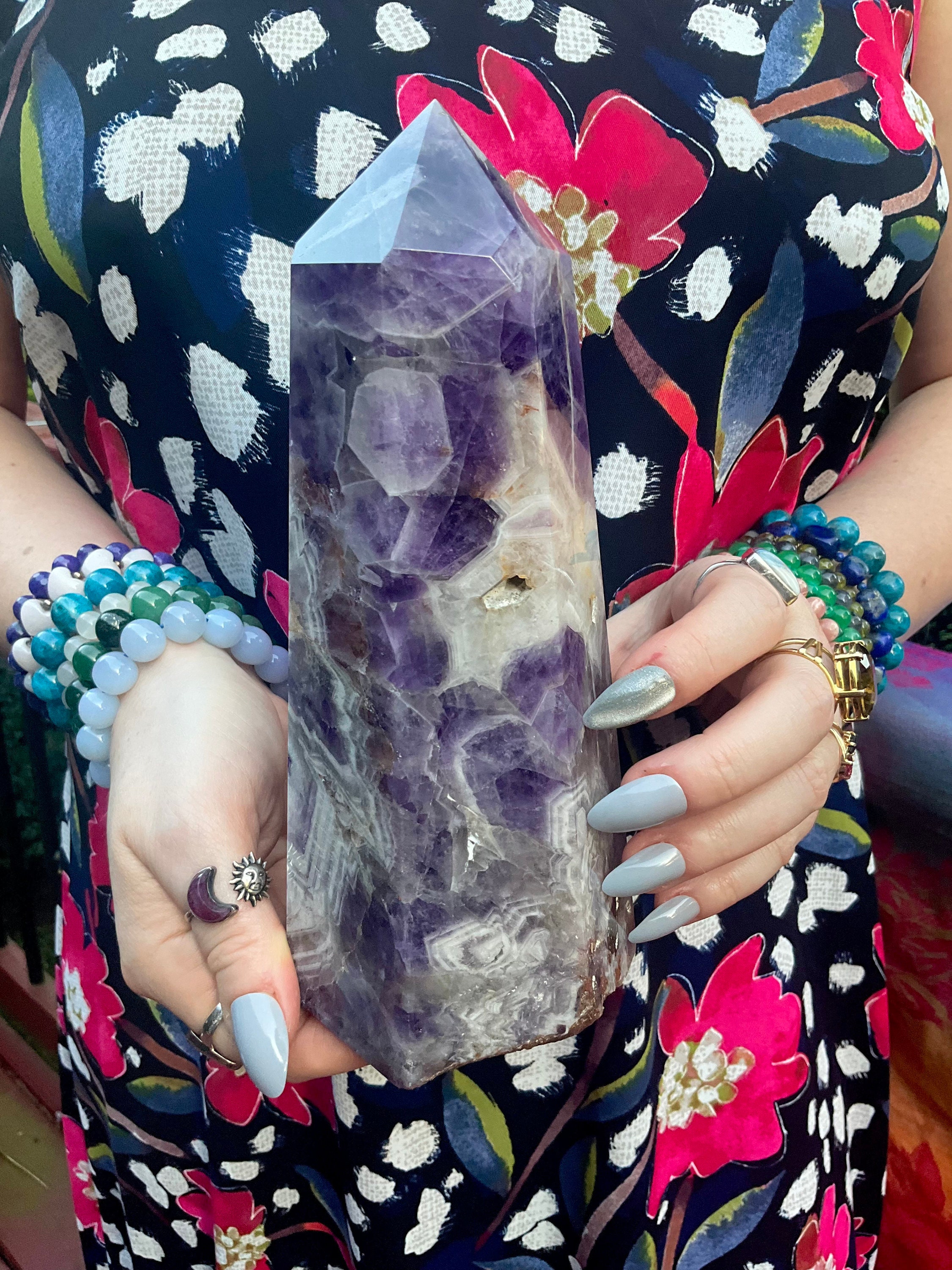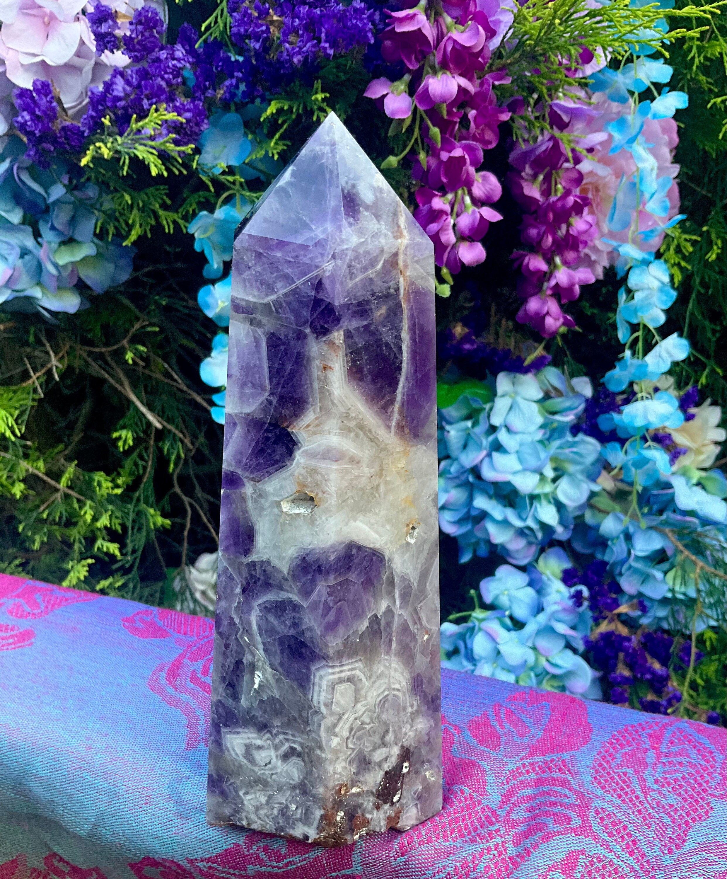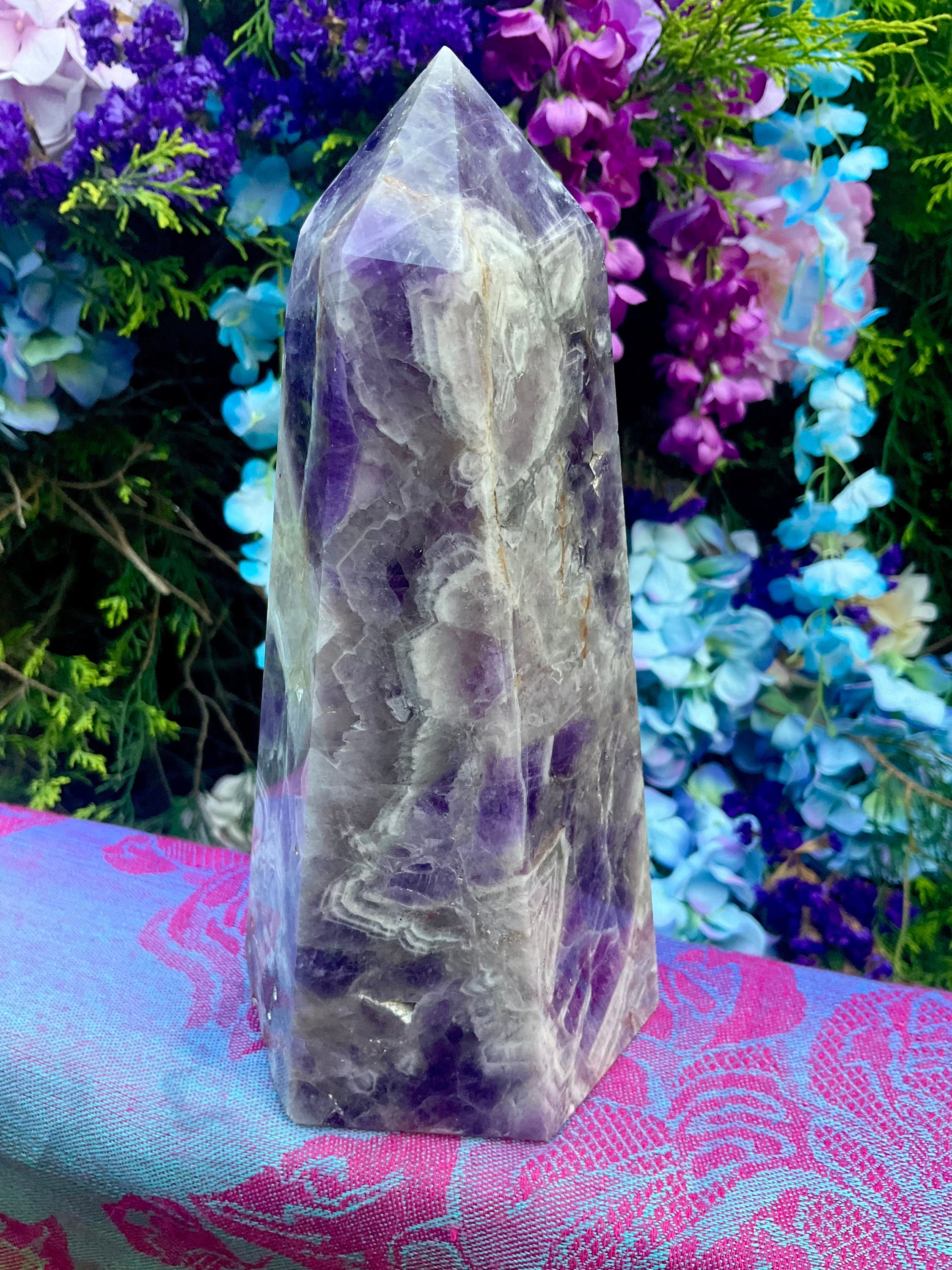 Amethyst Generator Large 3 Lb. 9 oz. Golden Healer Tower ~ 8" Tall ~ 4 1/2" Wide ~ Altar Reiki Display Centerpiece ~ Huge, Free Standing Crystal Point ~ 8 " Tall ~ 4.5 " Wide ~ Fast & Free Shipping + Free Gift + Gift Wrap ~ Layaways available on ALL crystals ~ Message me for options! 🍾🥂🔮