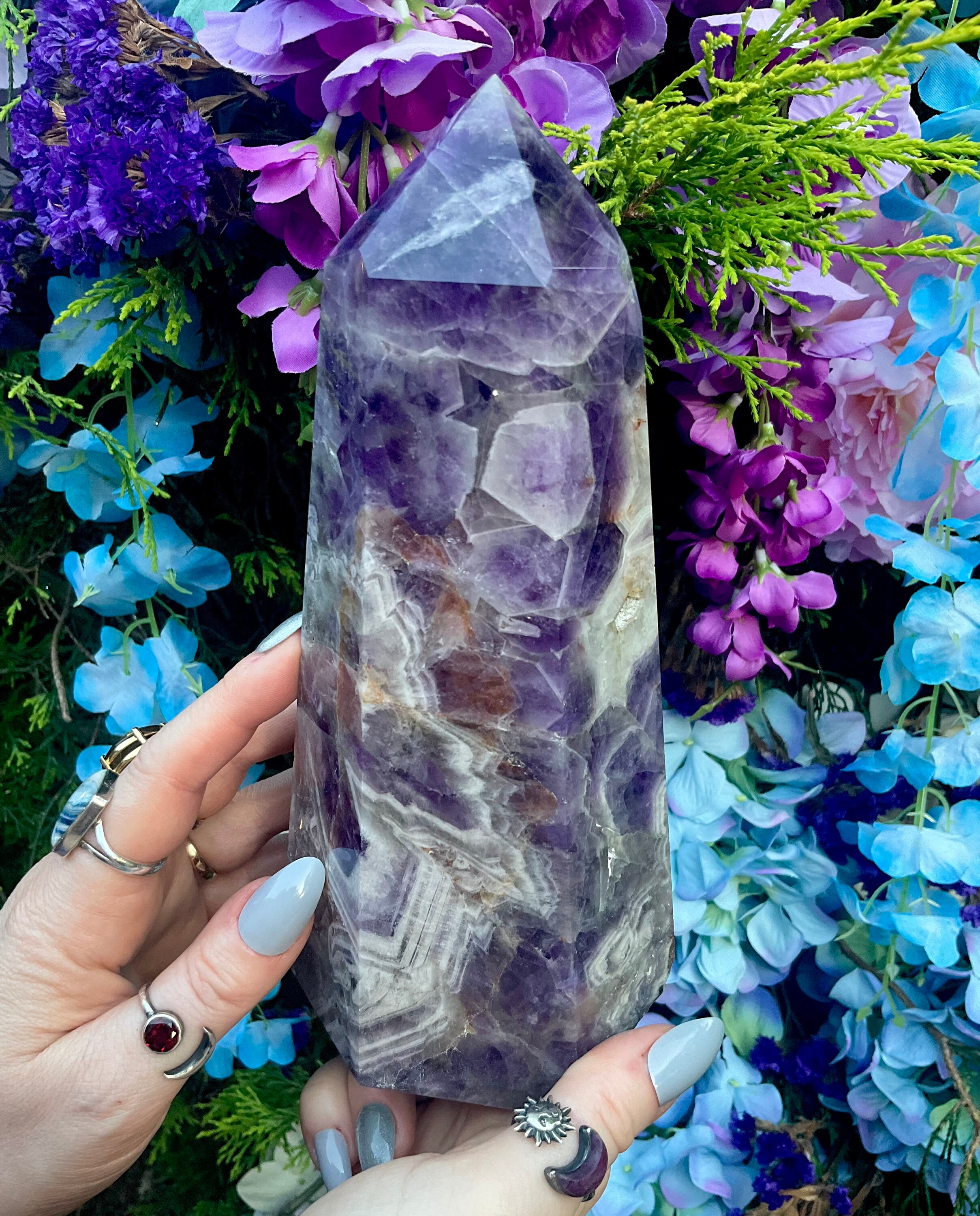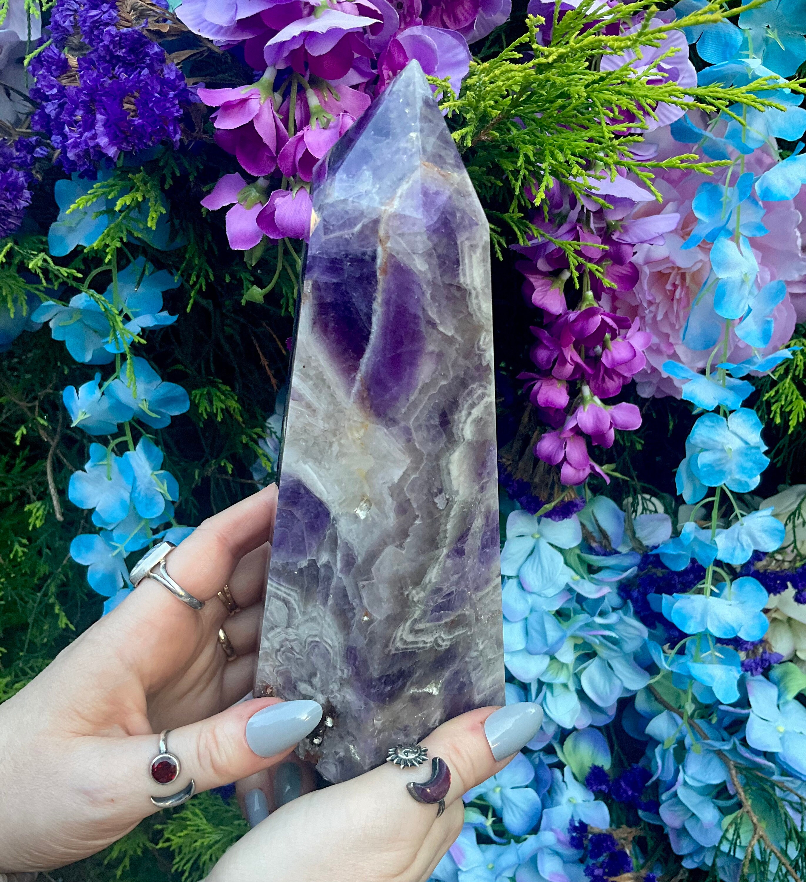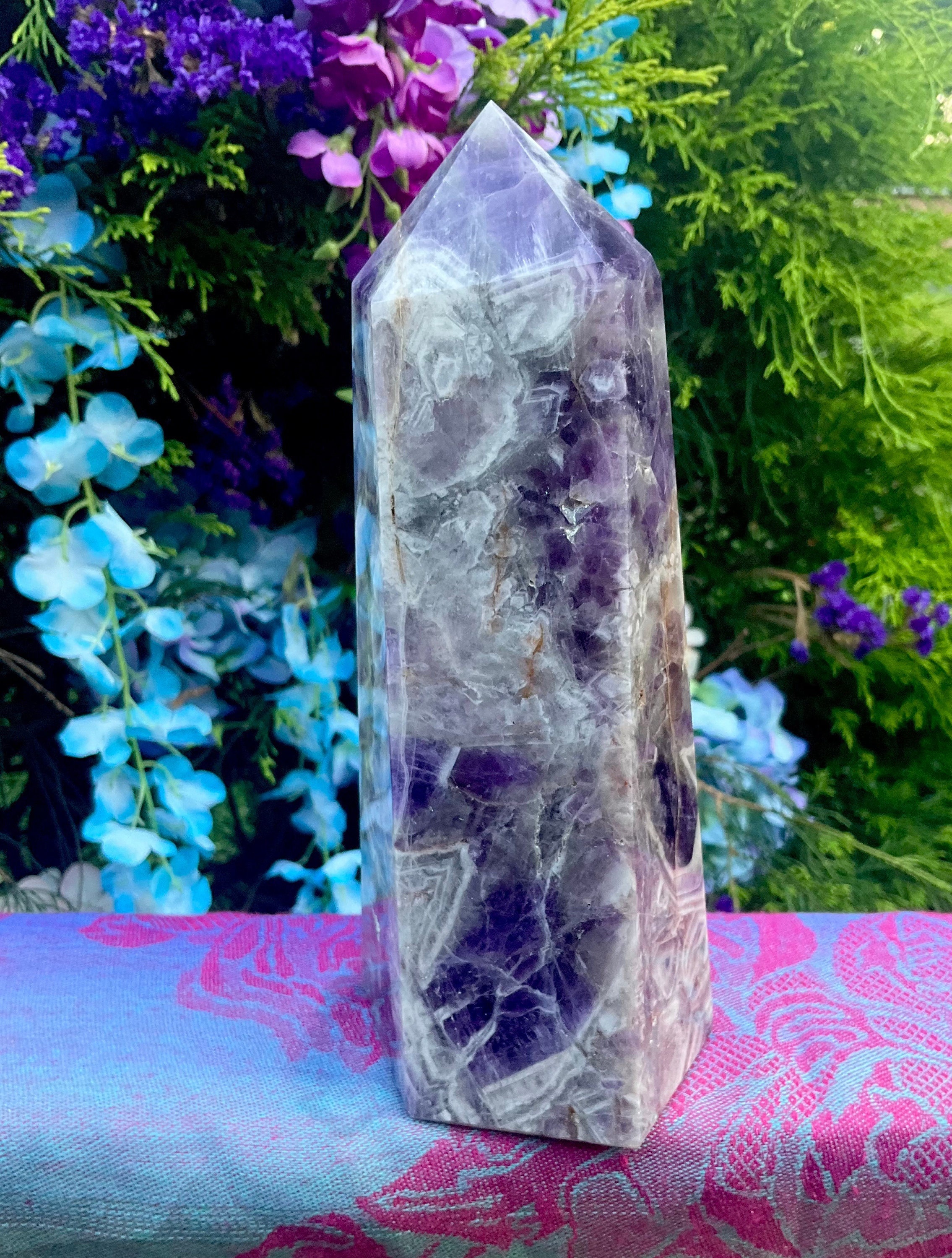 Amethyst Generator Large 3 Lb. 9 oz. Golden Healer Tower ~ 8" Tall ~ 4 1/2" Wide ~ Altar Reiki Display Centerpiece ~ Huge, Free Standing Crystal Point ~ 8 " Tall ~ 4.5 " Wide ~ Fast & Free Shipping + Free Gift + Gift Wrap ~ Layaways available on ALL crystals ~ Message me for options! 🍾🥂🔮