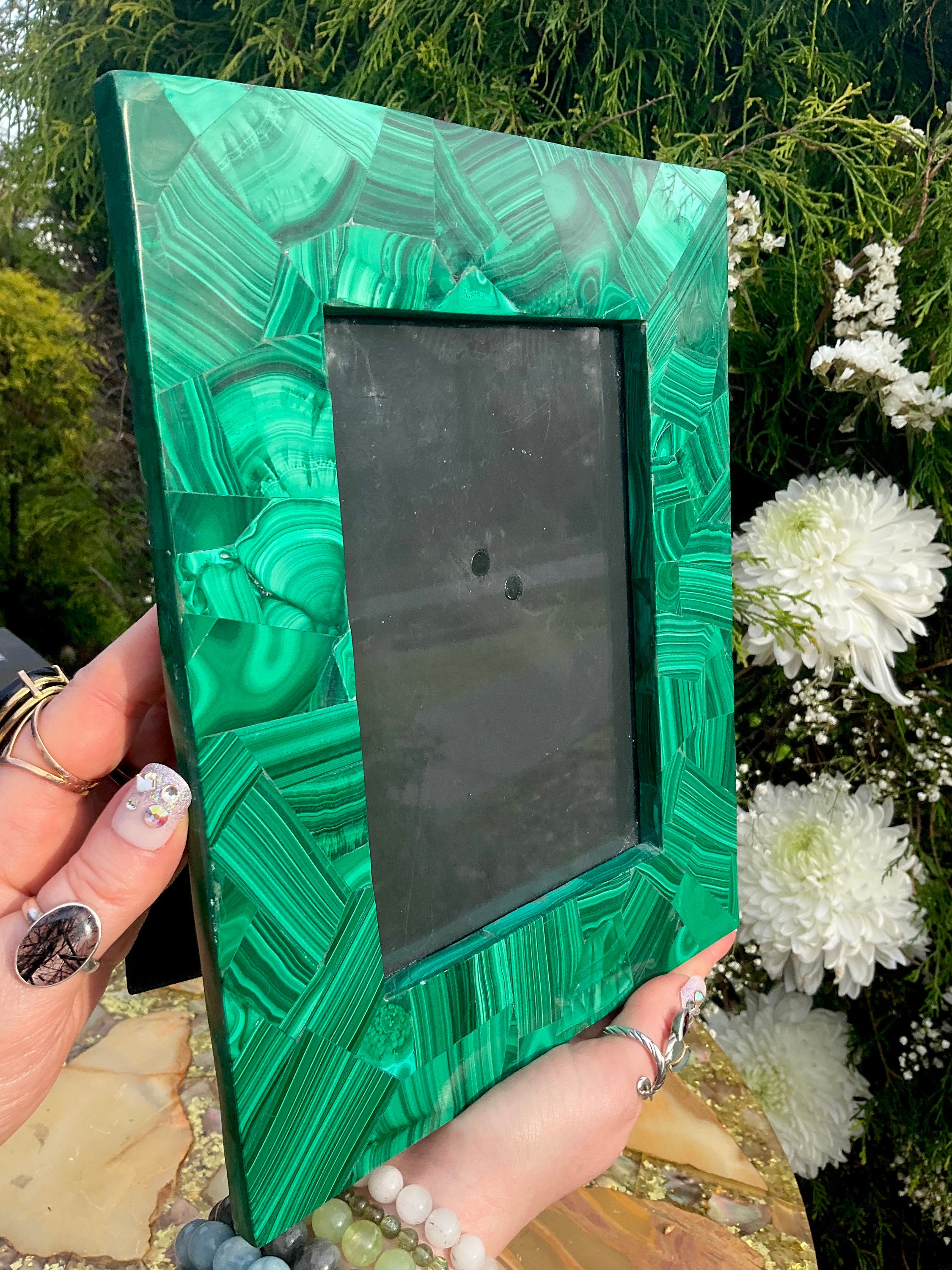 This gorgeous museum quality Malachite Vintage Picture Frame is perfection the vibrant deep green colors swirling into beautiful patterns, is unique only to this mineral making it truly a remarkable piece for your collection.