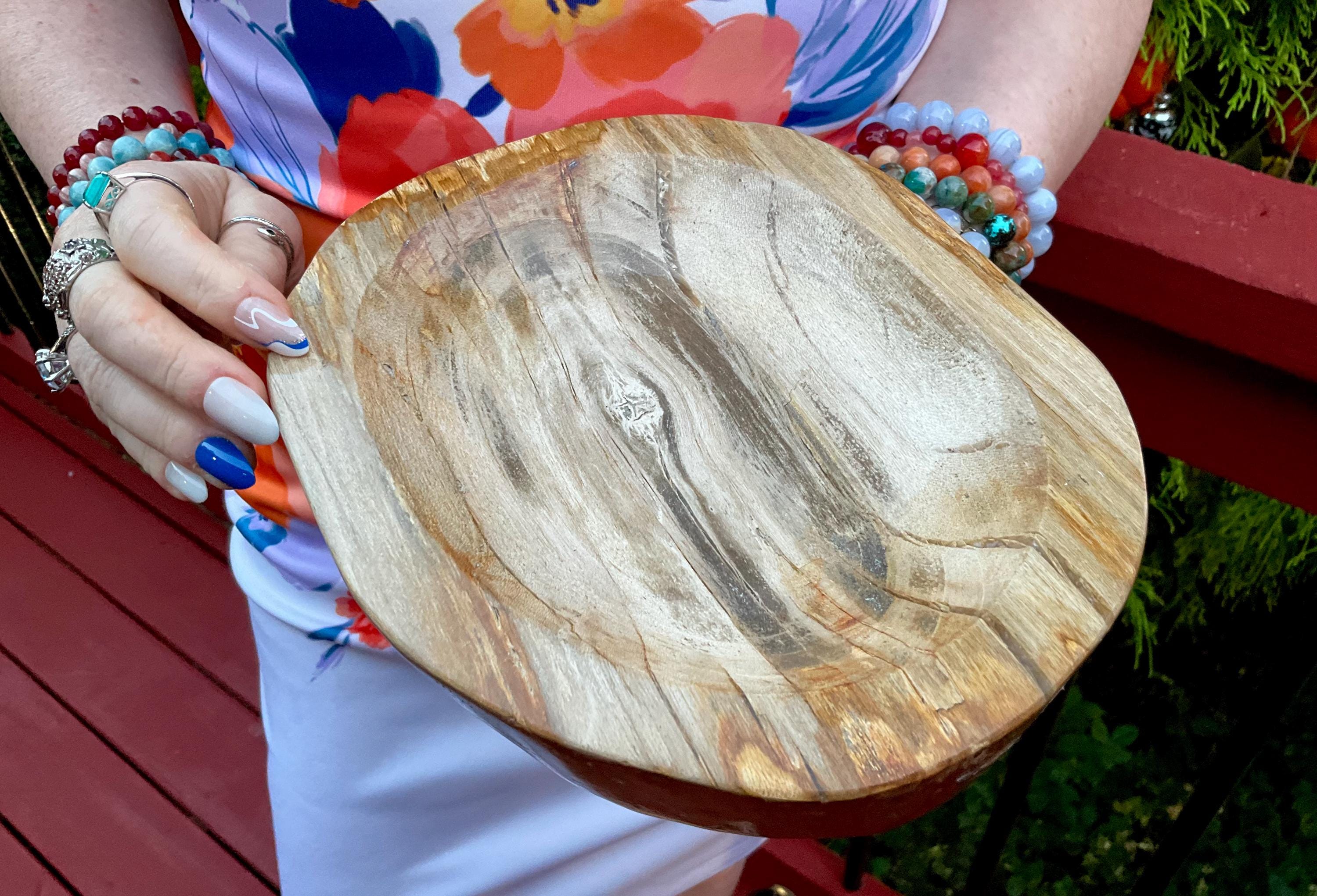 This Petrified Wood Dish Bowl is beautifully cut and polished to perfection in a free style and It would be lovely on display, for your altar, your meditation room, office, yoga room, Zen, den, anywhere really.