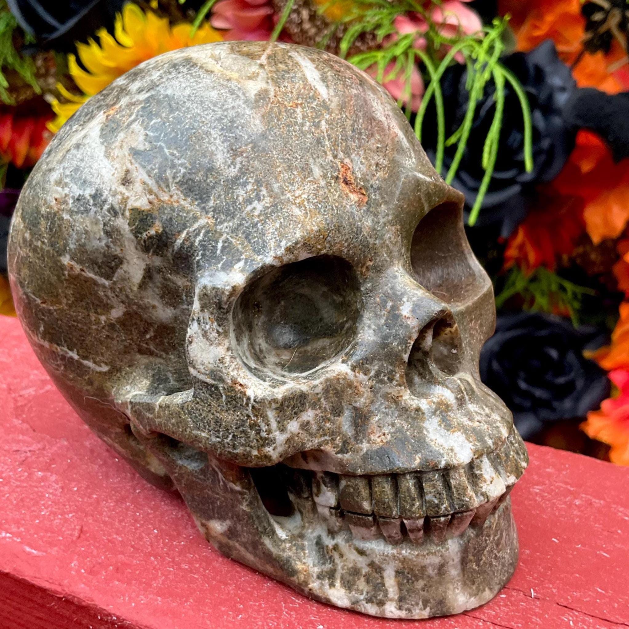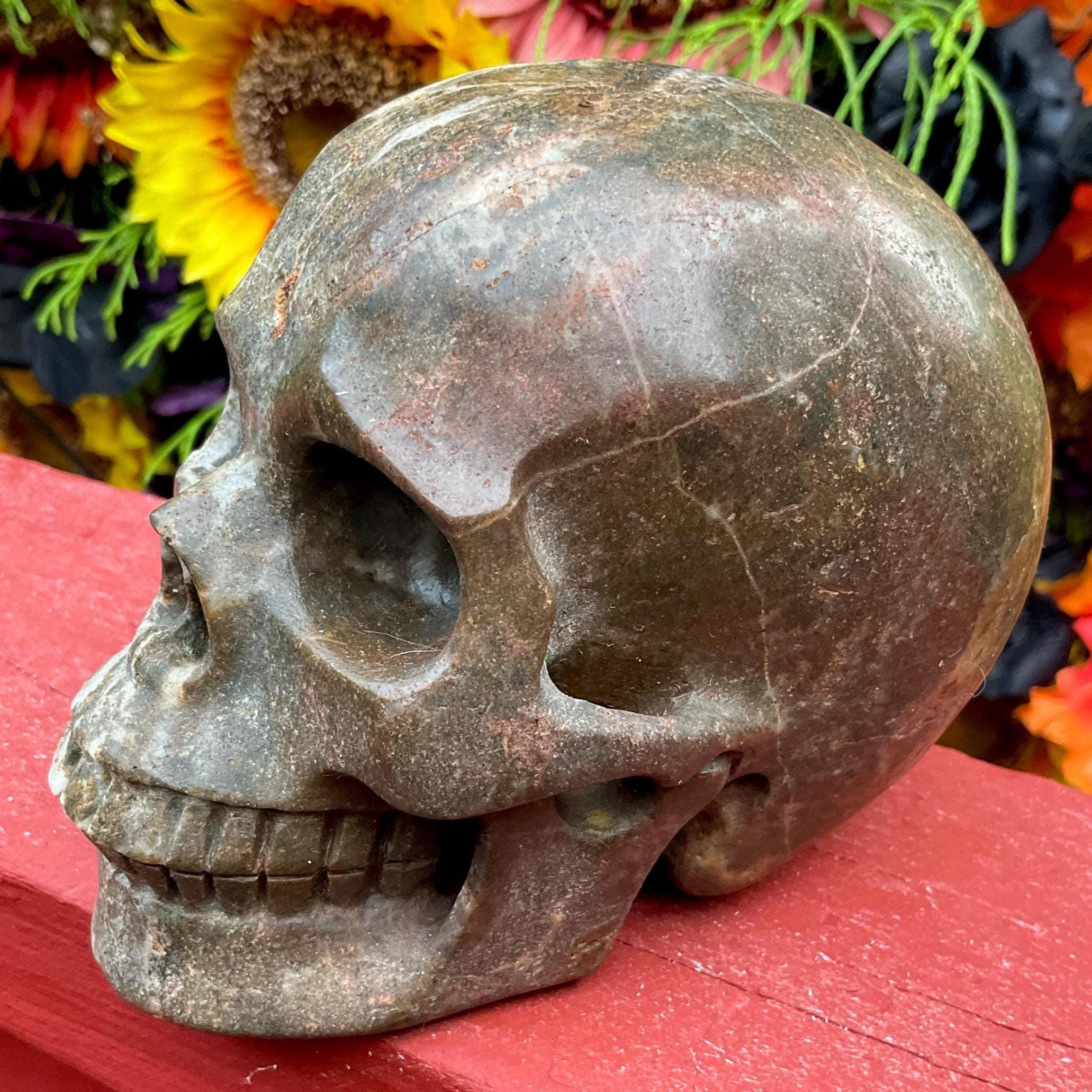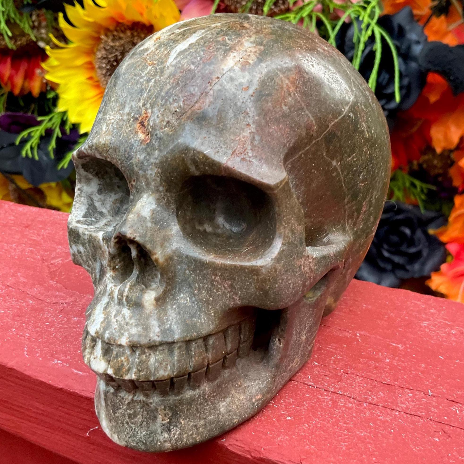 It is so Sparkling Swirling red and black colors, perfectly polished, and it has sparkling golden colors throughout ~ It is truly a one-of-a-kind Skull for the most advanced collector.