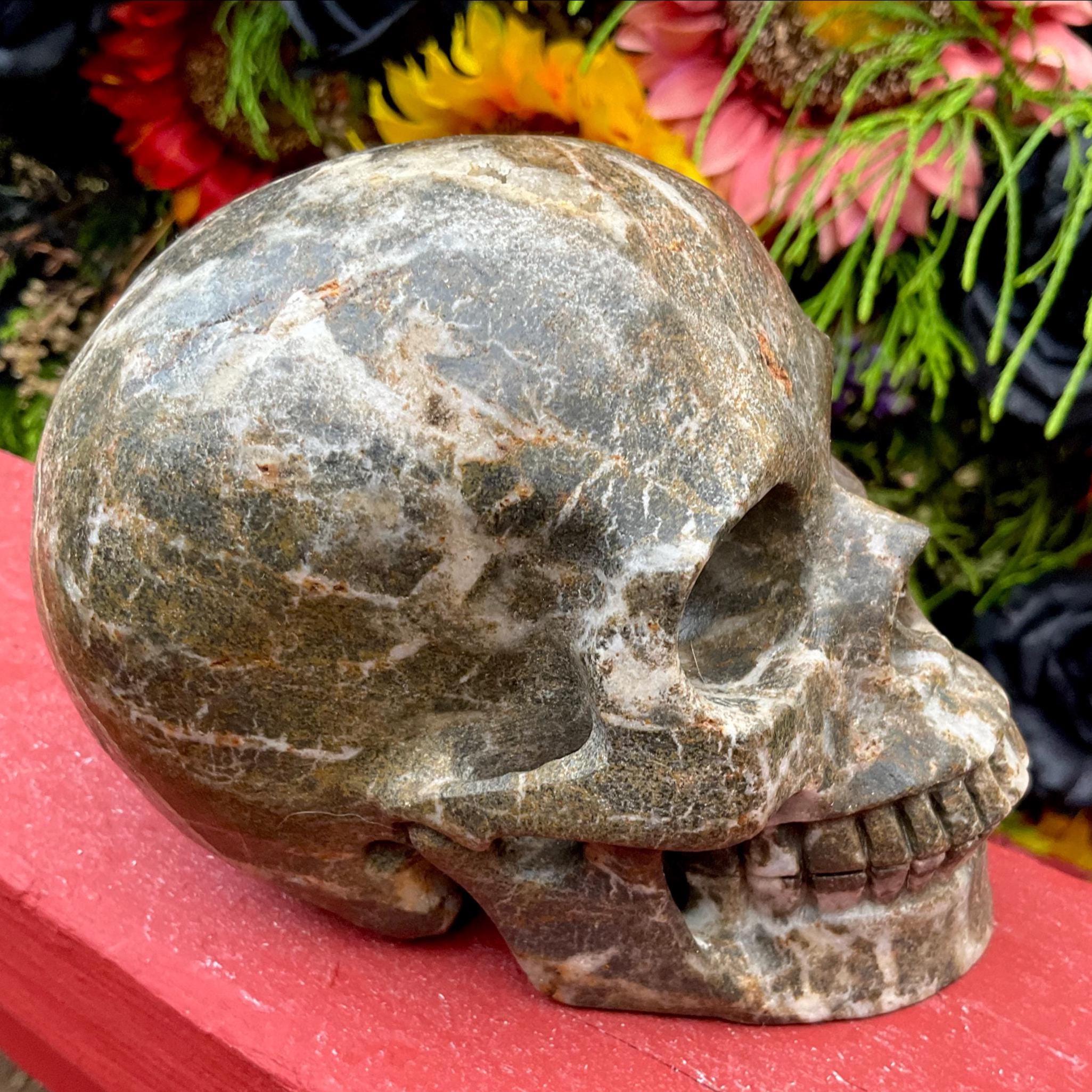 What makes this a truly one-of-a-kind deep red Garnet crystal skull are the amazing incredible sparkling golden patterns locked inside this beautiful crystal I cannot say enough about the colors they are insane!