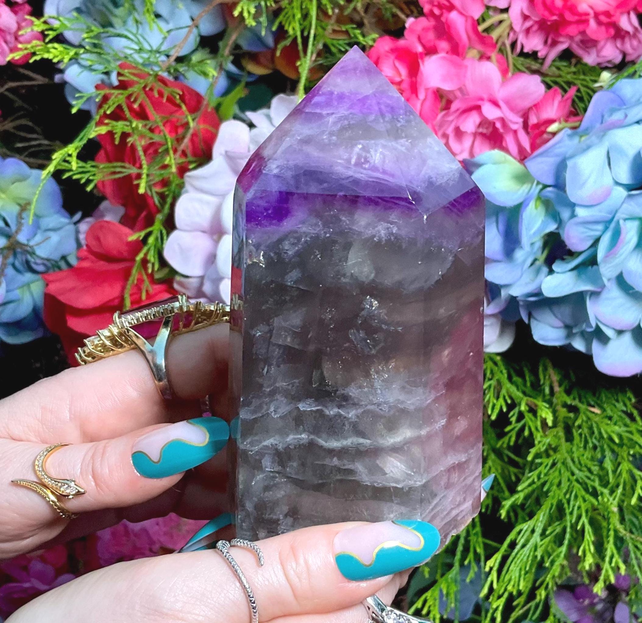 Purple Fluorite Crystal Generator ~ Large 1 lb. 14 oz. ~ 5" Tall Tower ~ Beautifully Polished Rainbow Colors ~ Free & Fast Shipping from USA
