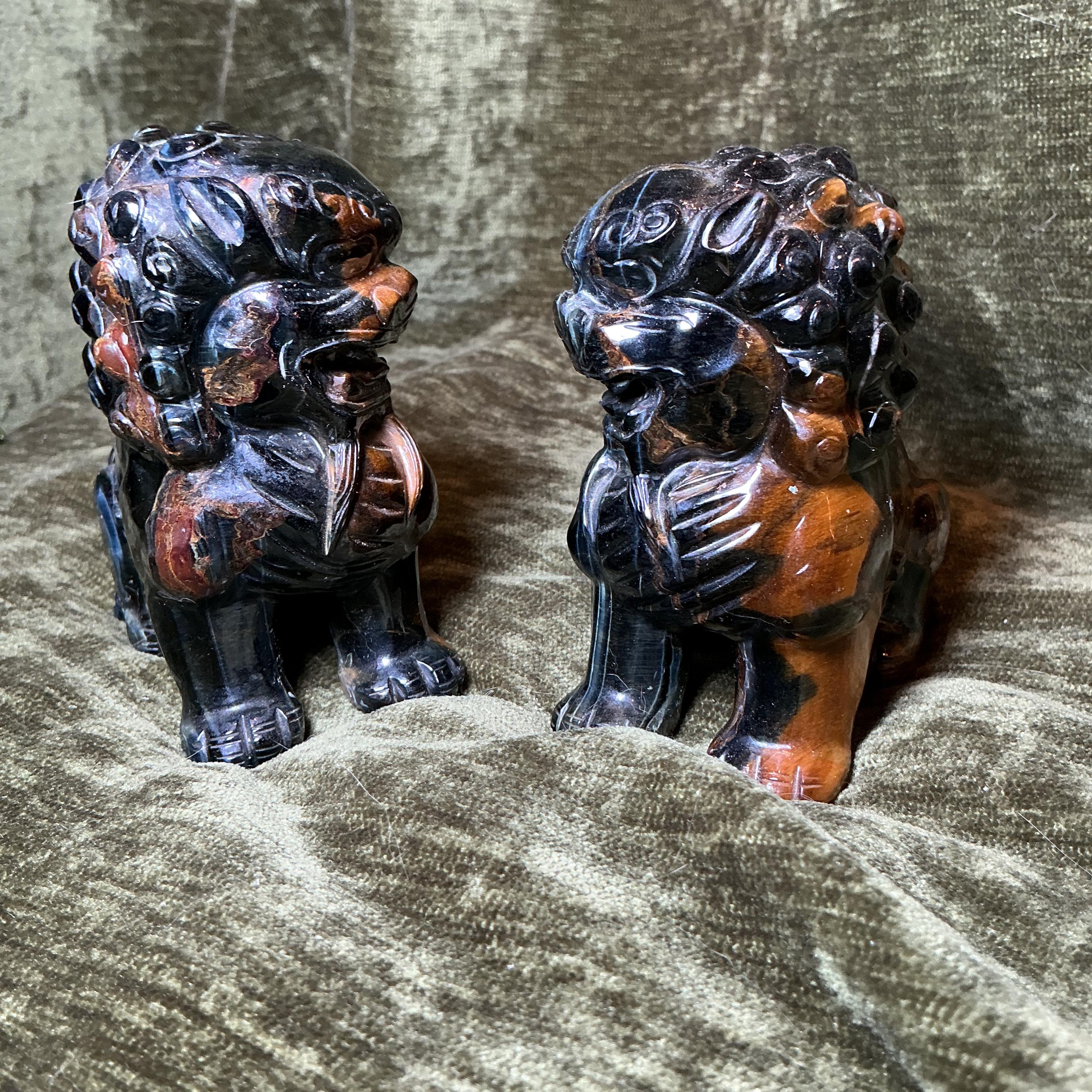 Tigers Eye Crystal Foo Dog x 2 ~ 1 Lb. ~ 4" Tall ~ Hand Carved from South Africa ~ Sparkling Gold, Blue & Black Colors ~ Fast and Free Shipping