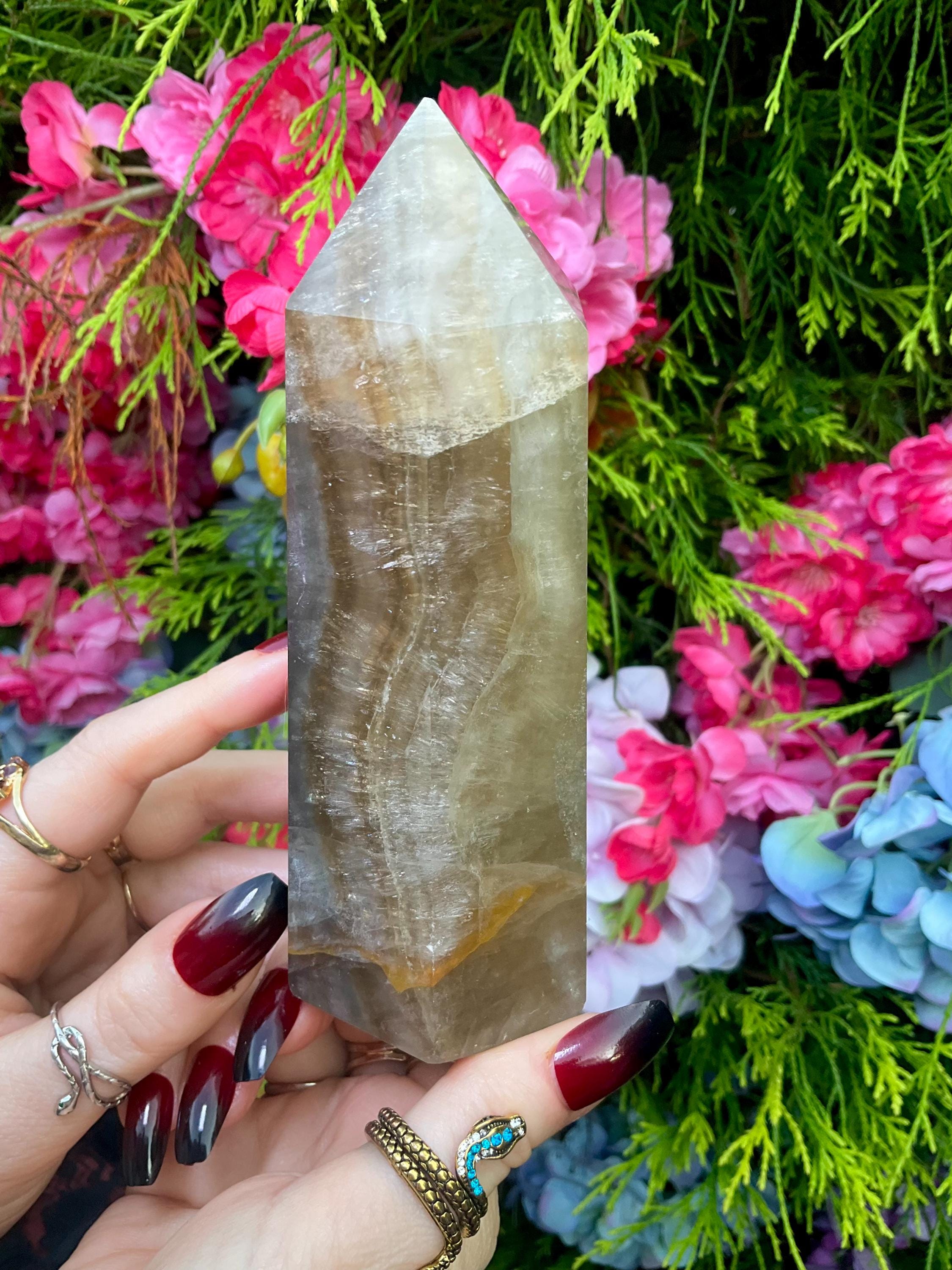 Yellow Fluorite Crystal Generator ~ Large 1 lb. 13 oz. ~ 5 1/2" Tall ~ Swirling Golden Honey Colors ~ Free & Fast Shipping, U.S.A + Global Shipping ~