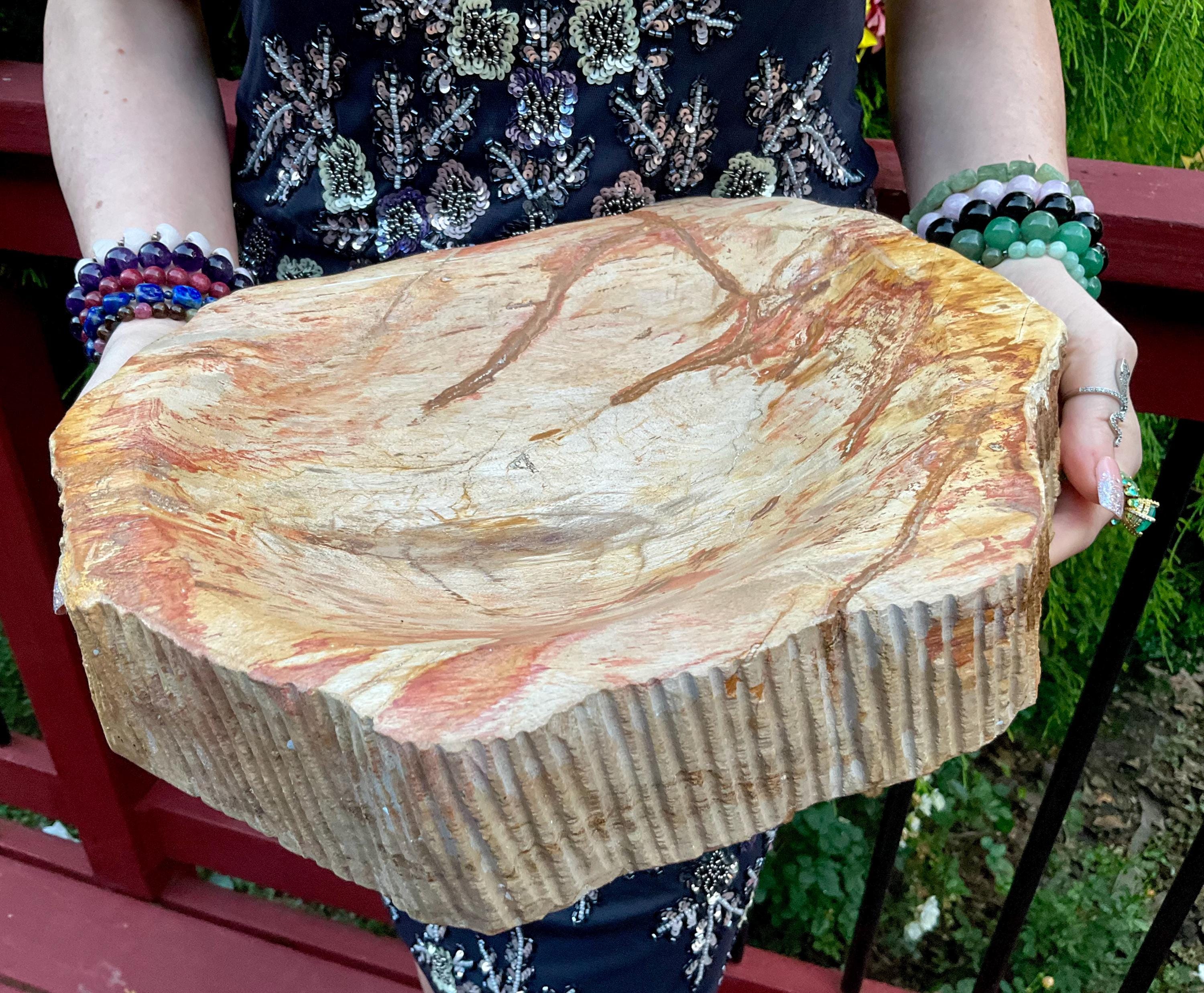 Petrified Wood Jewelry Dish ~ Large 15 lb. 15 oz. ~ 12" Wide ~ Stunning Display from Indonesia ~ Millions of Years Old ~ Fast Free Shipping