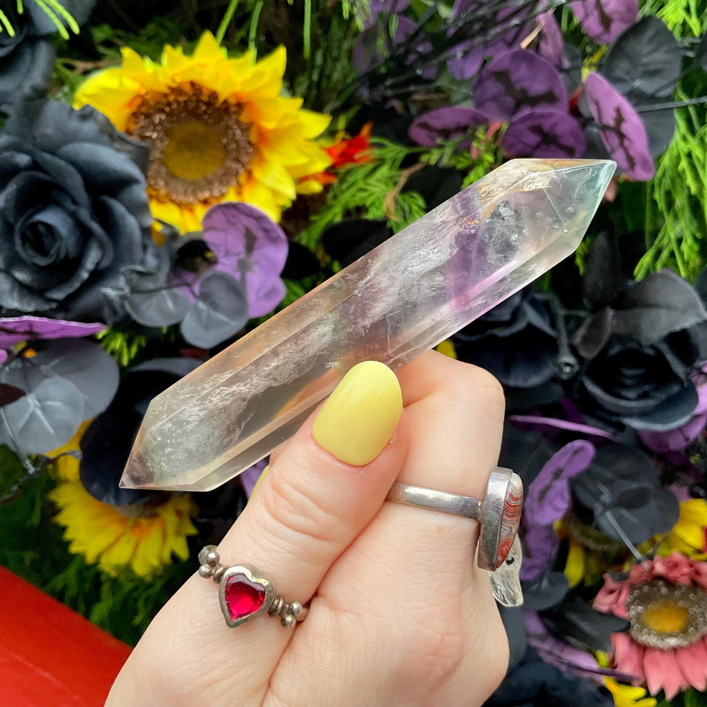 Rainbow Fluorite Double Terminated Wand ~ Large 2.7 oz. ~ 4" Long ~ Clear, Black, Purple ~ Fast & Free Shipping, USA + Global Shipping