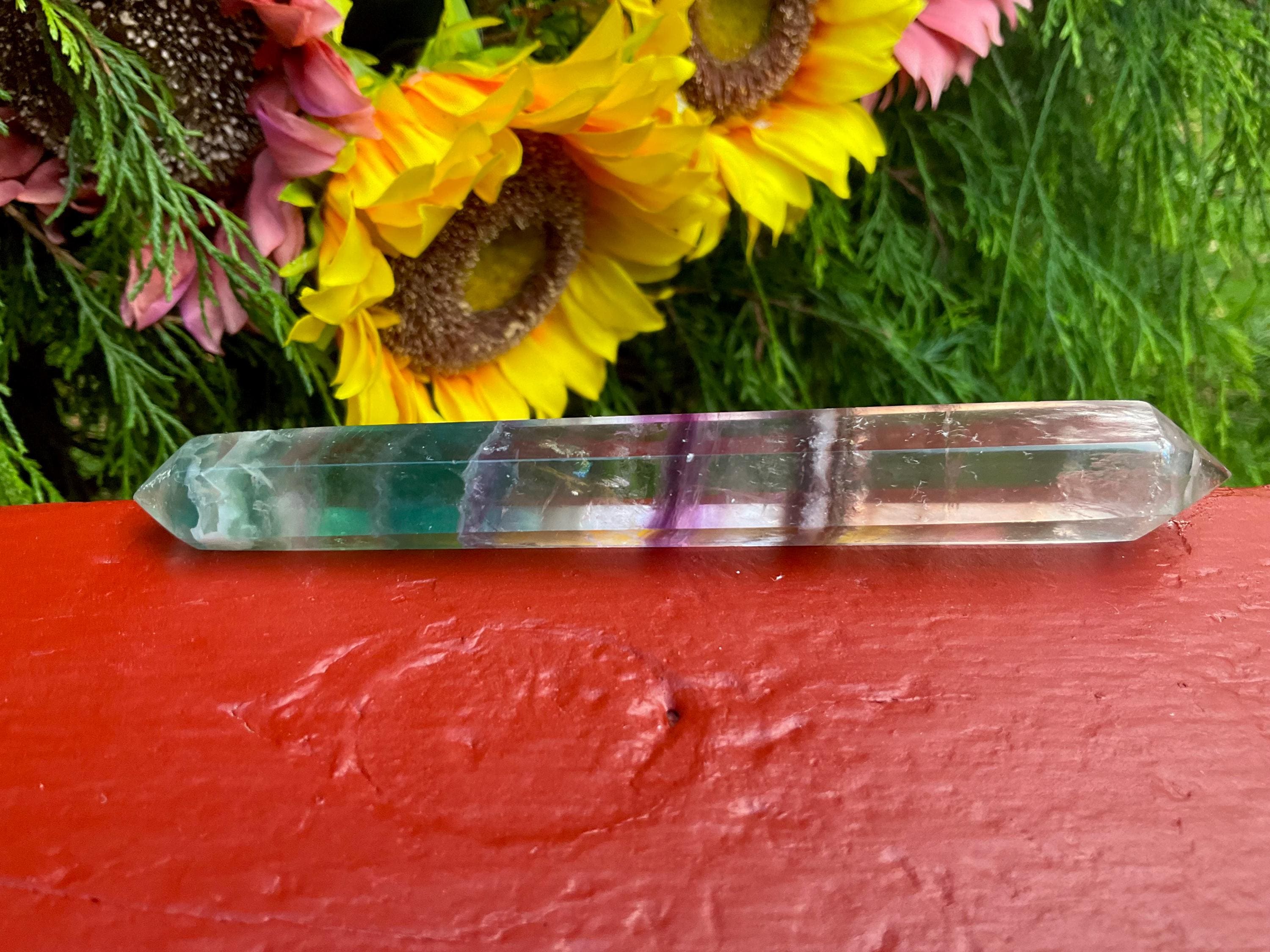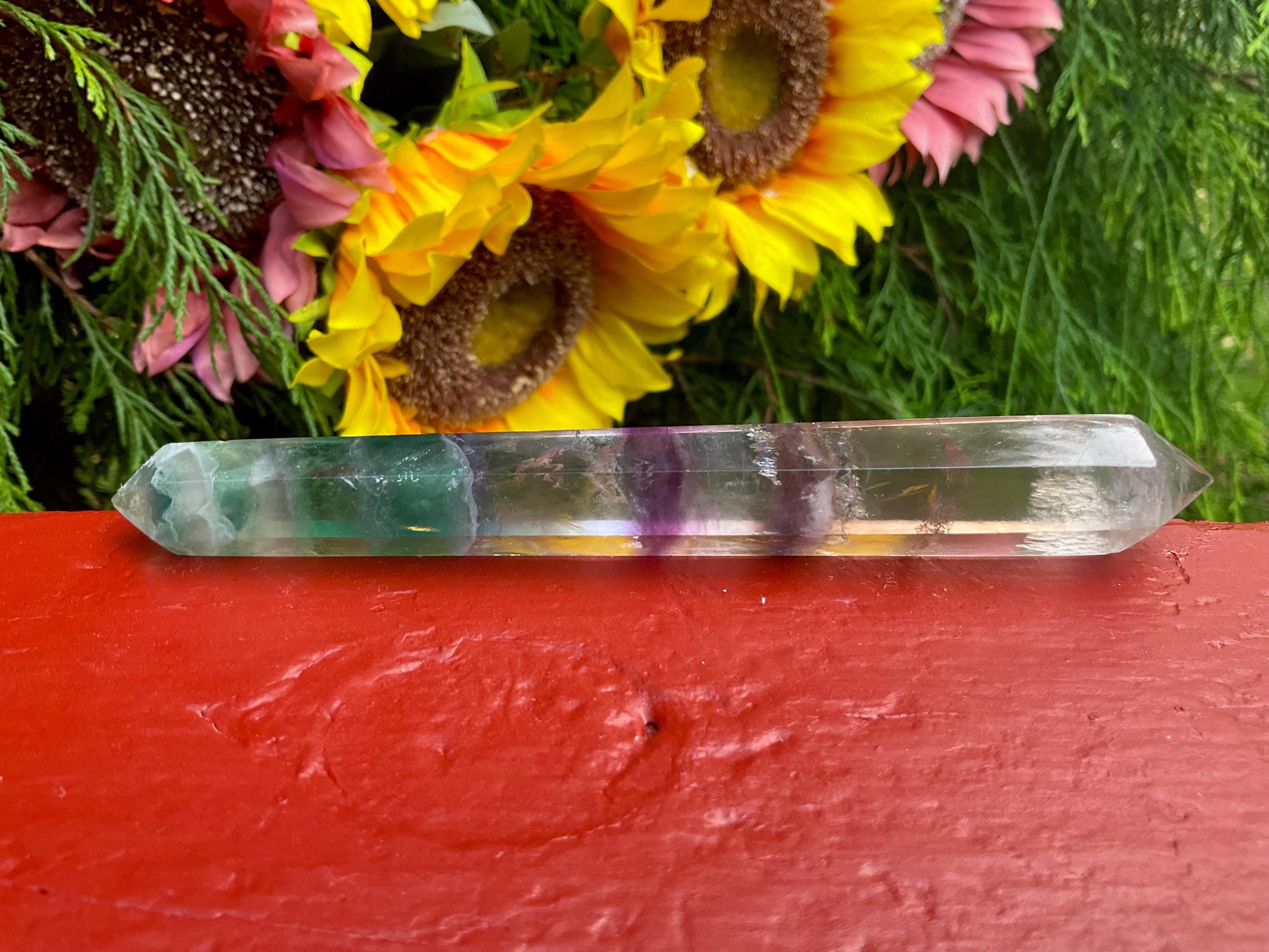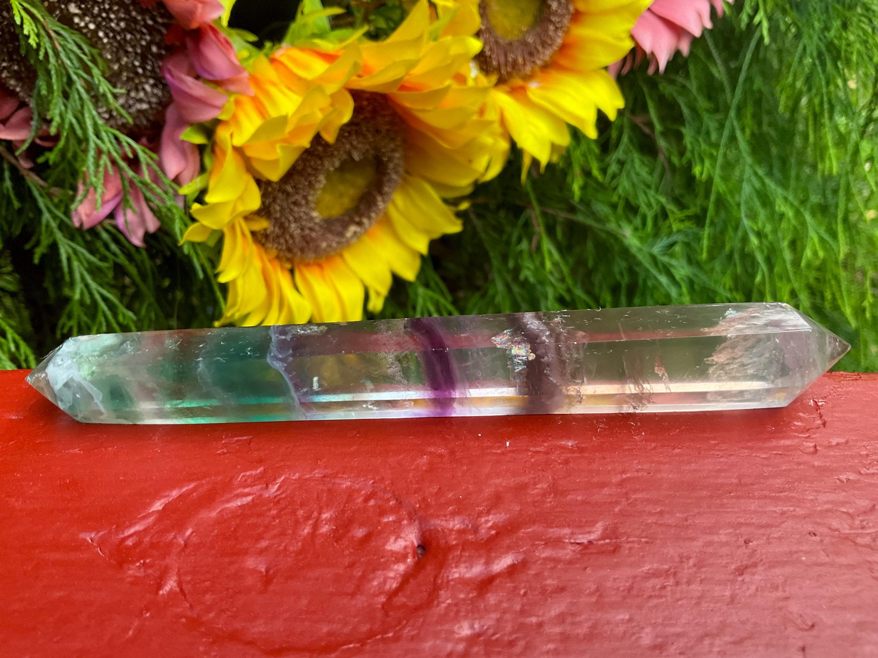 Rainbow Fluorite Double Terminated Wand ~ Large 2 oz. ~ 5" Long ~ Clear, Green, Purple ~ Fast & Free Shipping, USA + Global Shipping