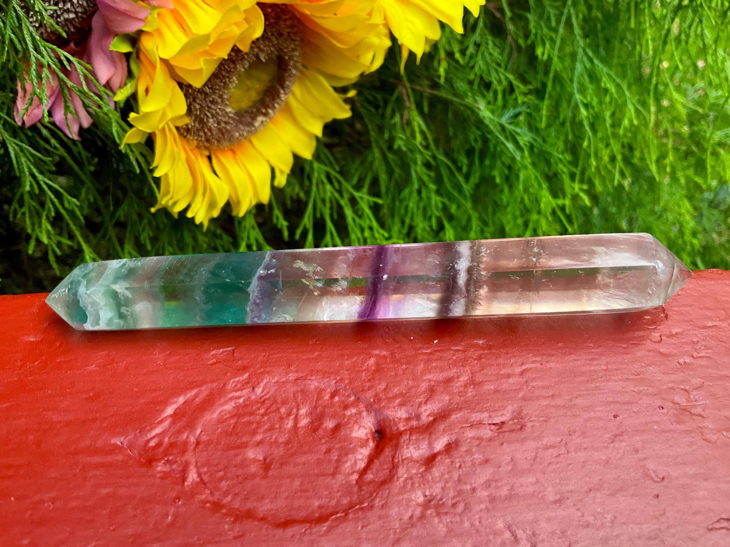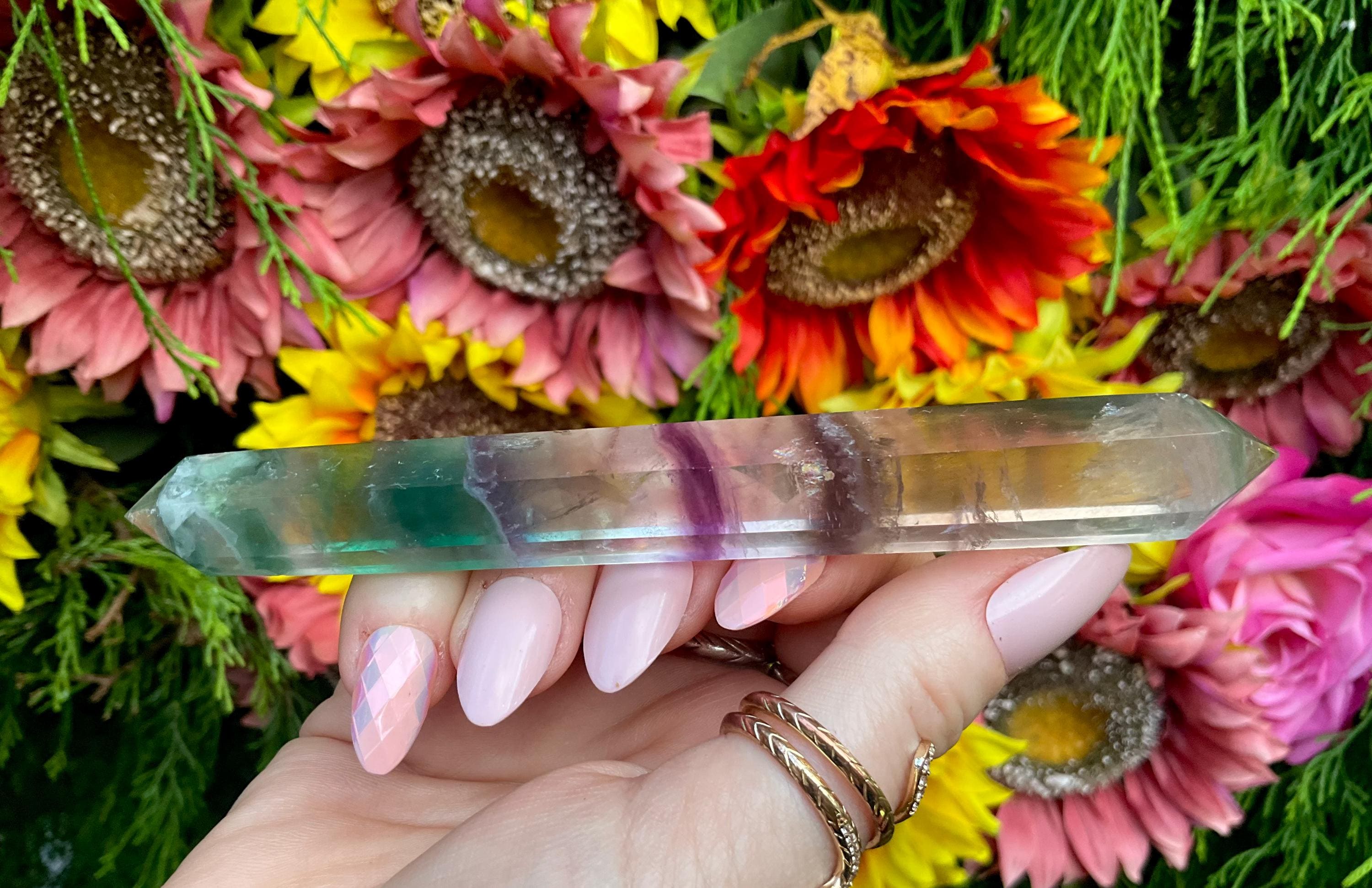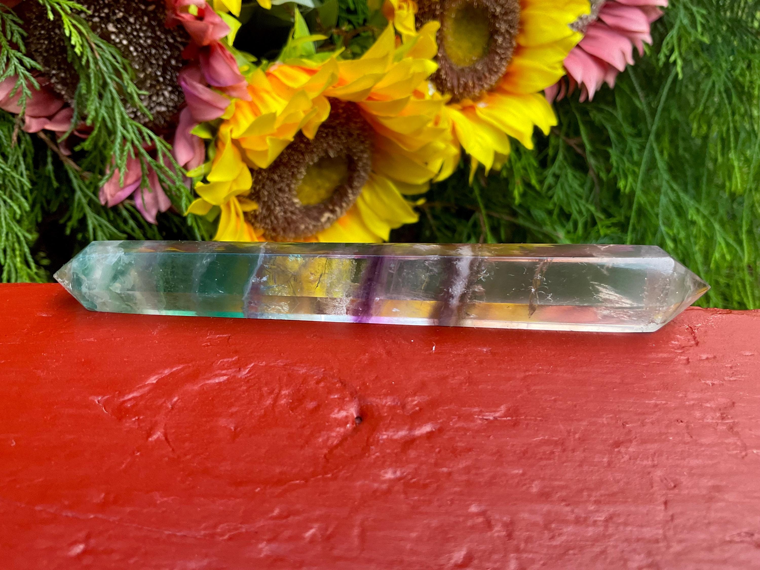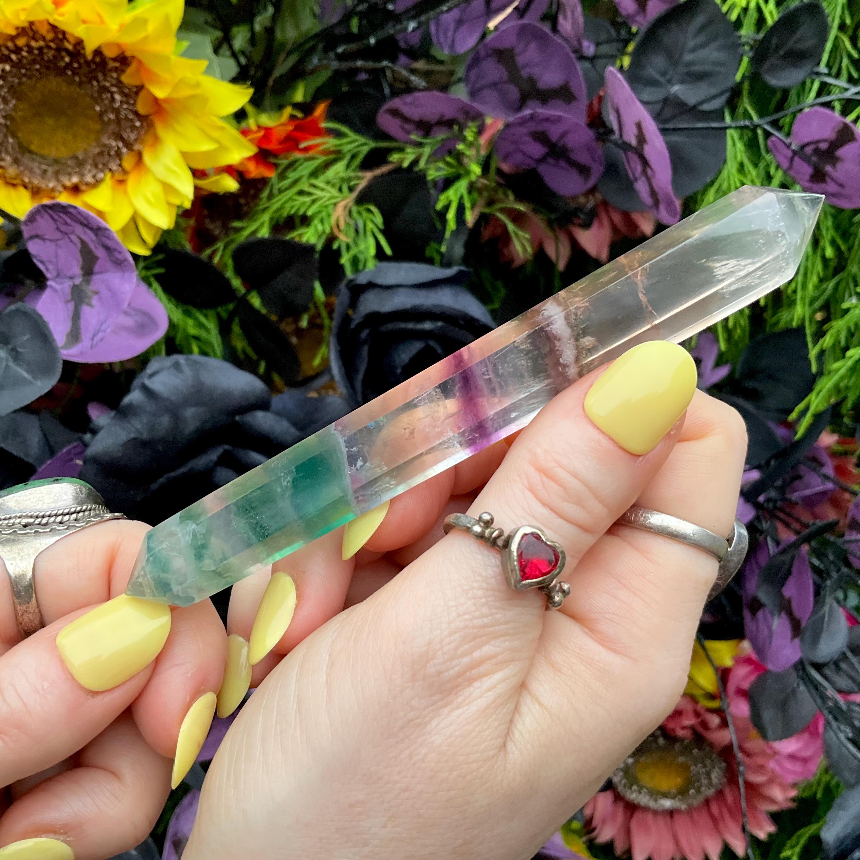 Rainbow Fluorite Double Terminated Wand ~ Large 2 oz. ~ 5" Long ~ Clear, Green, Purple ~ Fast & Free Shipping, USA + Global Shipping