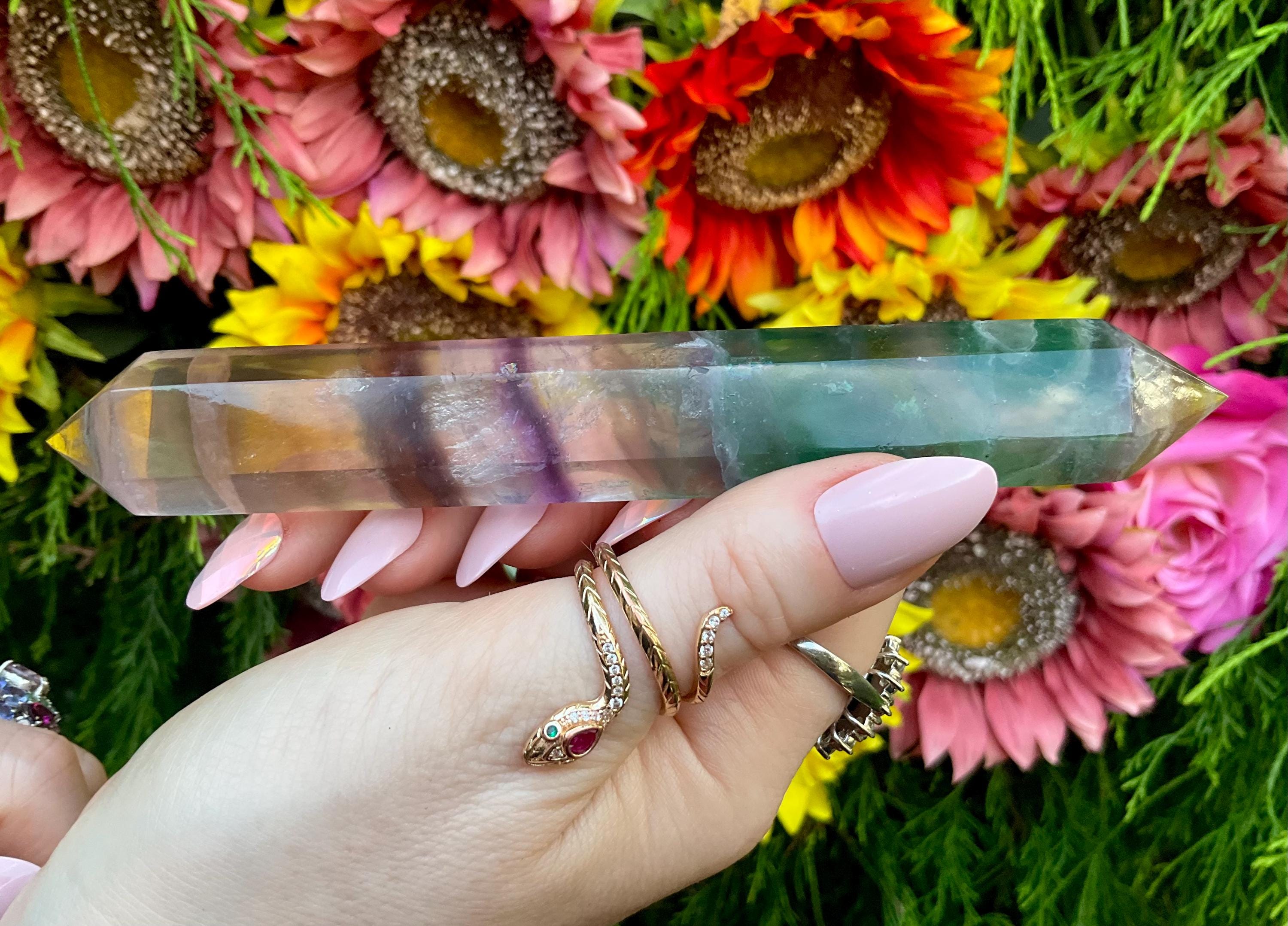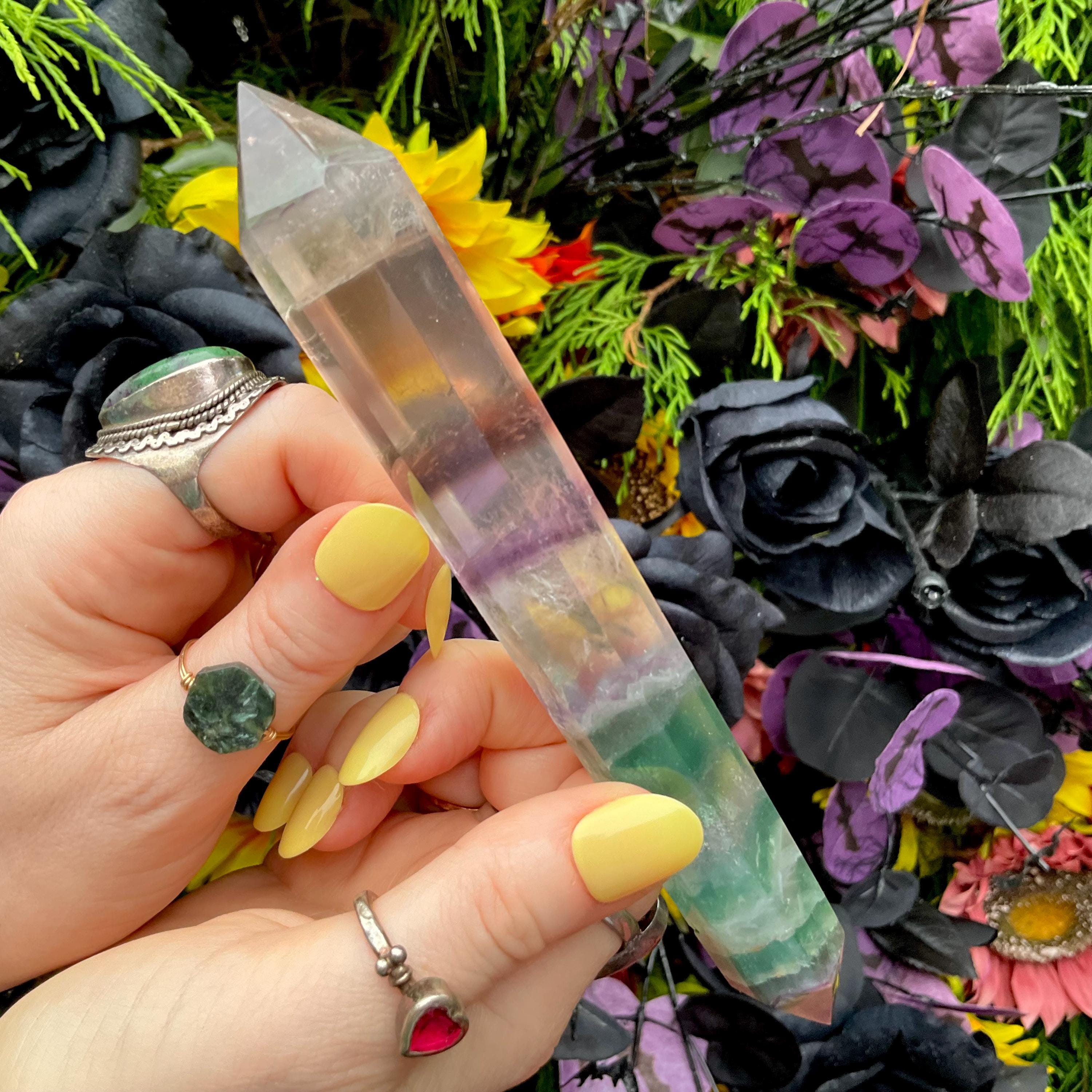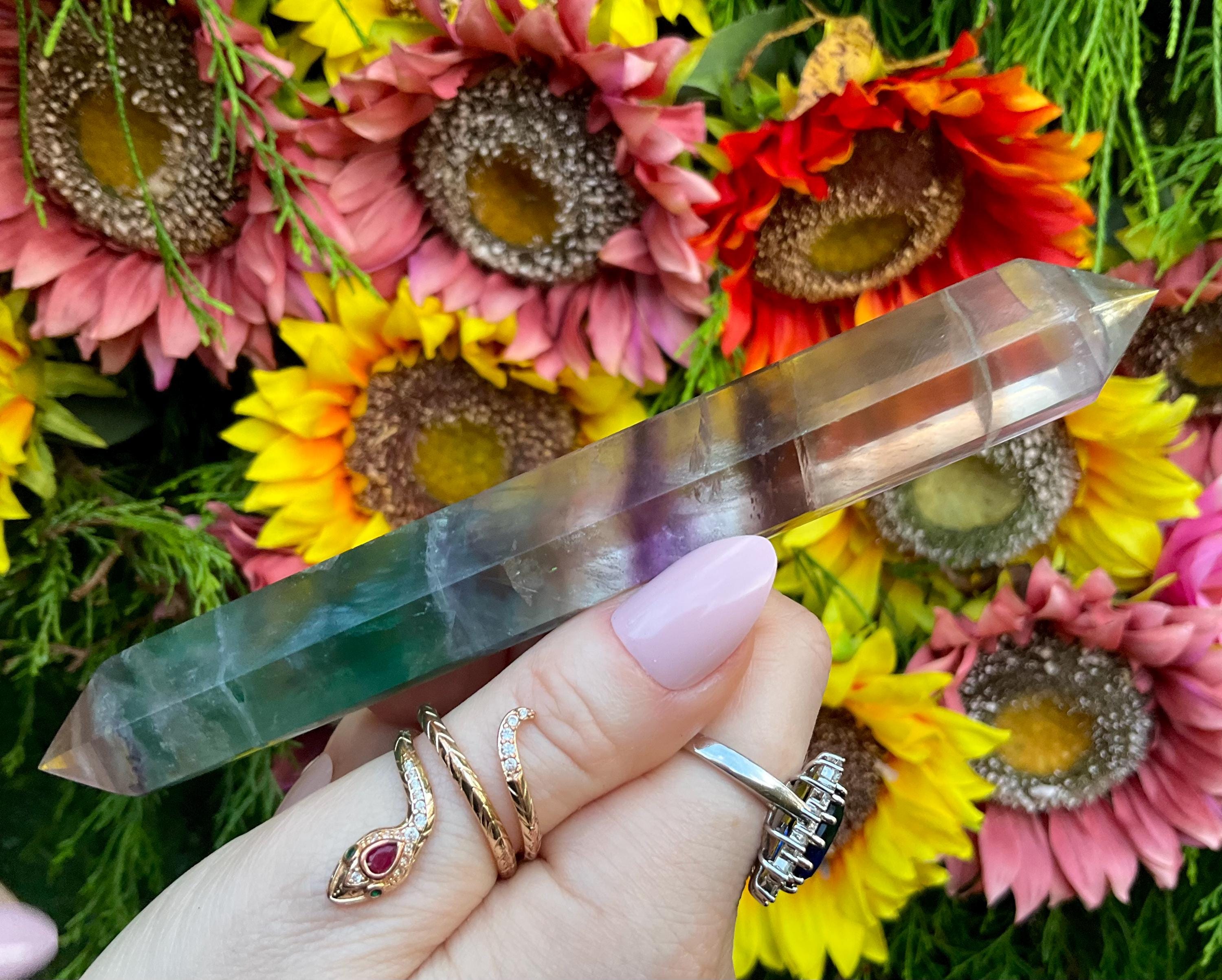 Rainbow Fluorite Double Terminated Wand: Large Polished Crystal Point