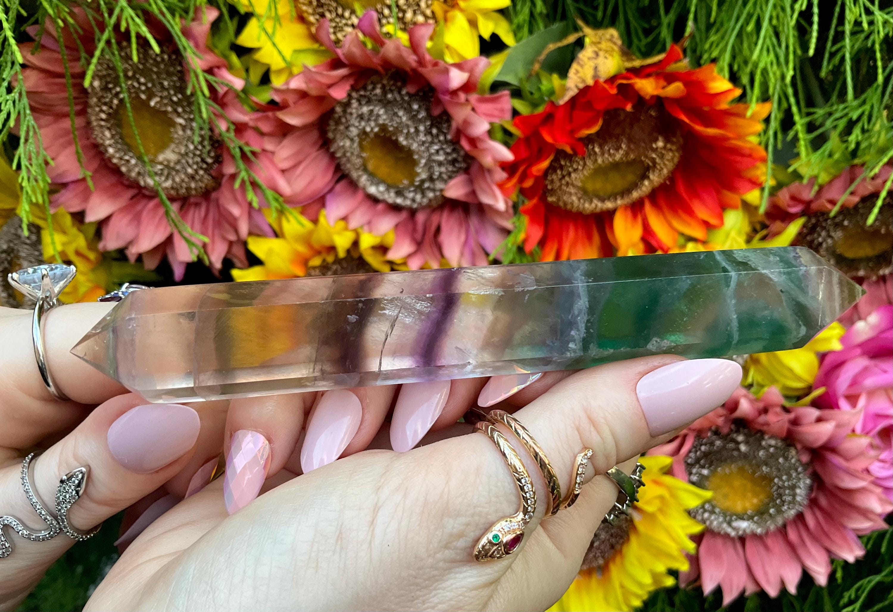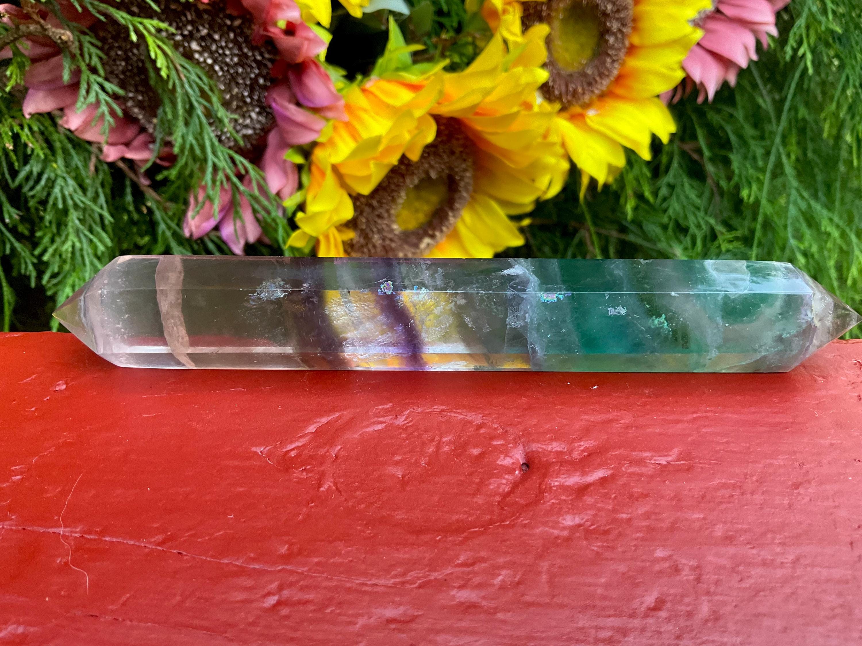 Rainbow Fluorite Double Terminated Wand ~ Large 4.6 oz. ~ 6 1/2" Long ~ Clear, Green, Purple ~ Fast & Free Shipping, USA + Global Shipping