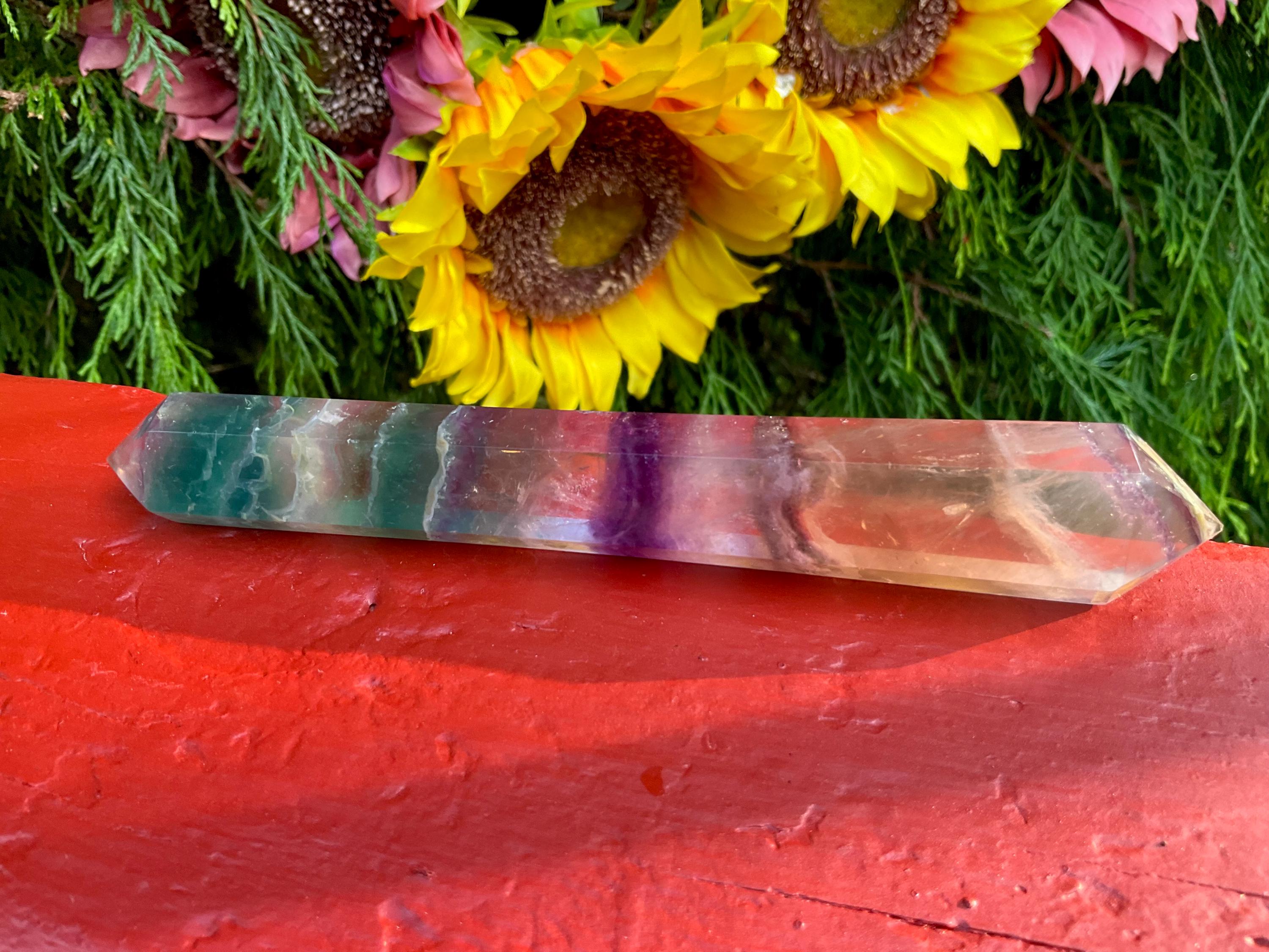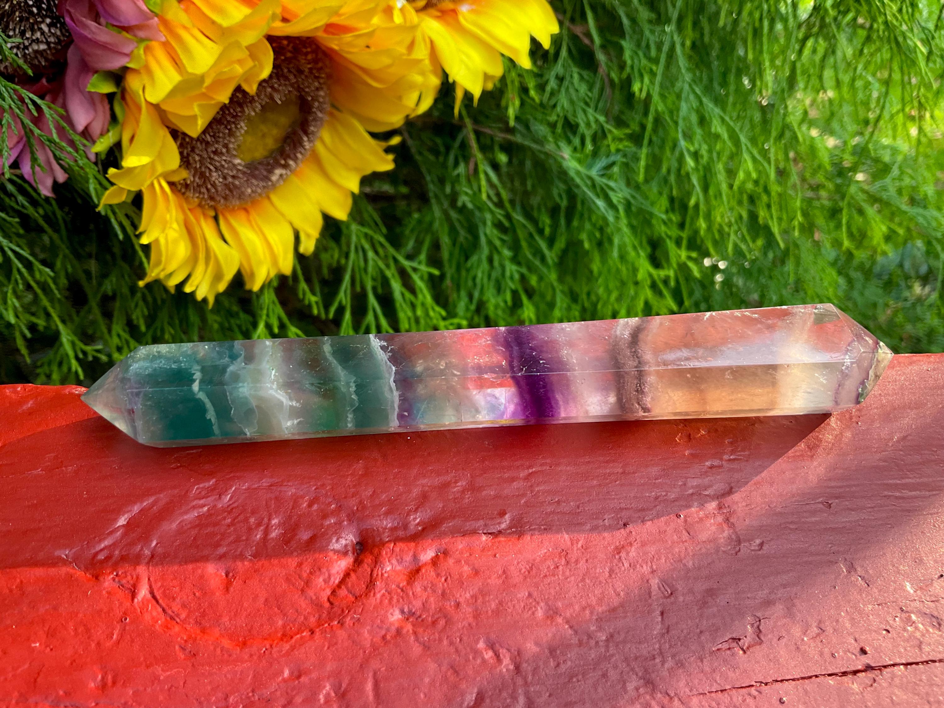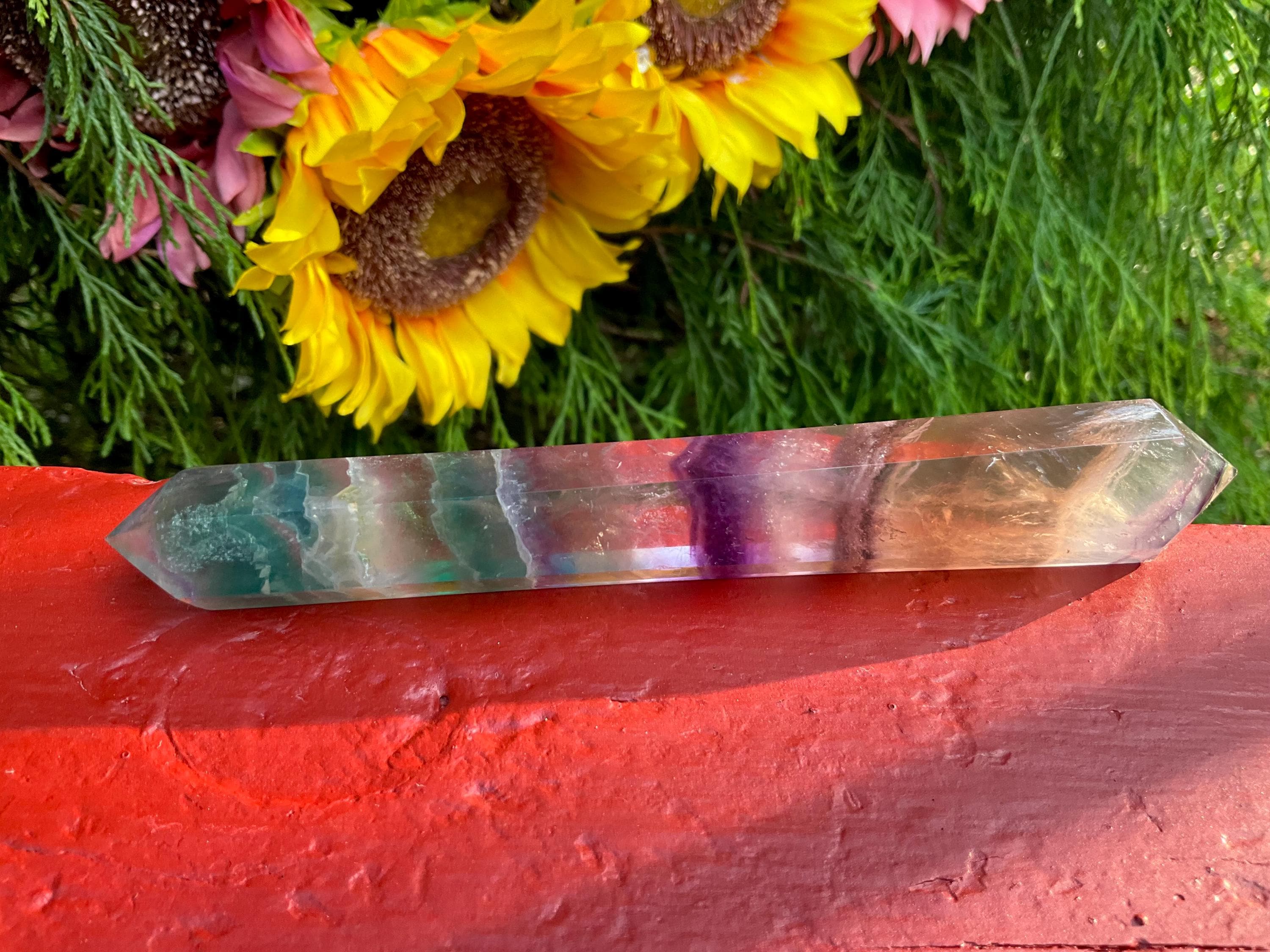 Rainbow Fluorite Double Terminated Wand: Polished Crystal Decor