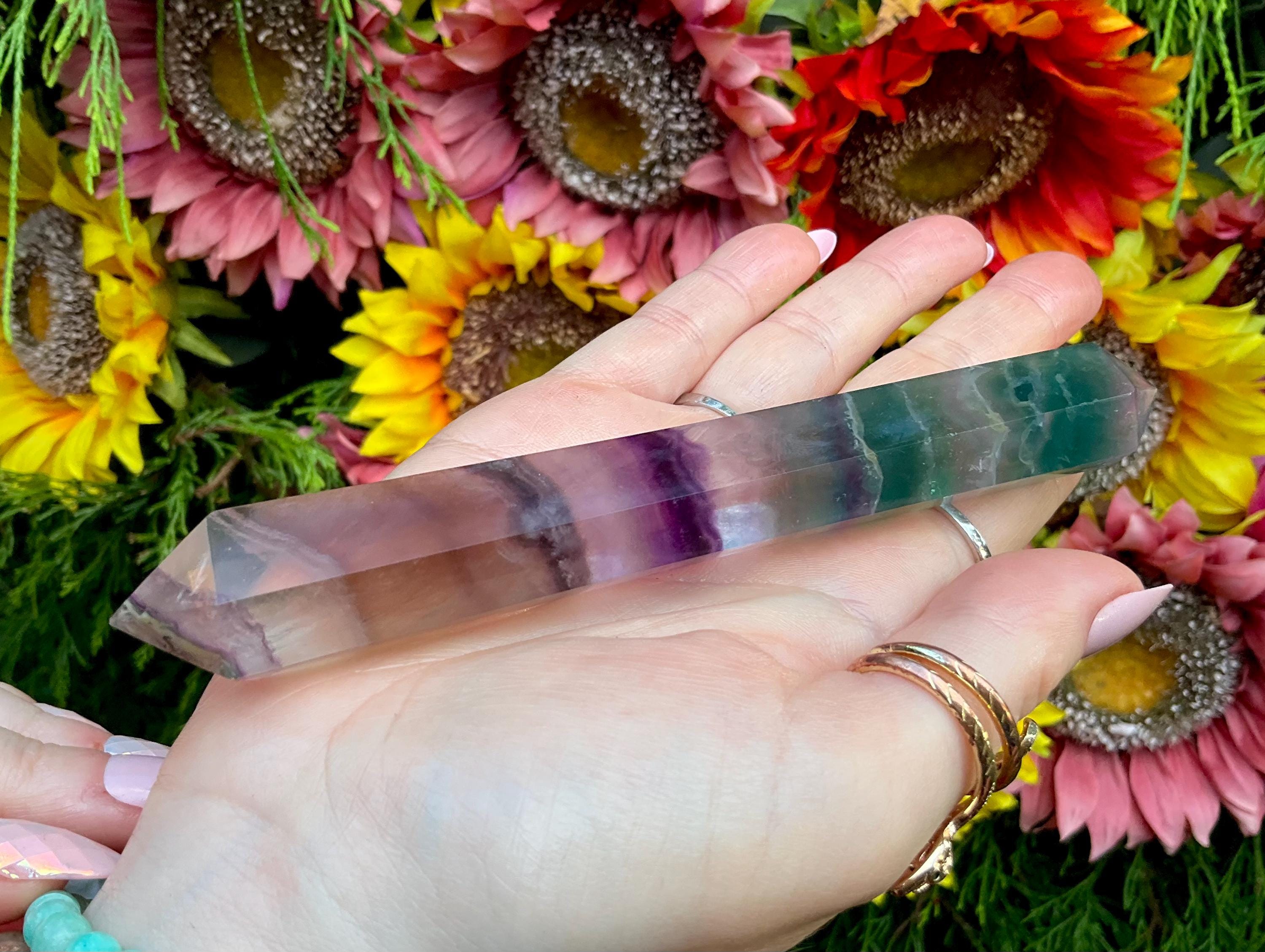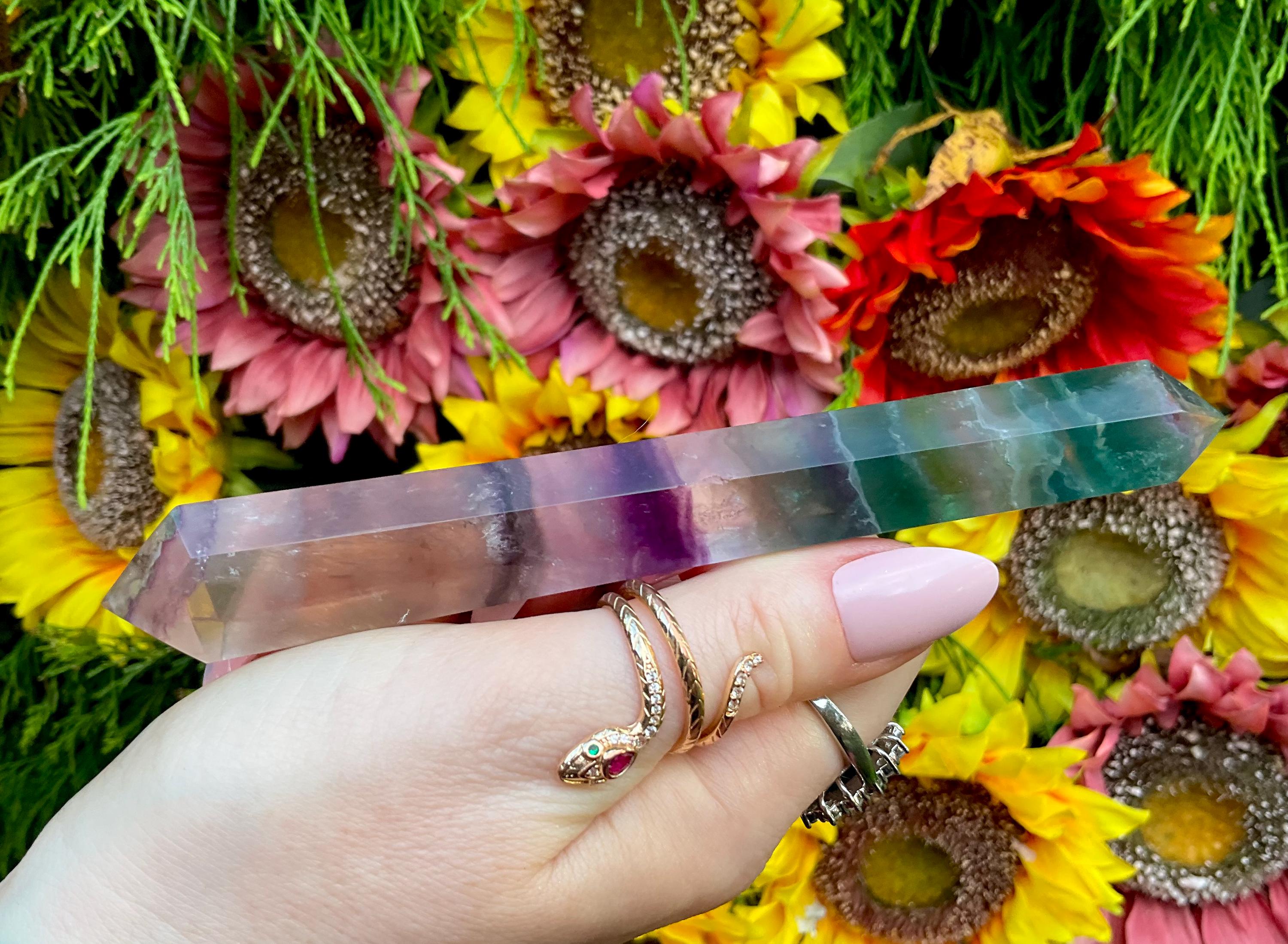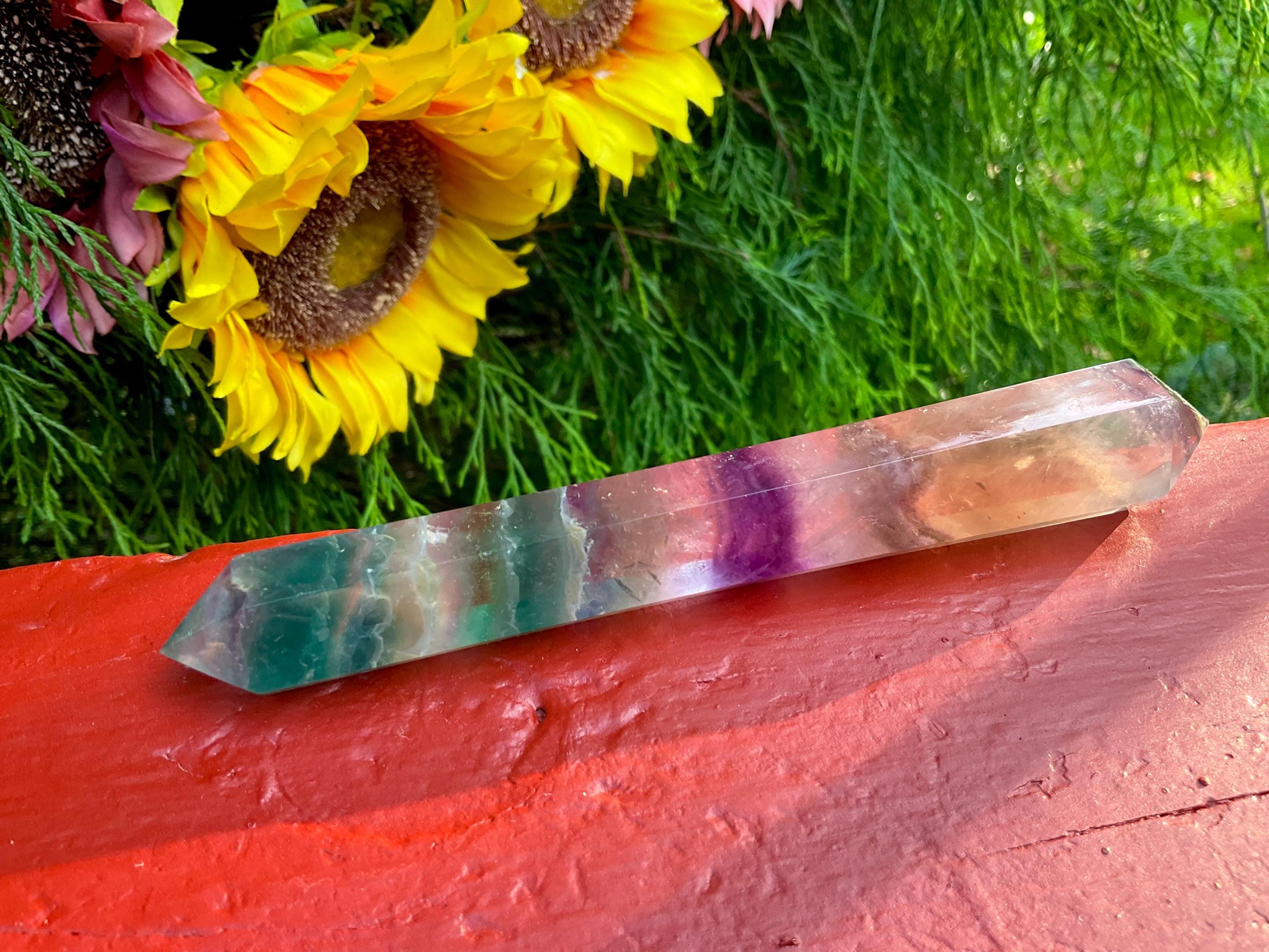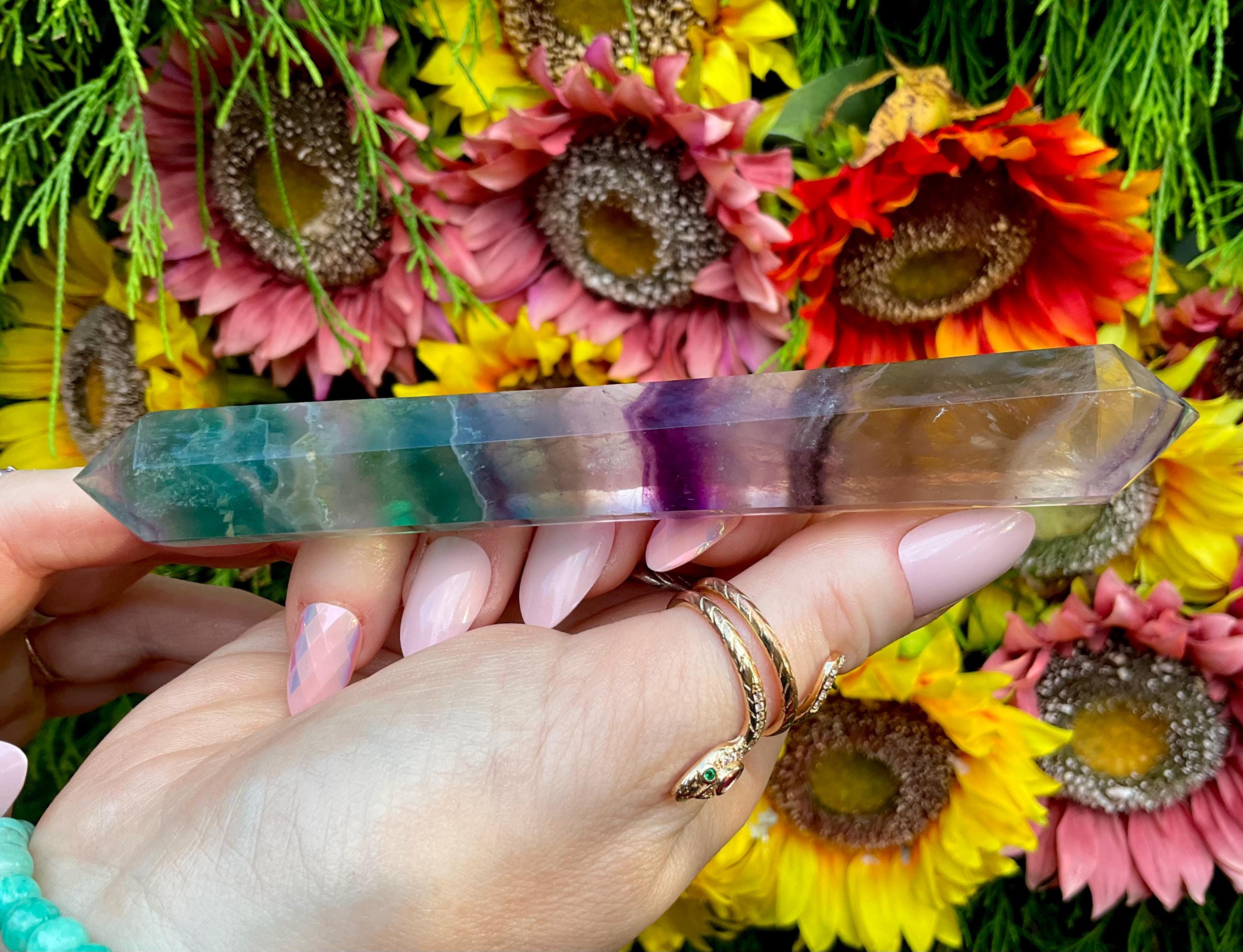 Rainbow Fluorite Double Terminated Wand: Polished Crystal Decor