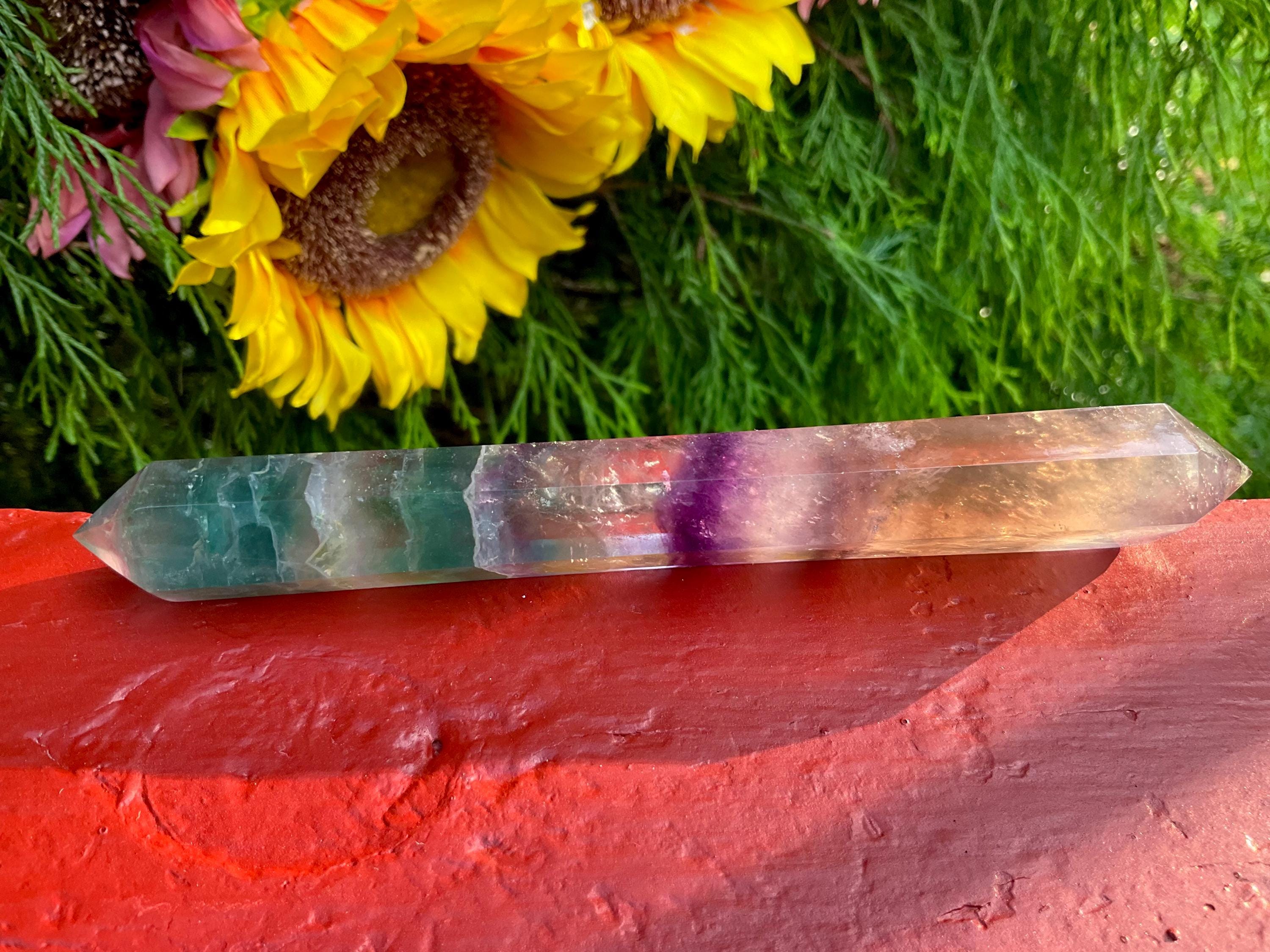 Rainbow Fluorite Double Terminated Wand ~ Large 3.4 oz. ~ 6" Long ~ Clear, Green, Purple ~ Fast & Free Shipping, USA + Global Shipping
