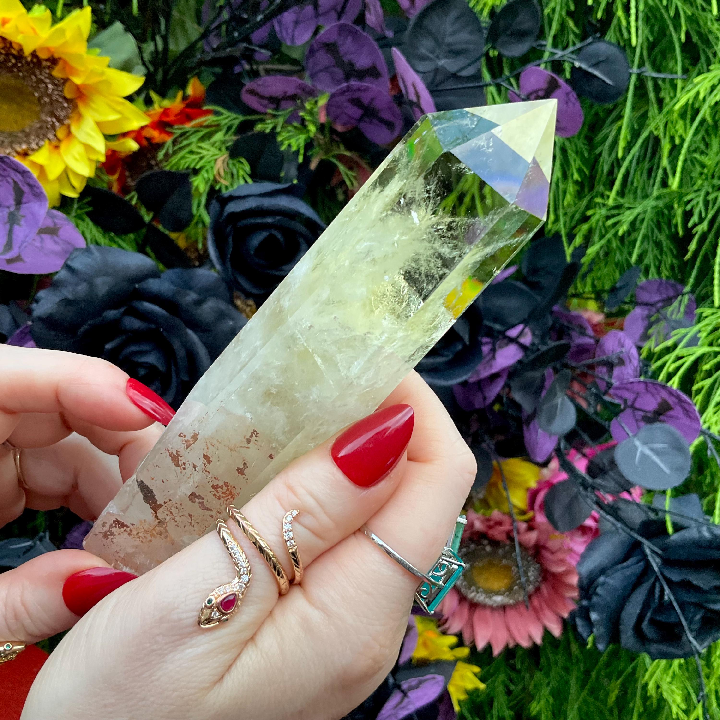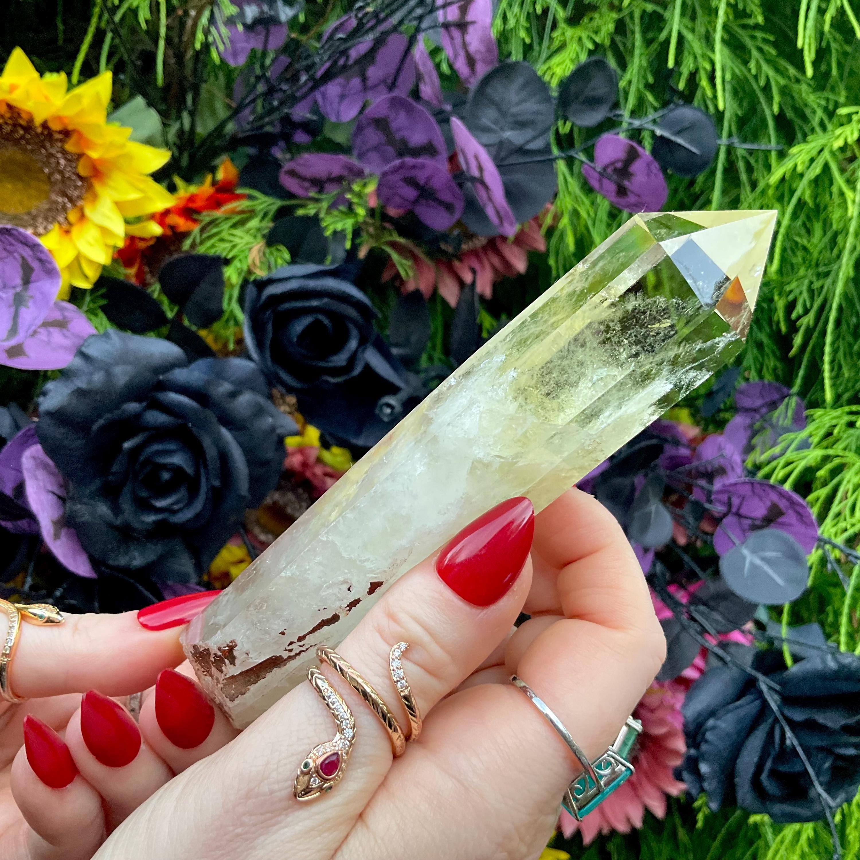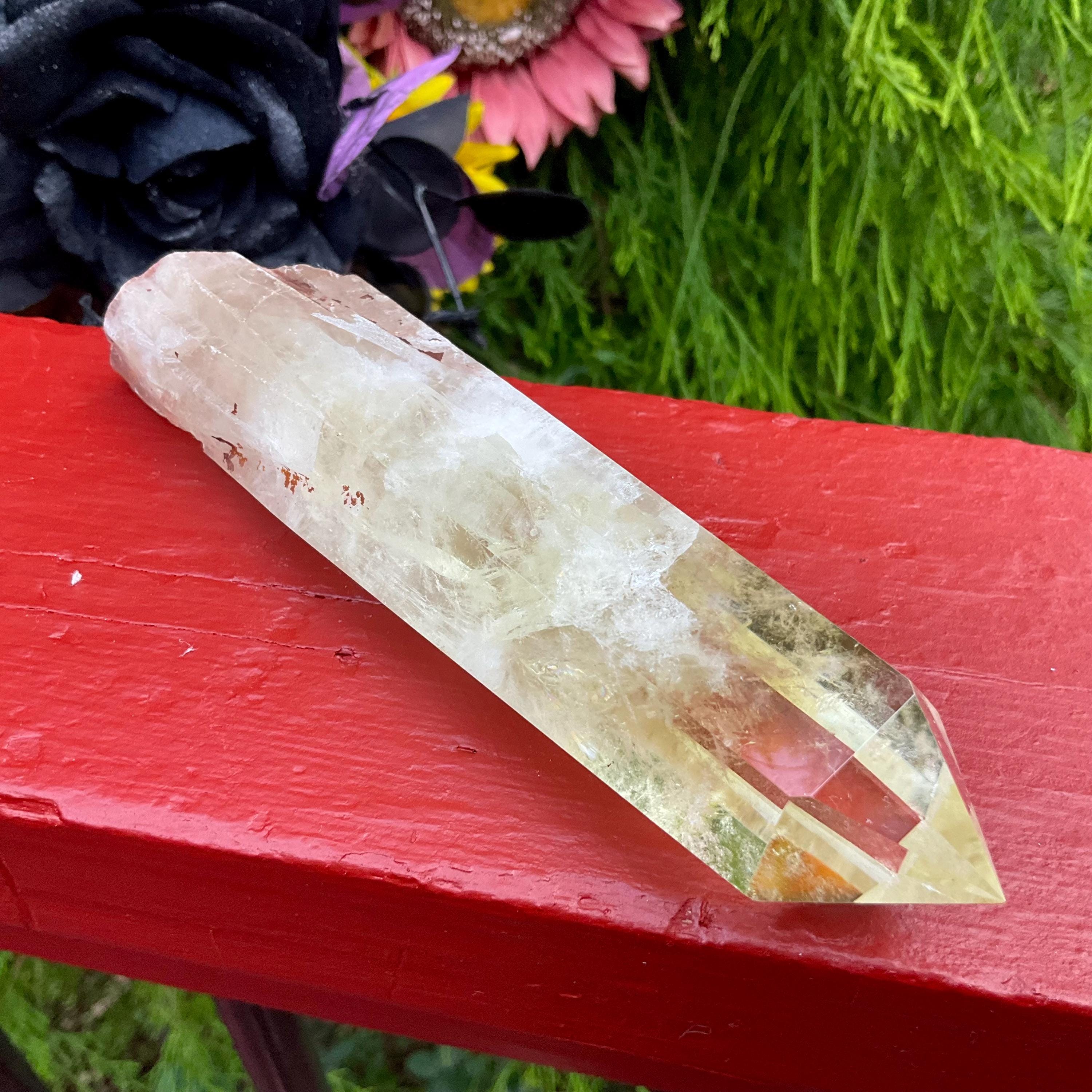 Citrine Quartz Crystal Wand ~ Large 6.8 oz. ~ 6" Long ~ High Altitude Himalayan Point ~ Clear Yellow Phantoms Sparkling Rainbow Inclusions