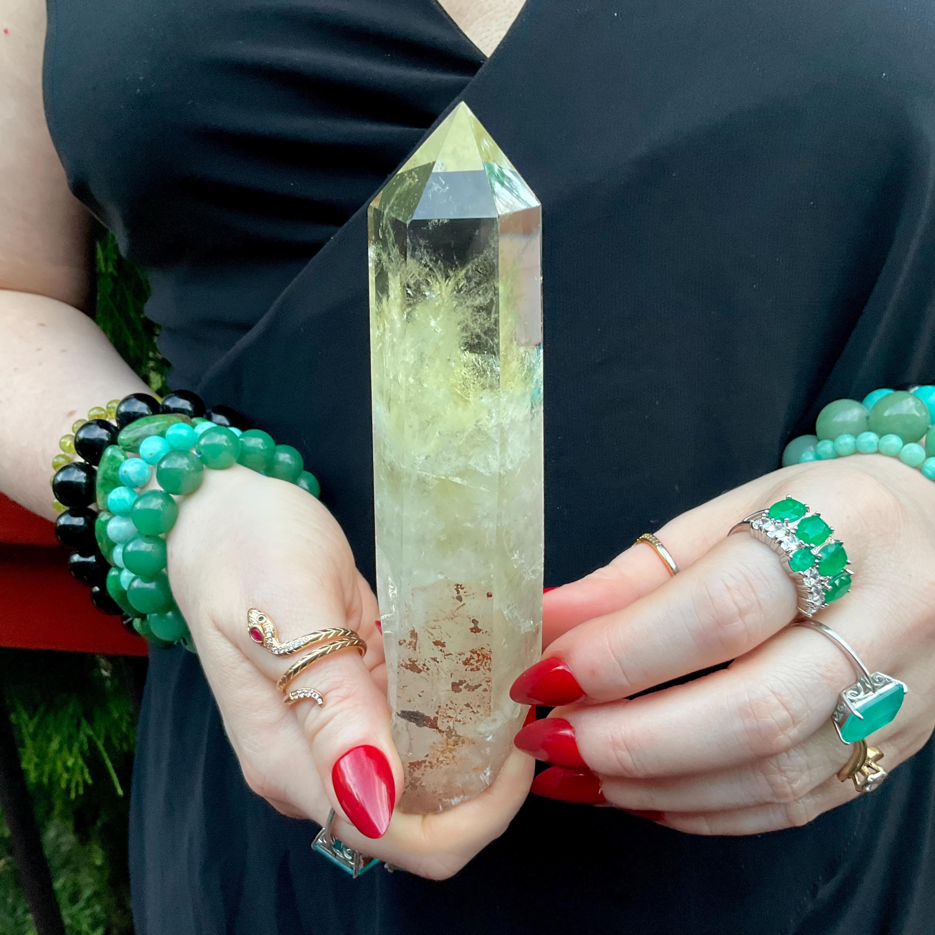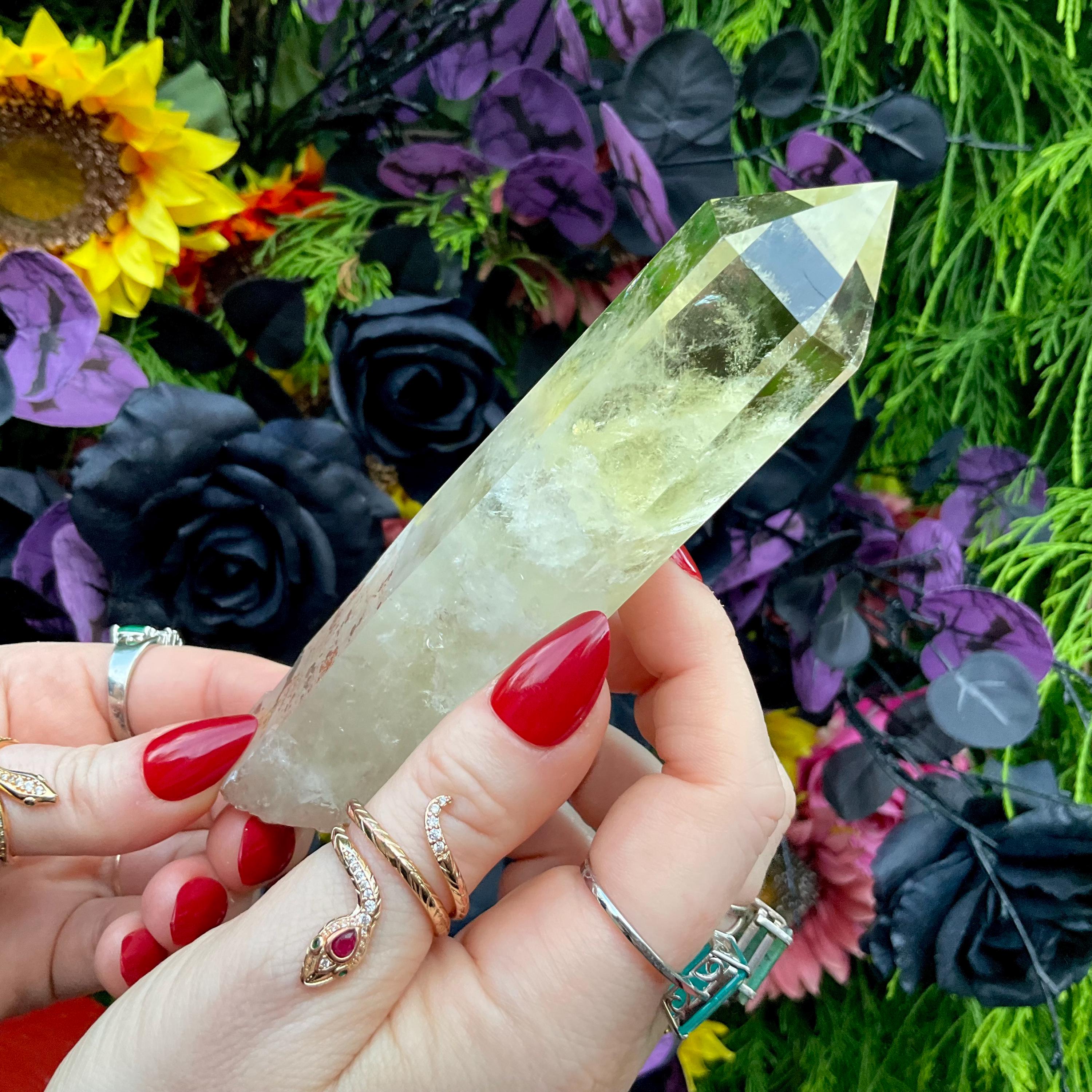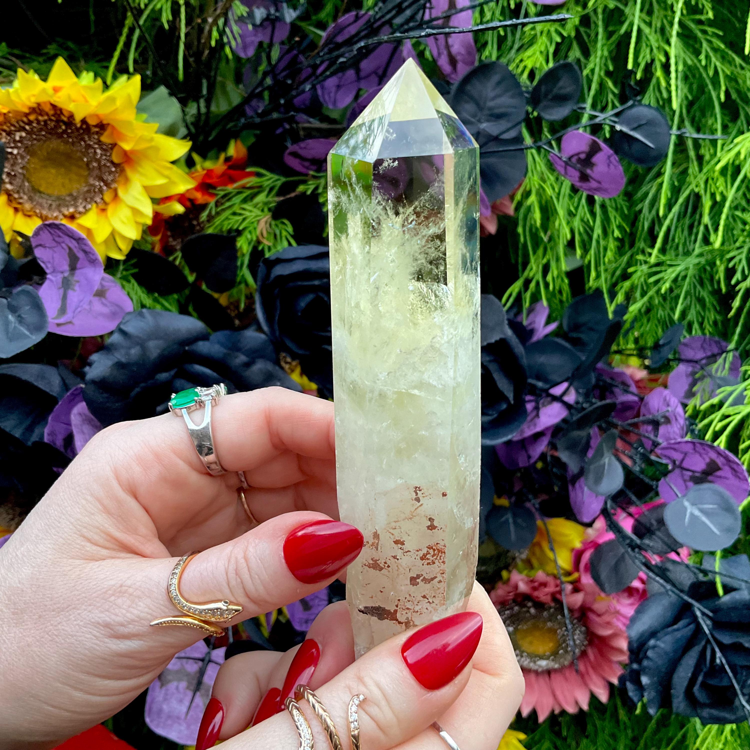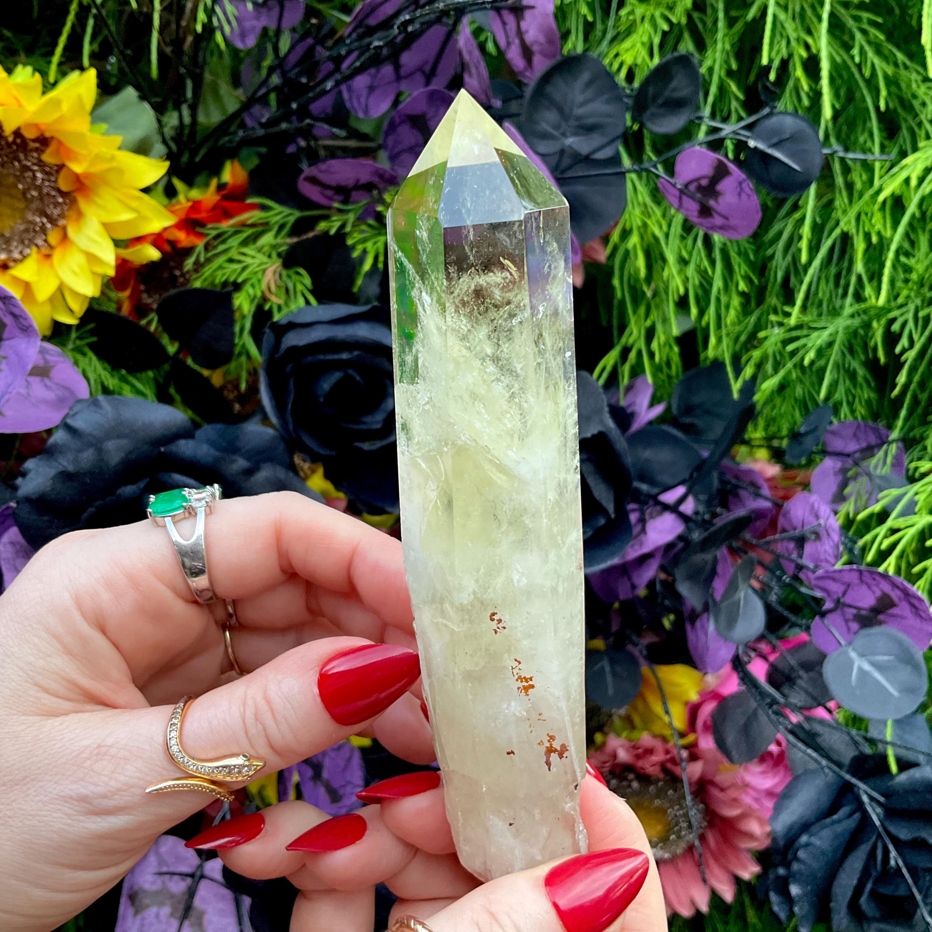Citrine Quartz Crystal Wand ~ Large 6.8 oz. ~ 6" Long ~ High Altitude Himalayan Point ~ Clear Yellow Phantoms Sparkling Rainbow Inclusions
