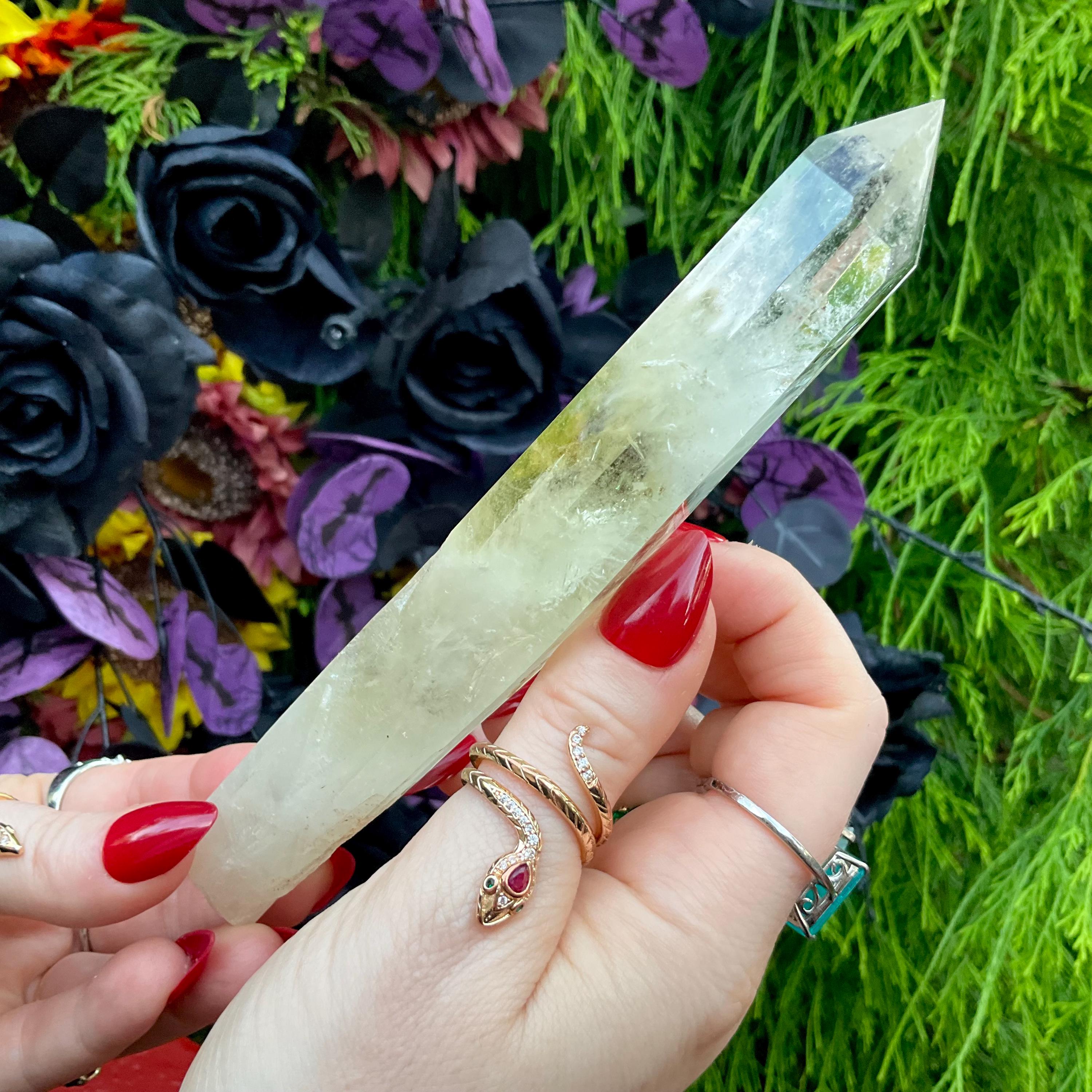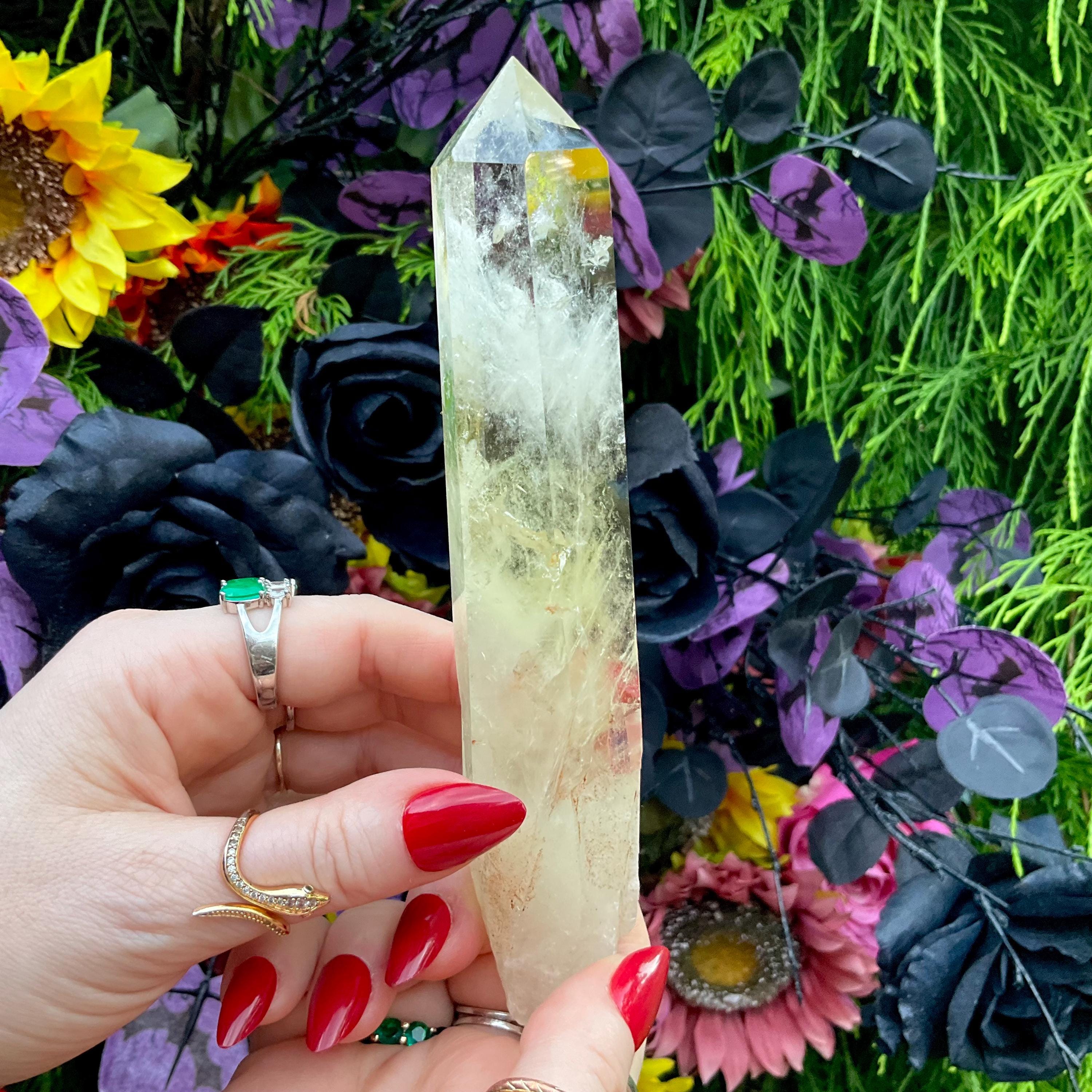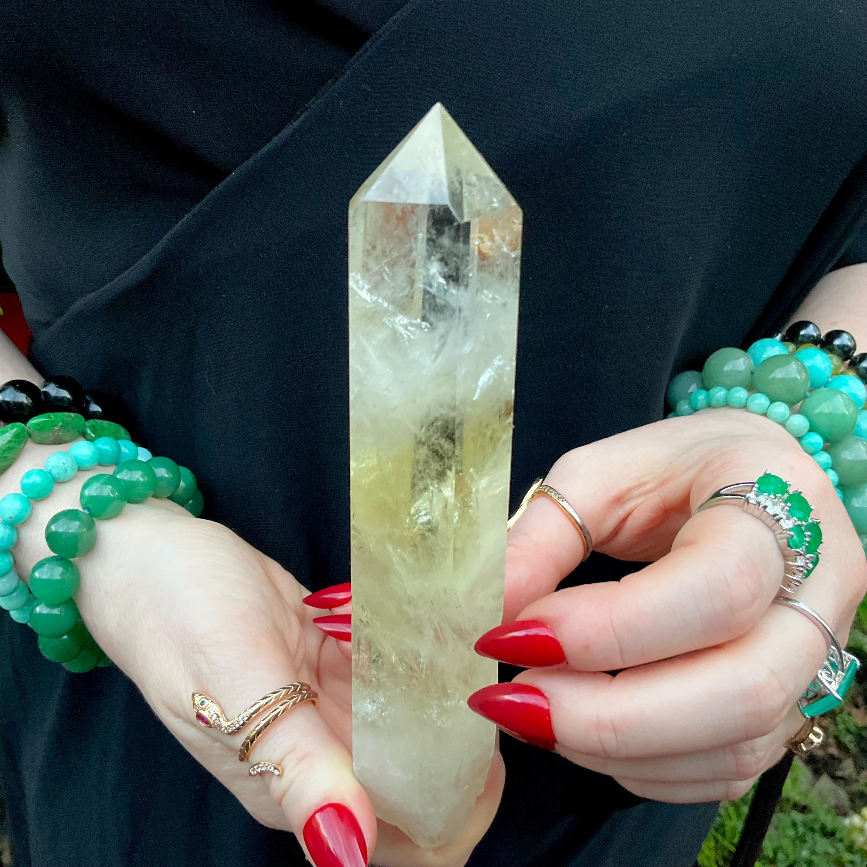 Citrine Quartz Crystal Wand ~ Large 6.3 oz. ~ 6 1/2" Long ~ High Altitude Himalayan Point ~ Clear & Yellow Phantoms ~ Rainbow Inclusions