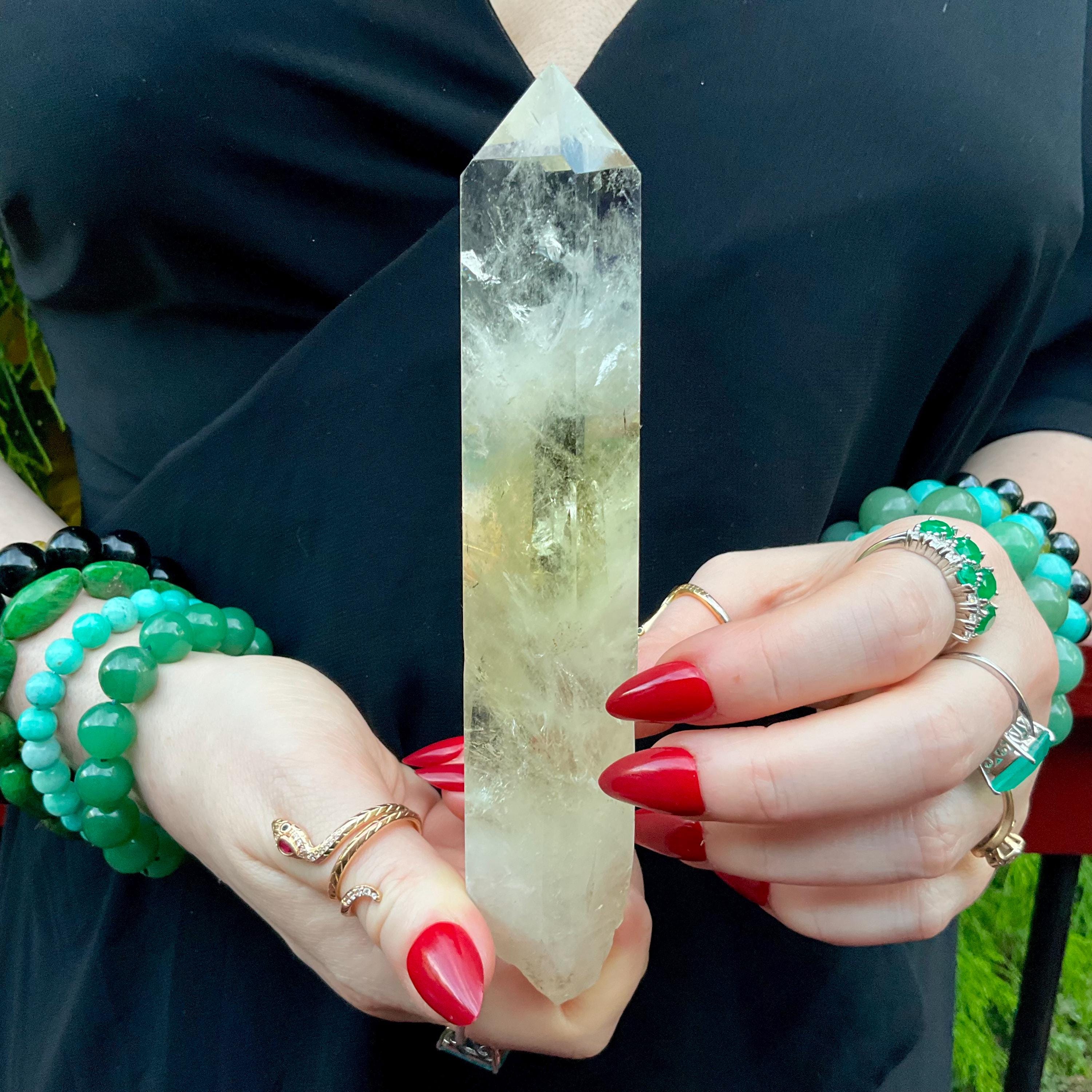 This wand fits in your hand so nicely, with a crystal-clear point, it is hand polished to perfection with a perfect point.