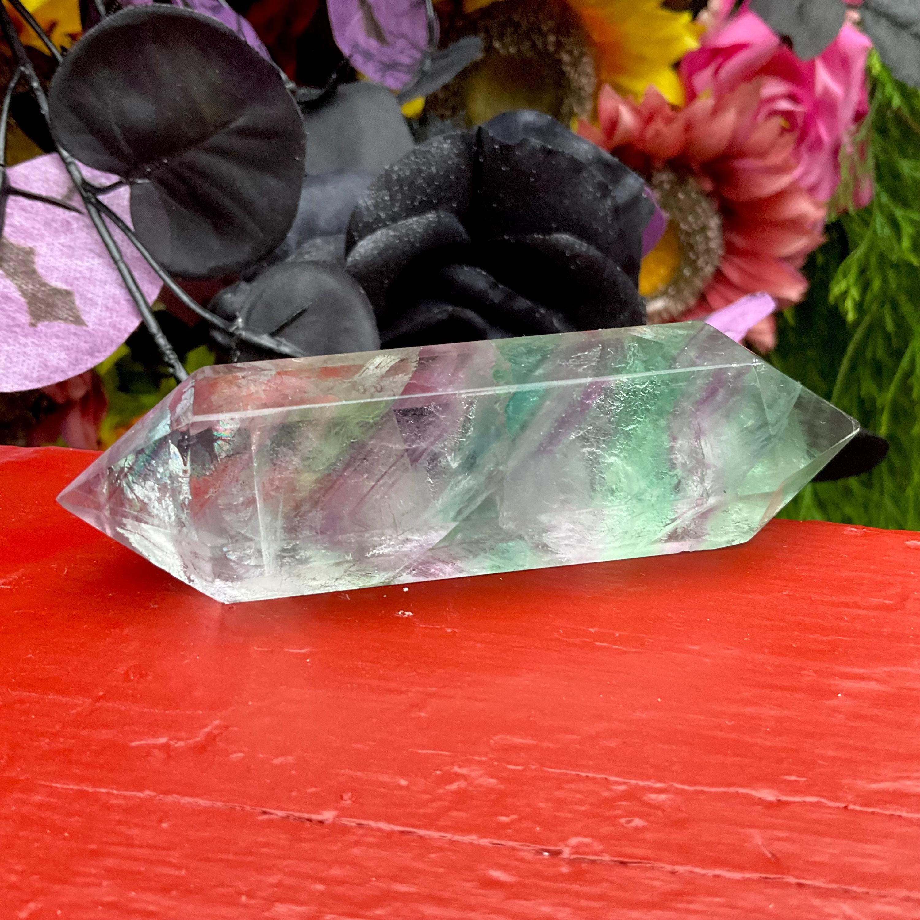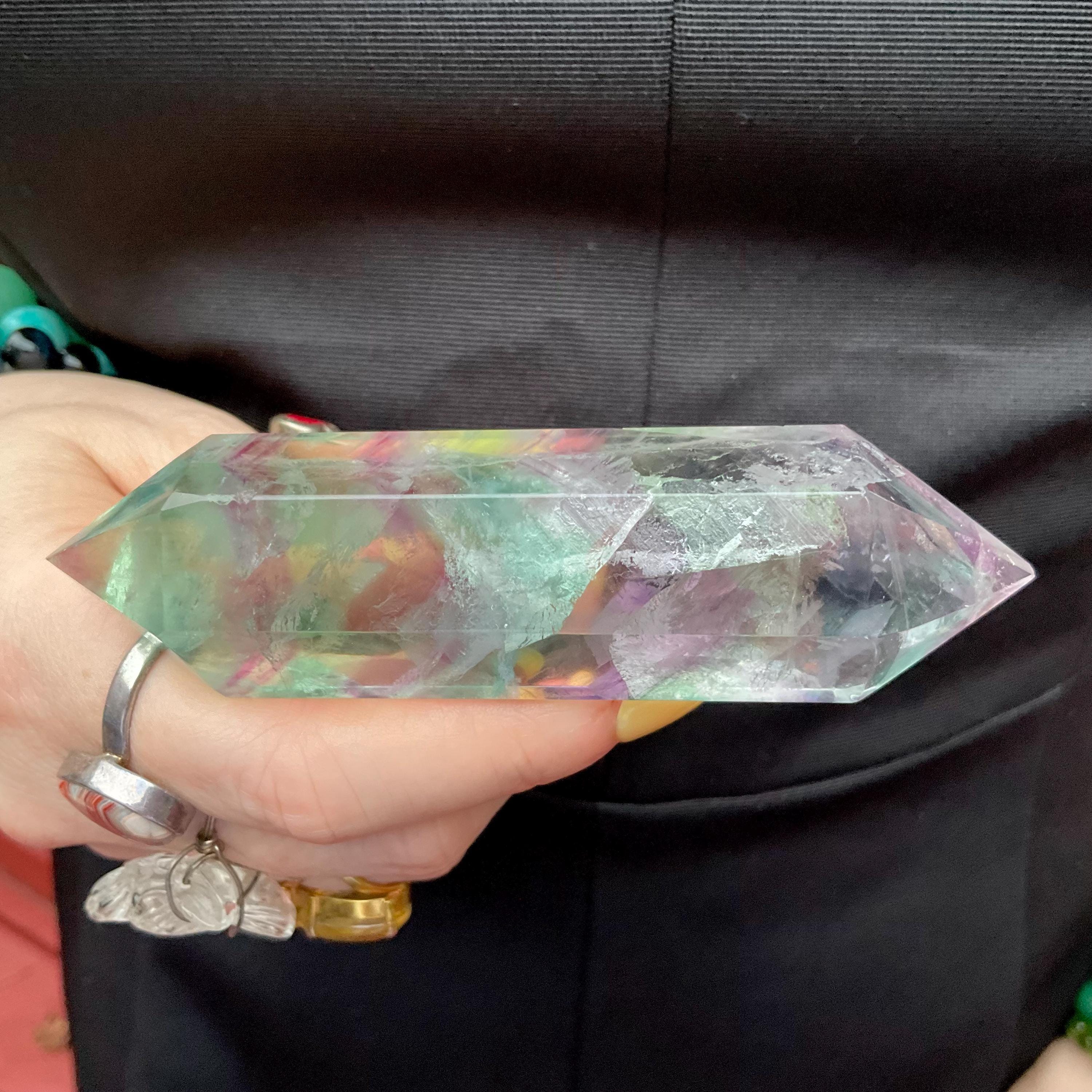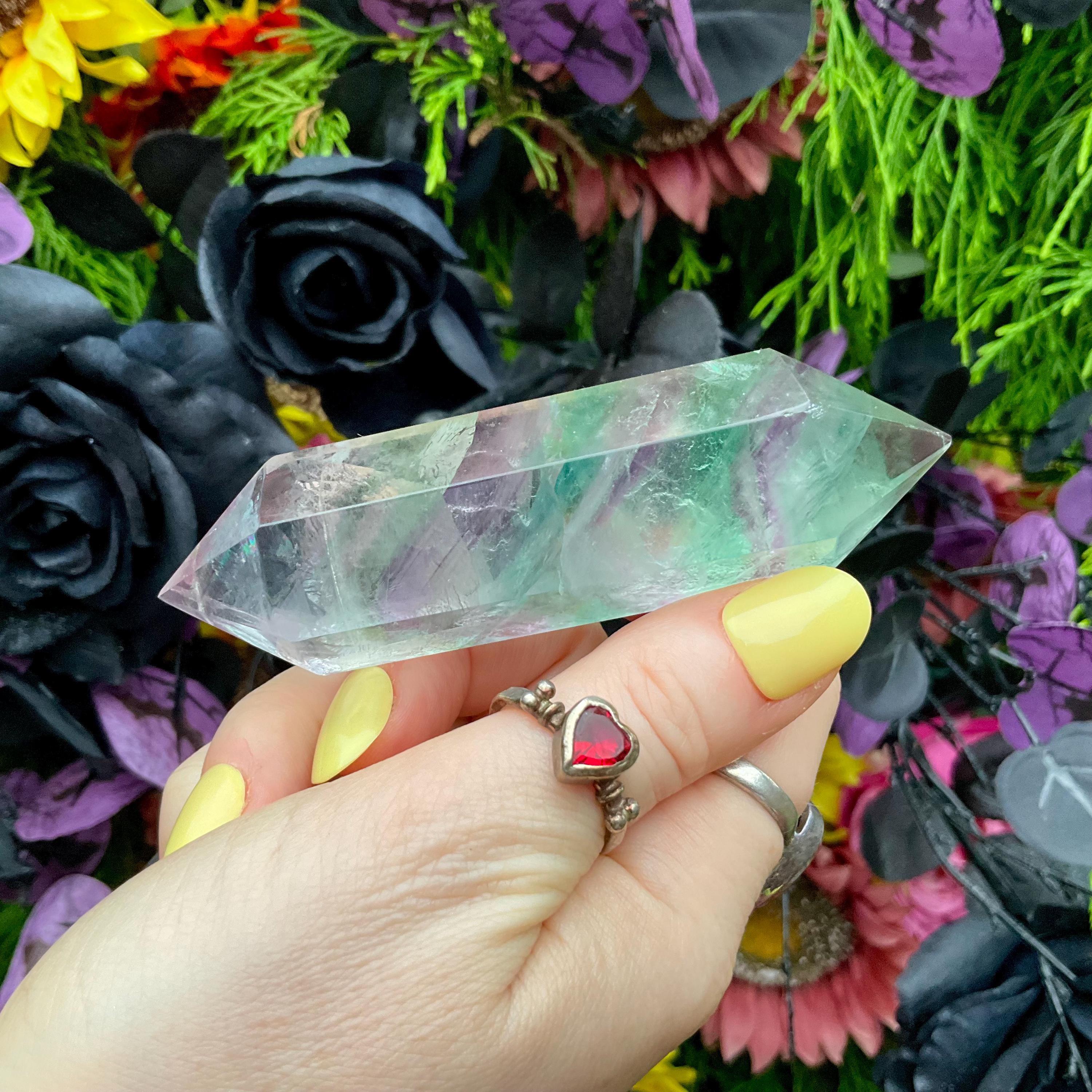 Rainbow Fluorite Double Terminated Wand ~ Large 4.2 oz. ~ 4" Long ~ Clear, Green, Purple ~ Fast & Free Shipping, USA + Global Shipping