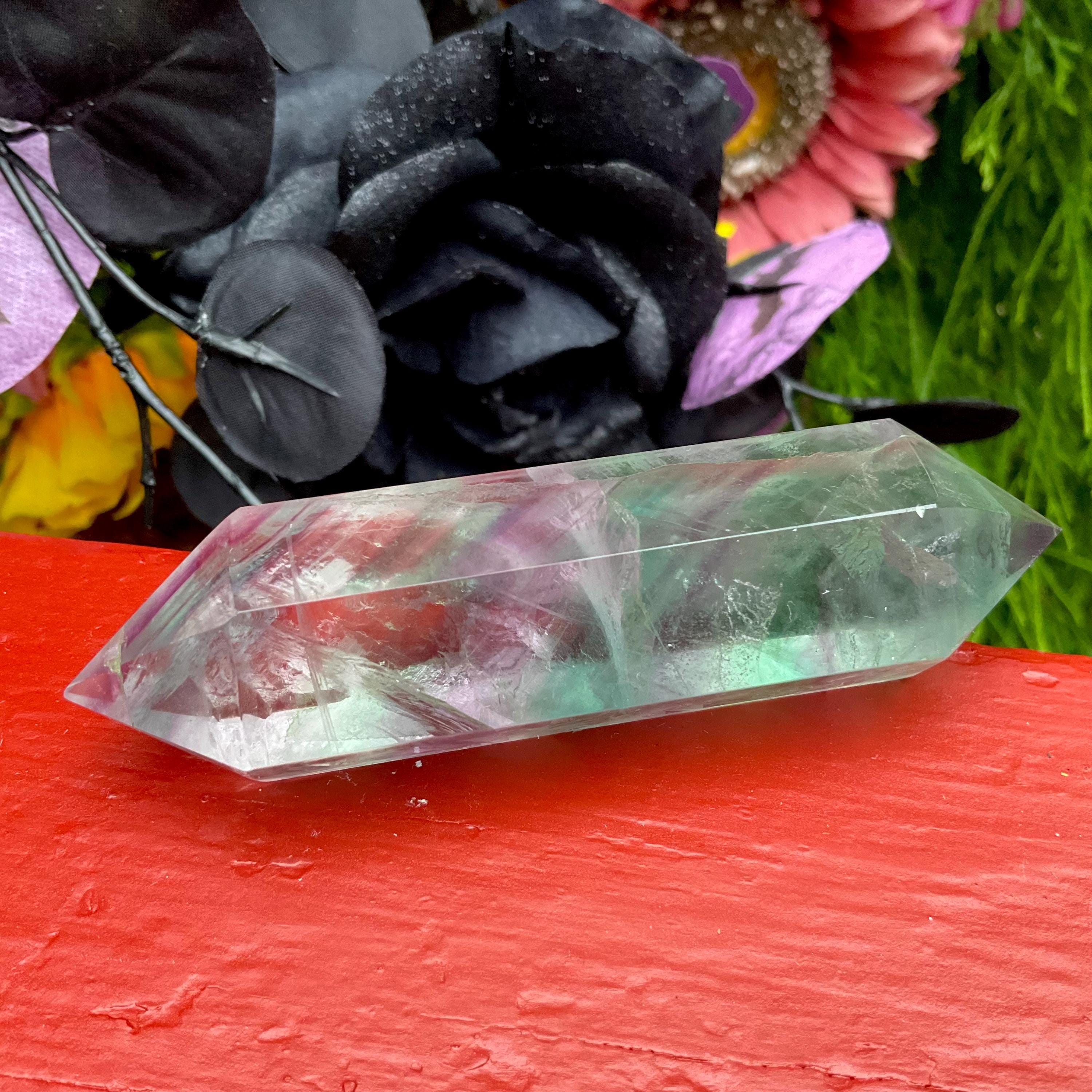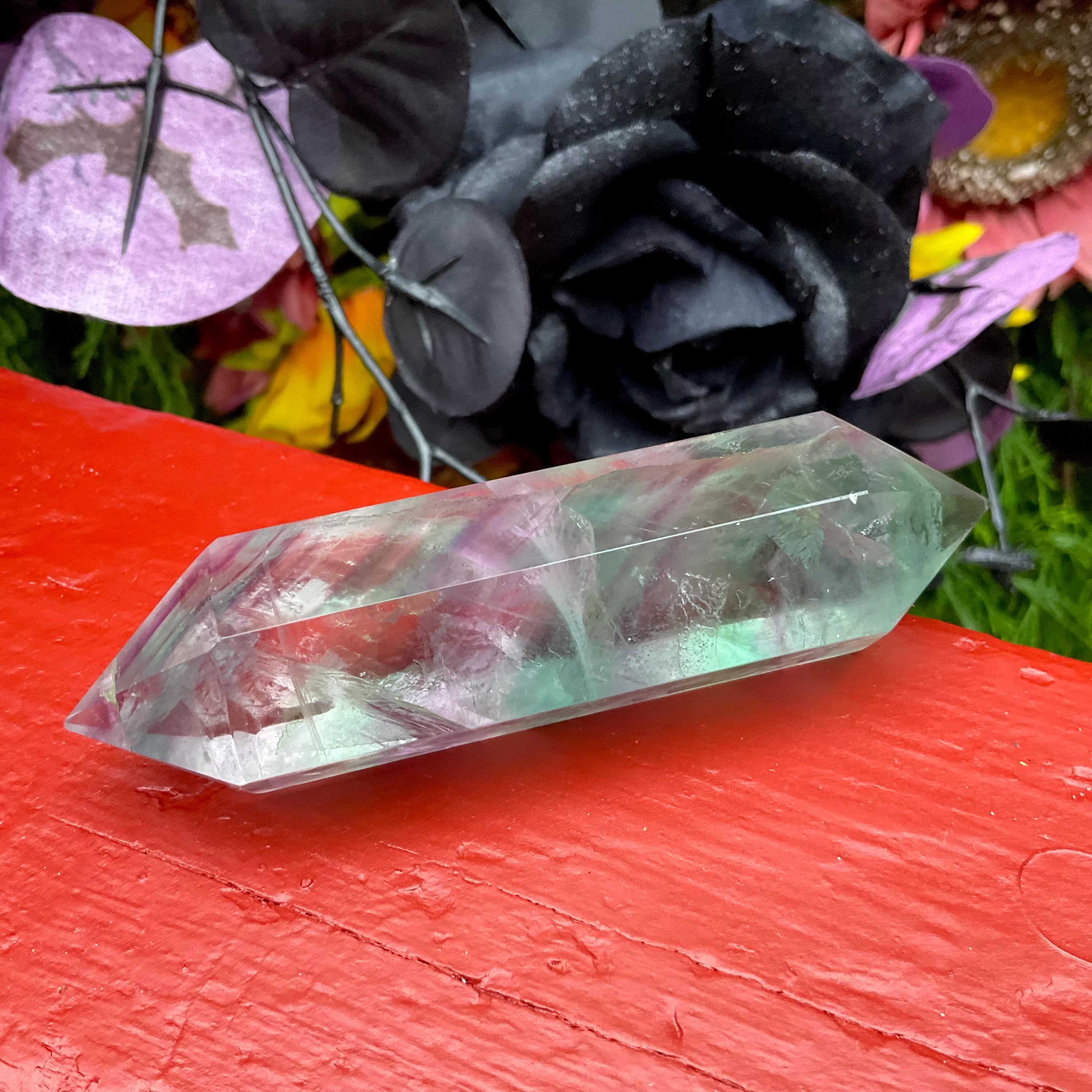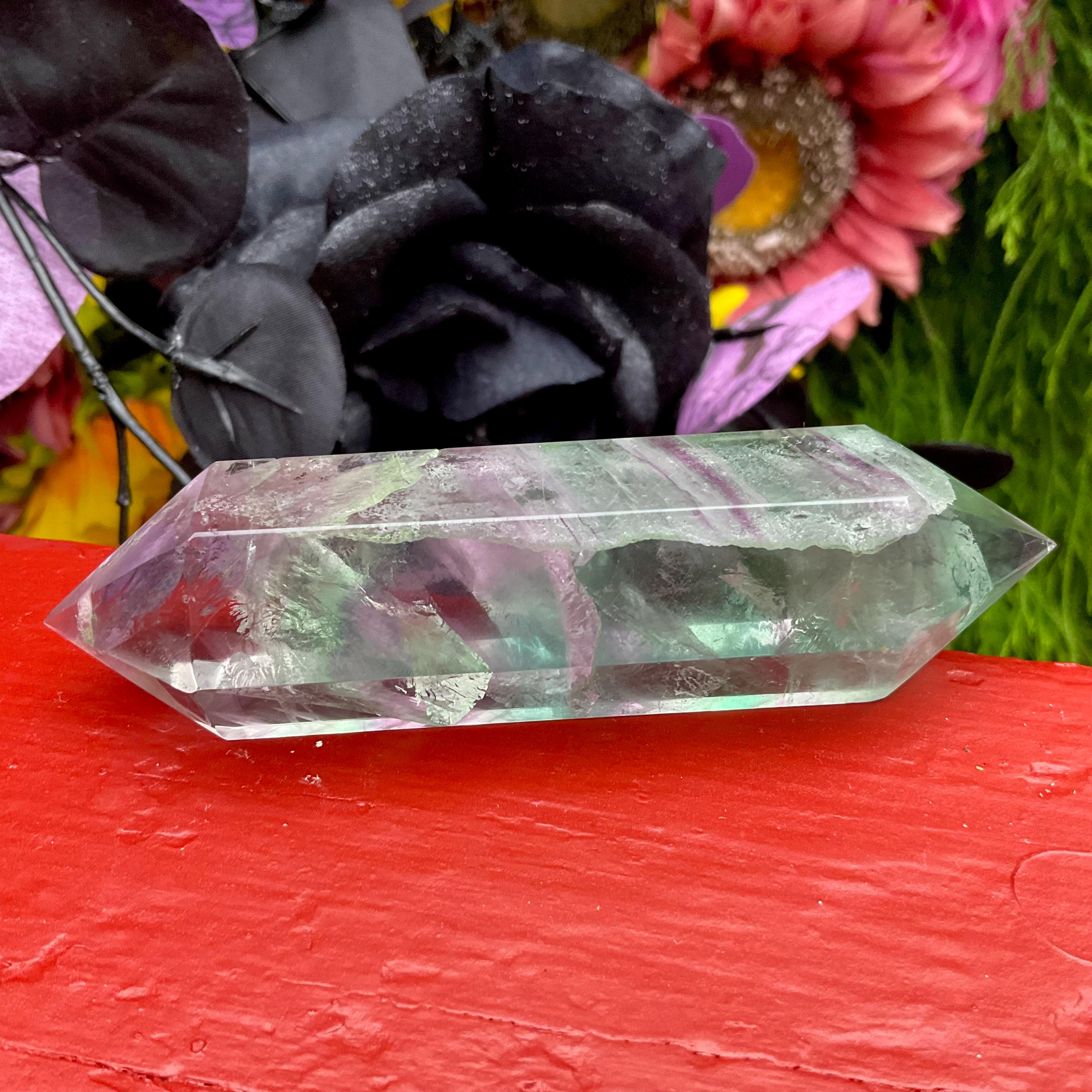 Rainbow Fluorite Double Terminated Wand ~ Large 4.2 oz. ~ 4" Long ~ Clear, Green, Purple ~ Fast & Free Shipping, USA + Global Shipping