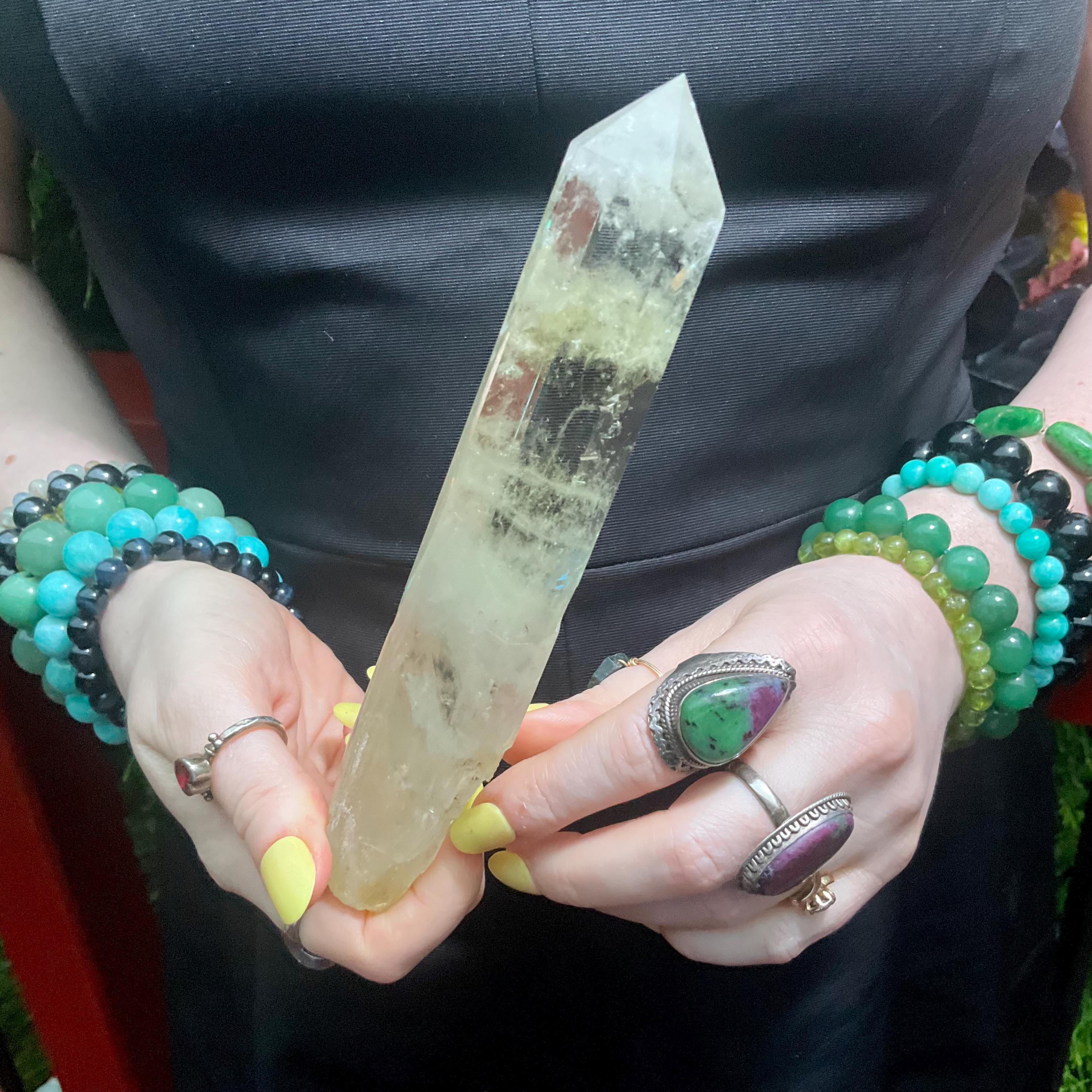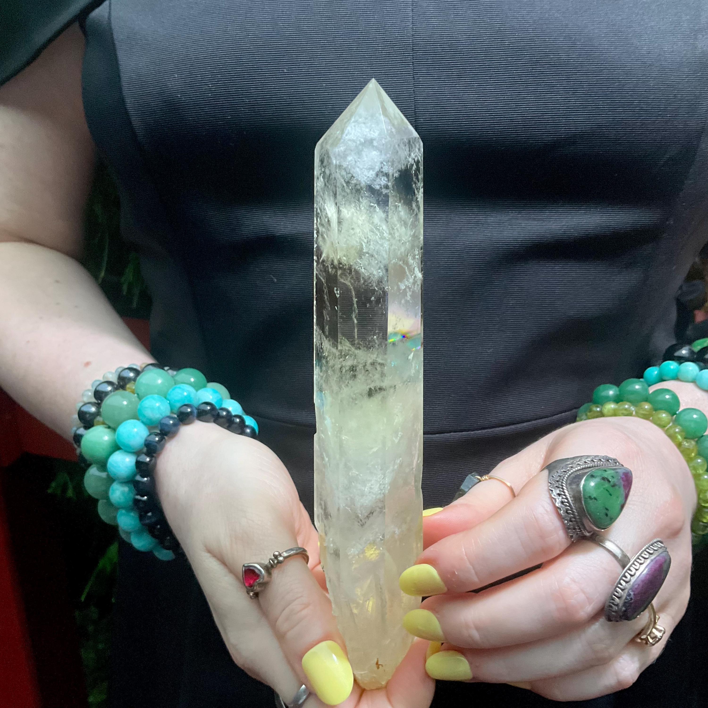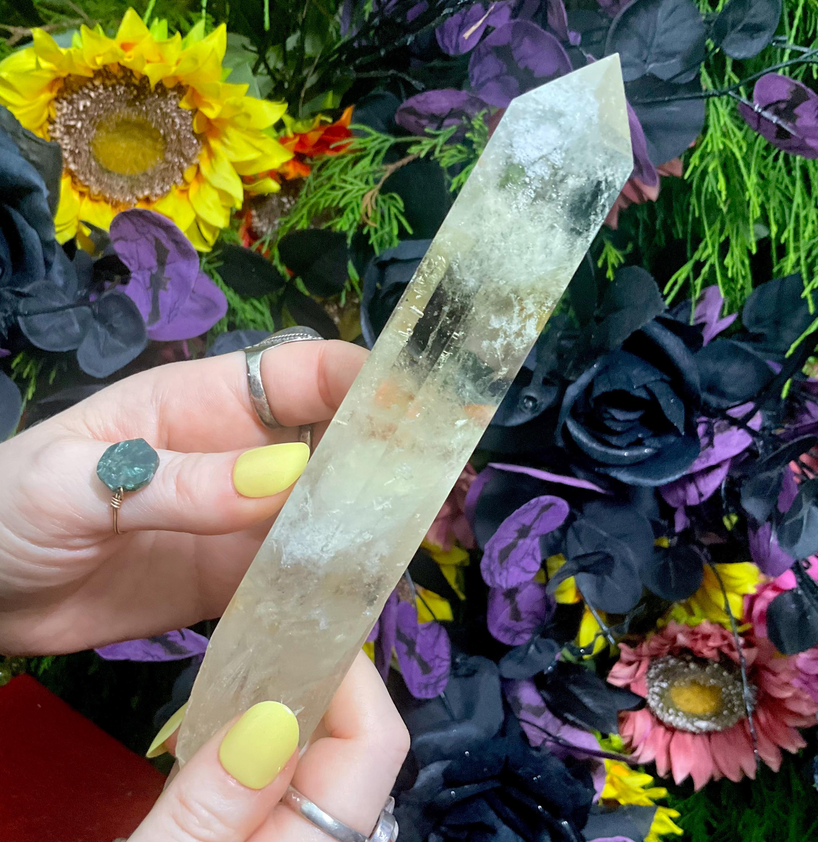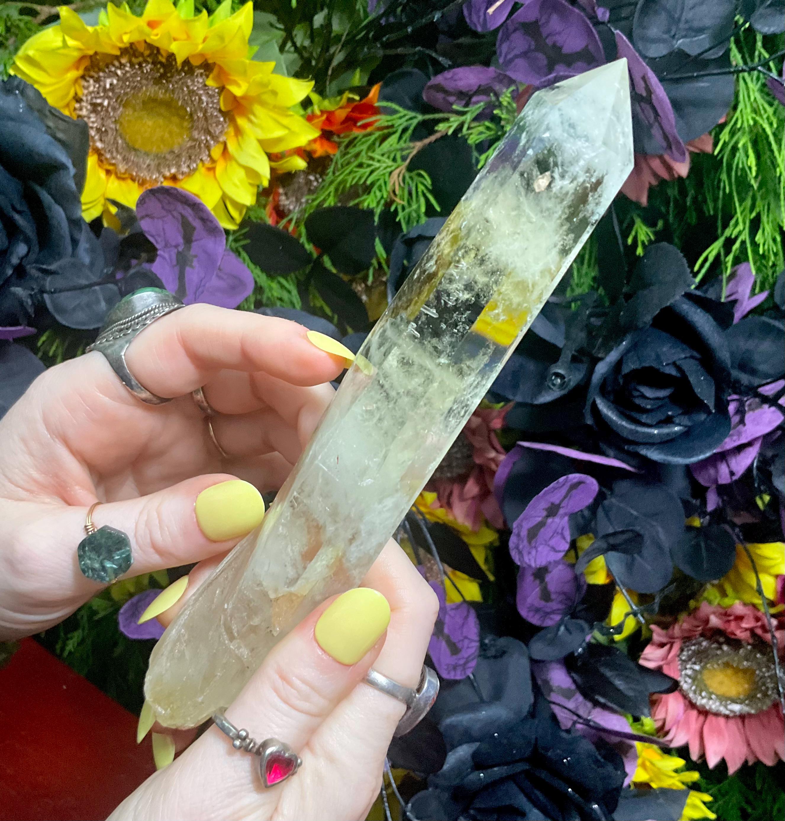 Citrine Quartz Large 8 oz. Wand ~ 7 1/2" Long ~ High Altitude Himalayan Crystal Point ~ Clear Yellow Phantoms Sparkling Rainbow Inclusions