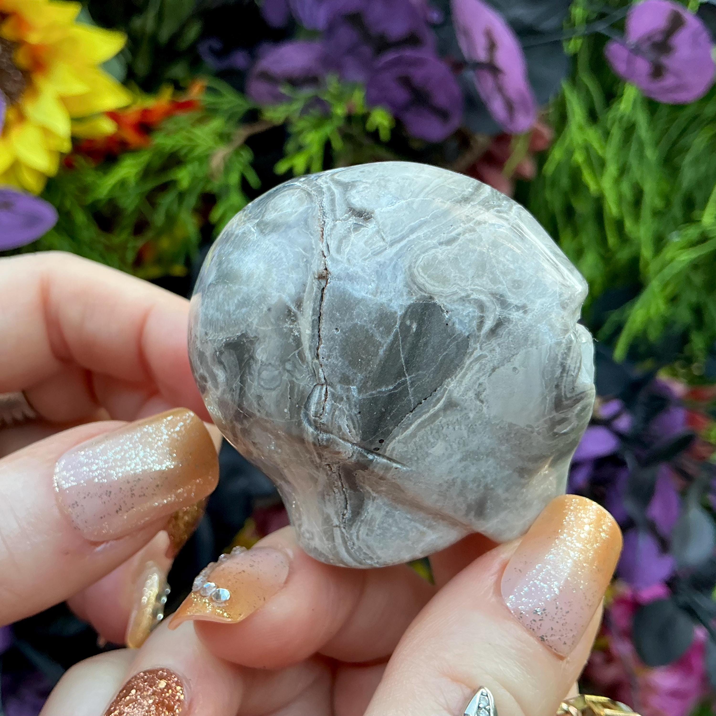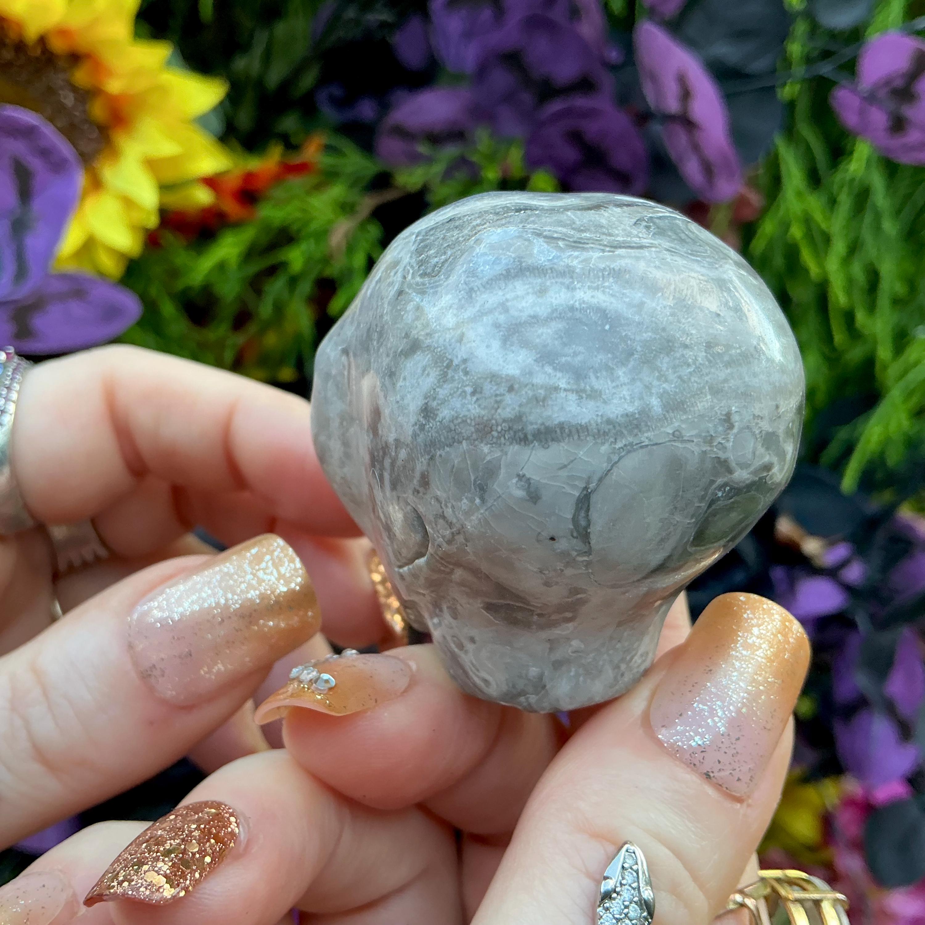 Jasper Emperor Grey Crystal Alien Mini Skull Large 6 oz. ~ 2" Long ~ One-of-a-Kind Carving ~ High Quality Hand Carved ~ Fast Shipping
