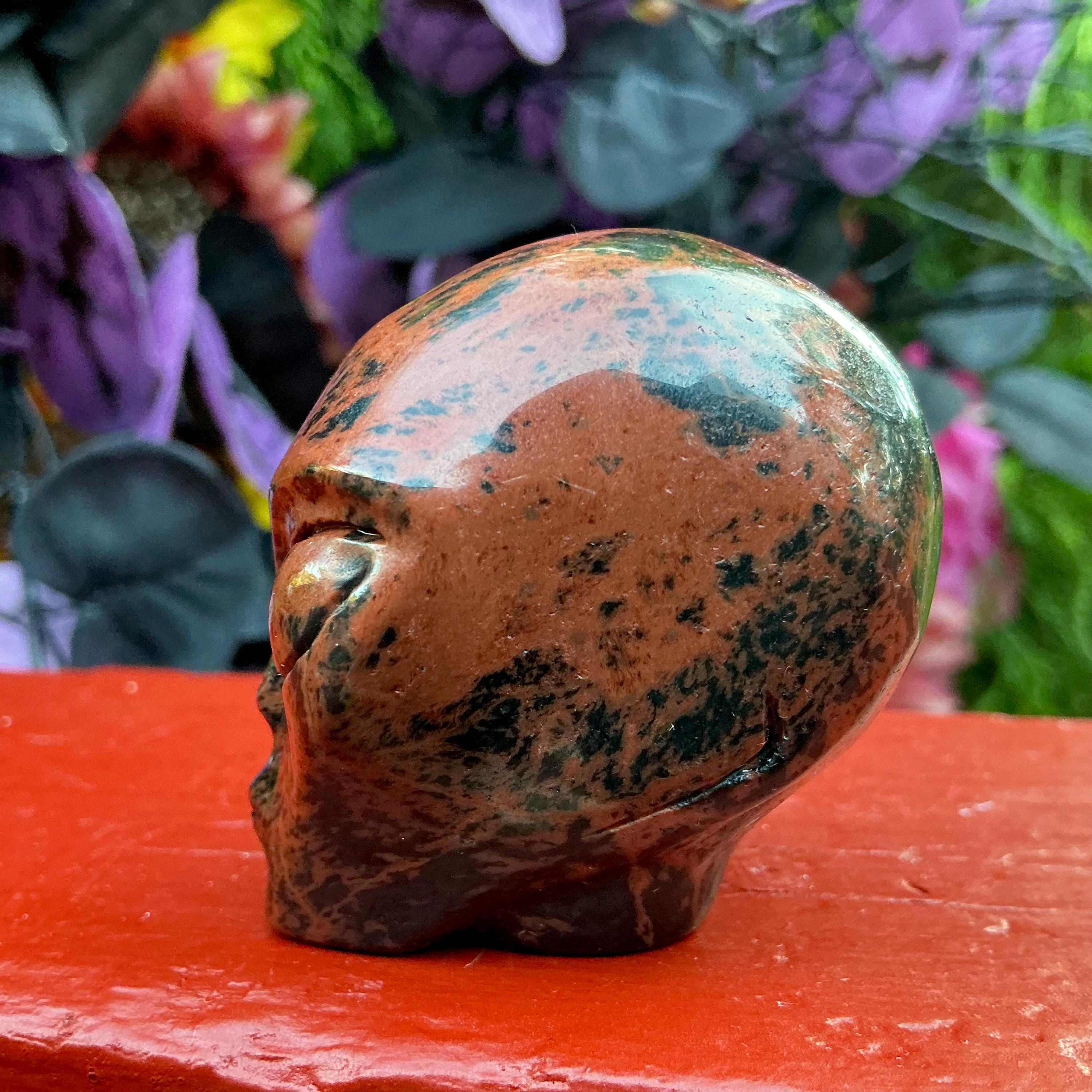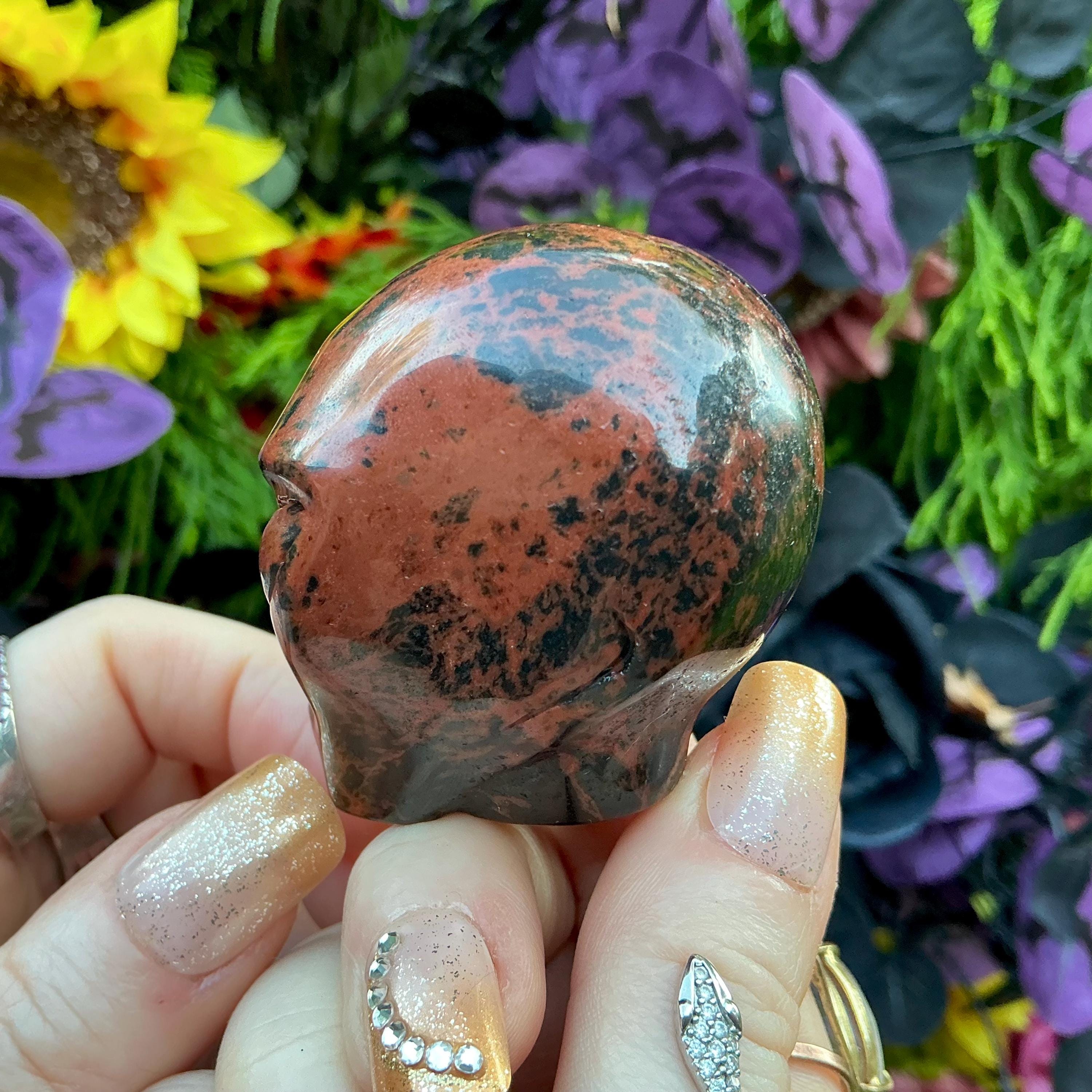 Mahogany Obsidian Mini Alien Skull 5 oz. ~ 2" Tall ~ Swirling Red Brown Black Colors ~ Hand Carved Crystal Sculpture ~ Fast Shipping