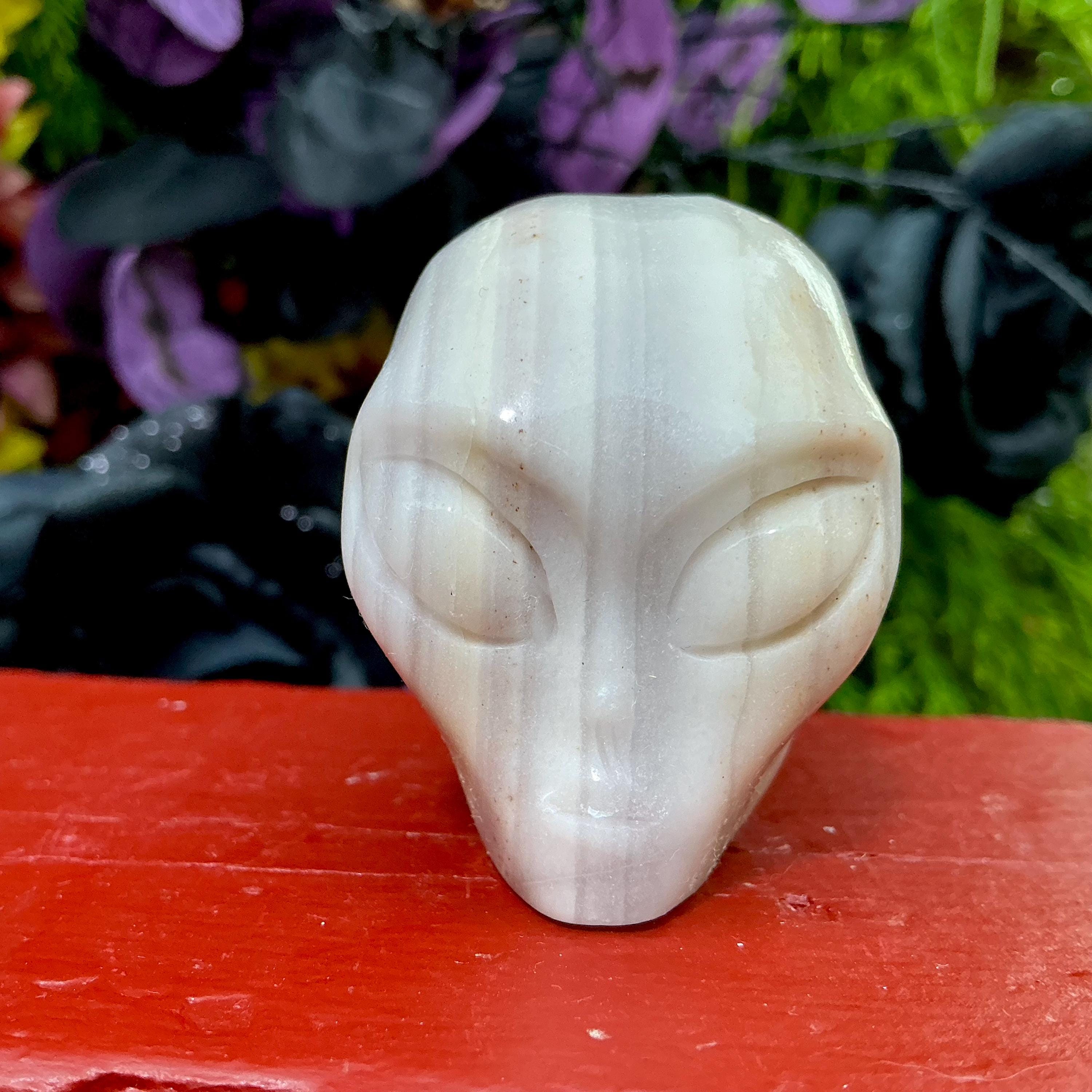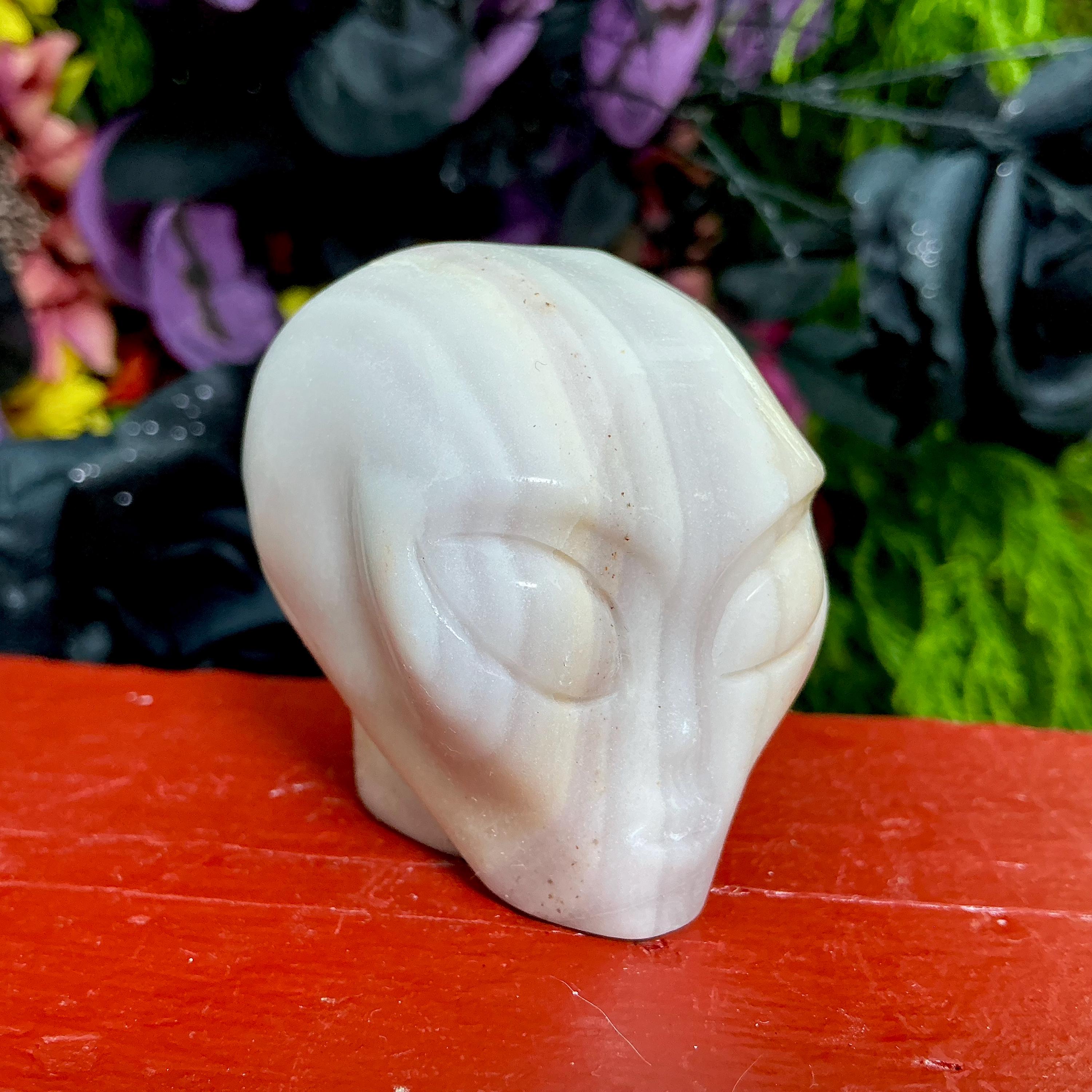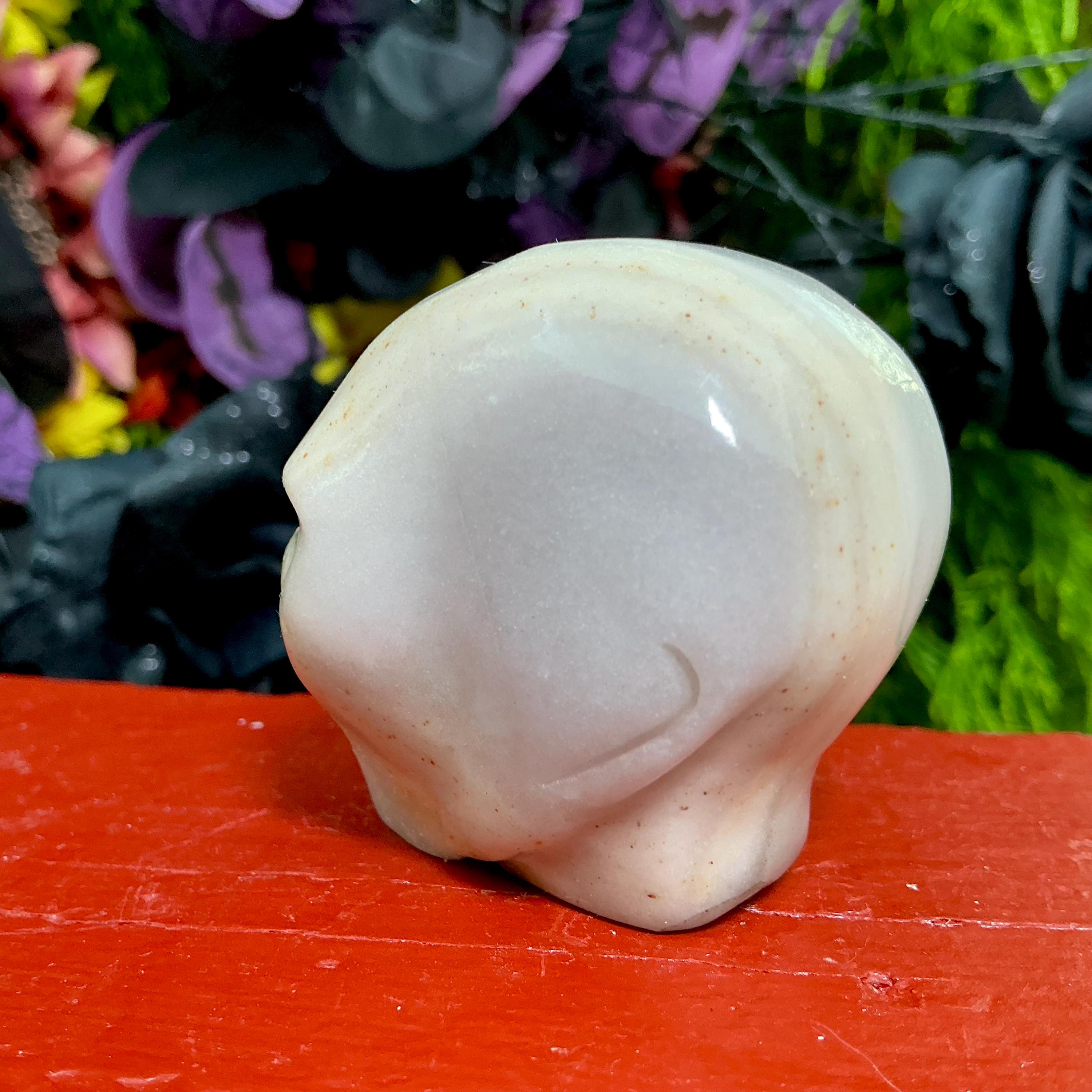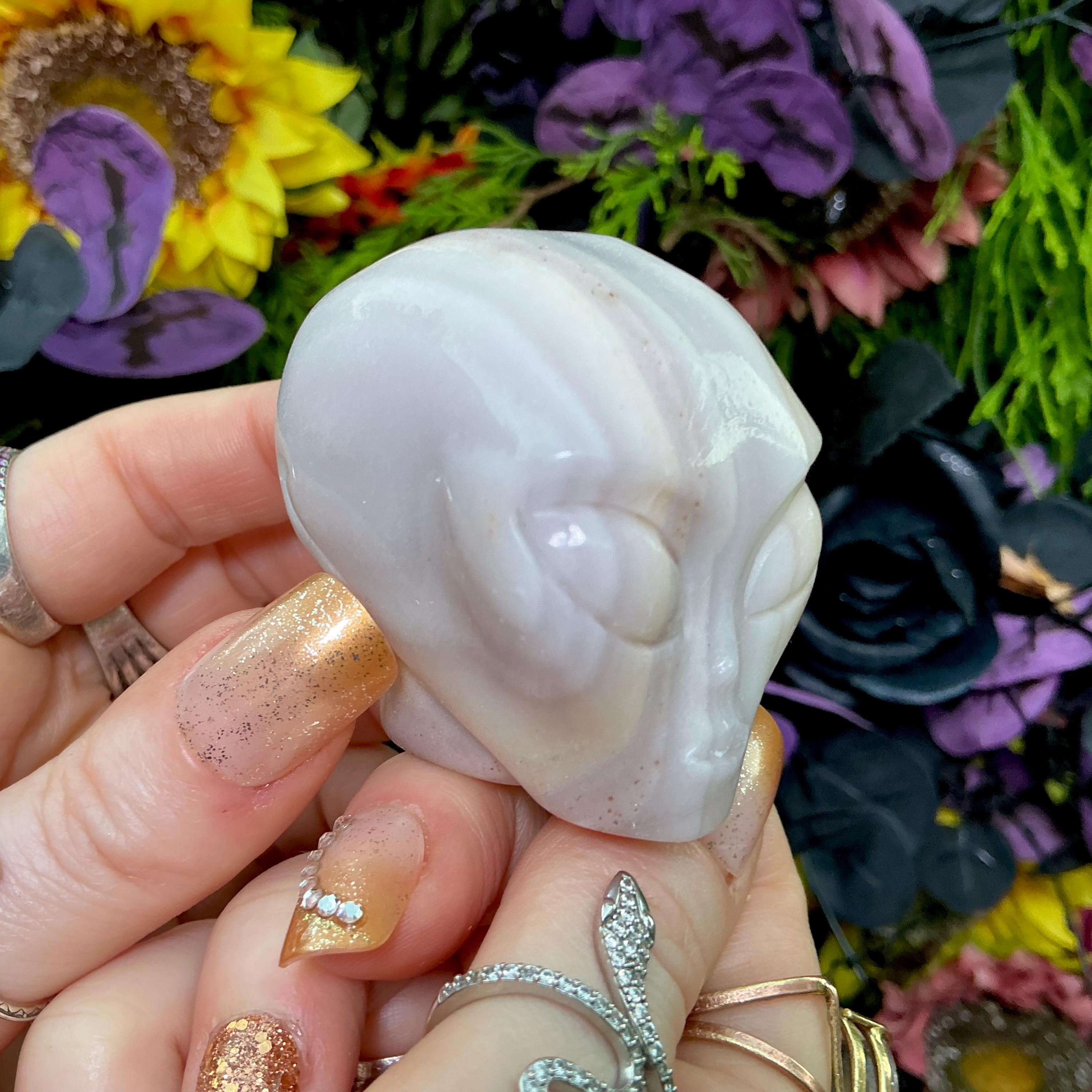This beautiful Chalcedony Alien skull is a self-standing making it perfect for you display or your altar.