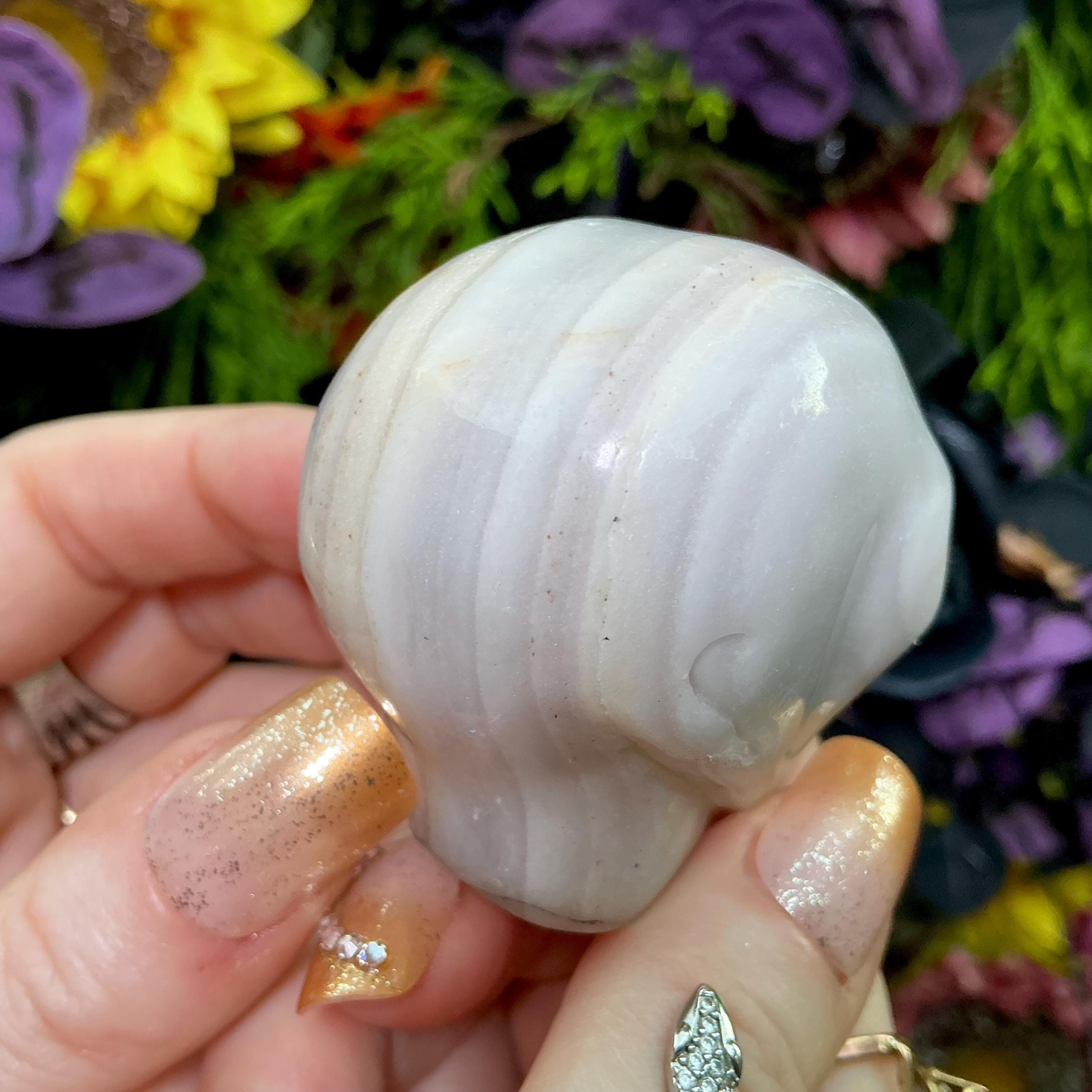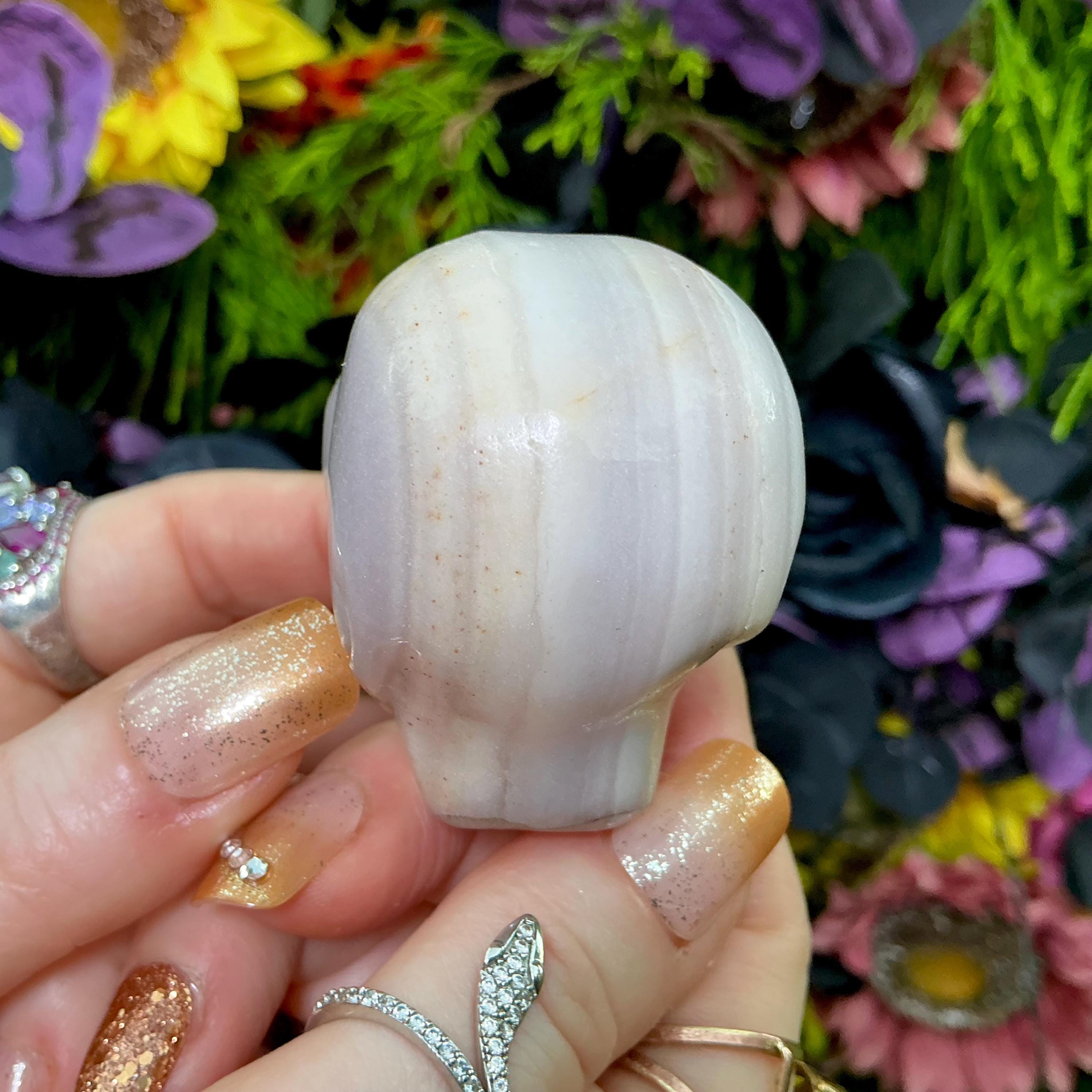 I just love this Chalcedony Alien Mini skull, and the Sparkling blue & white banded colors combine so naturally into the millions of years old mineral.
