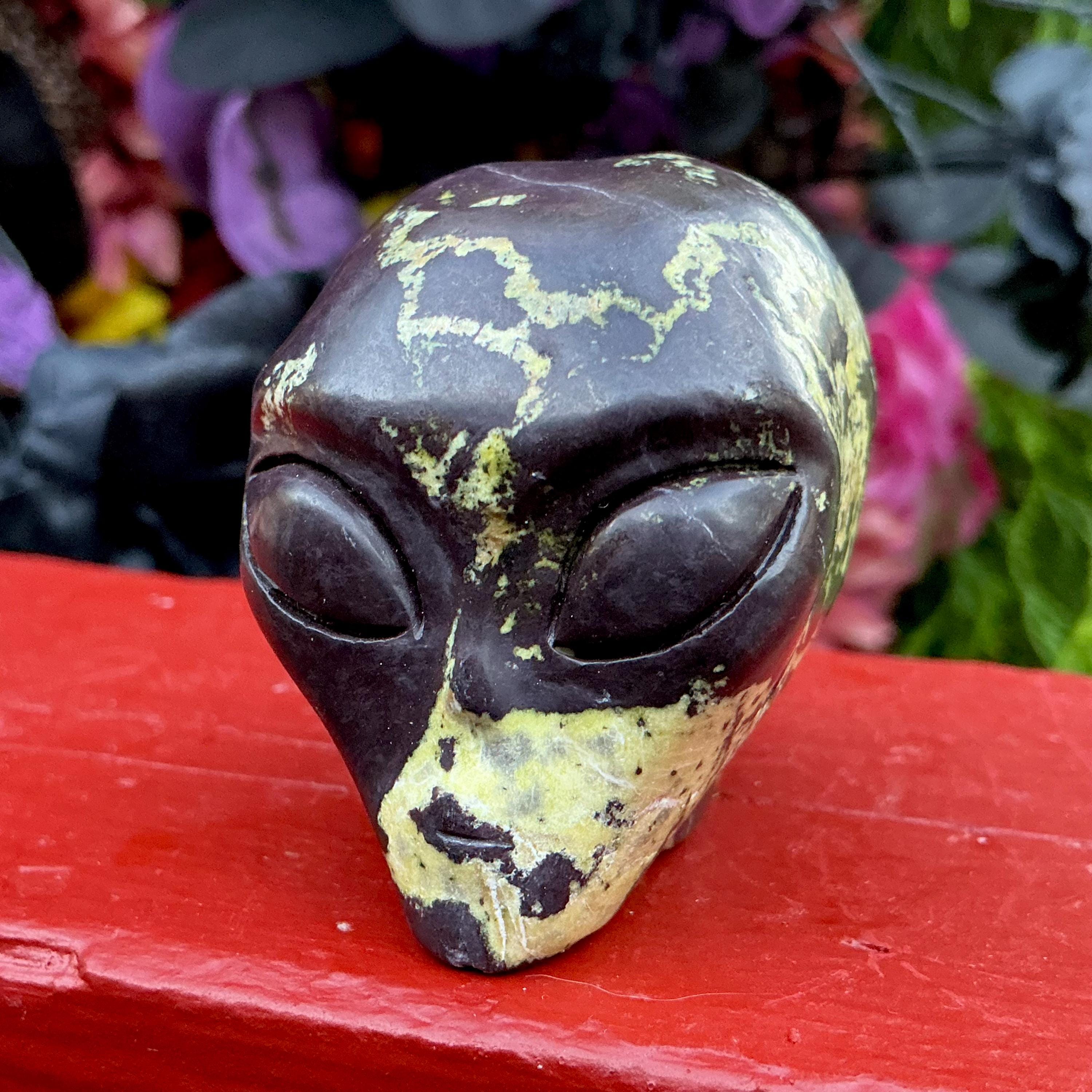 This Gorgeous Swirling Electric Green Jasper Alien Skull Carved Crystal Sculpture is perfection in every way.