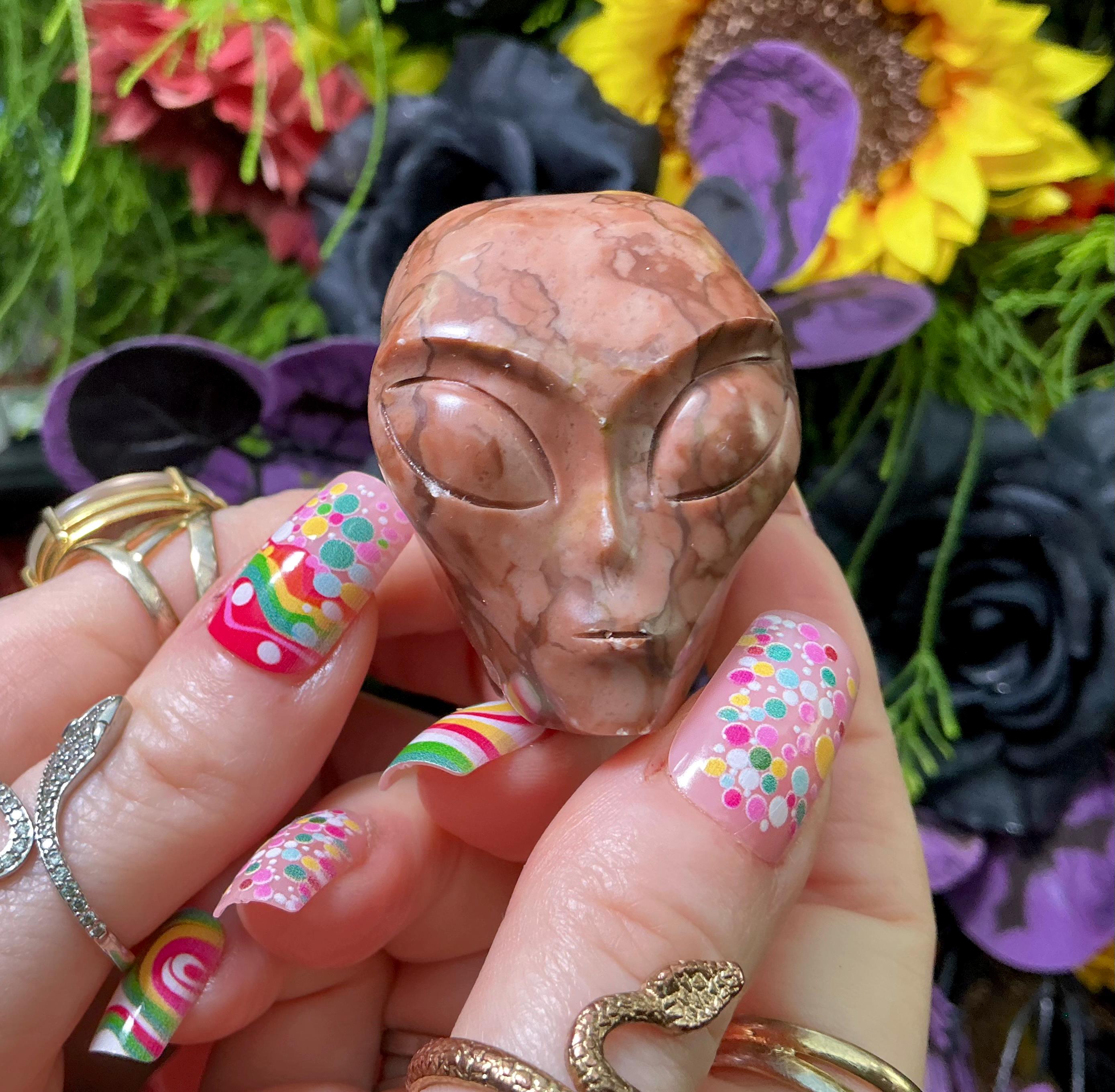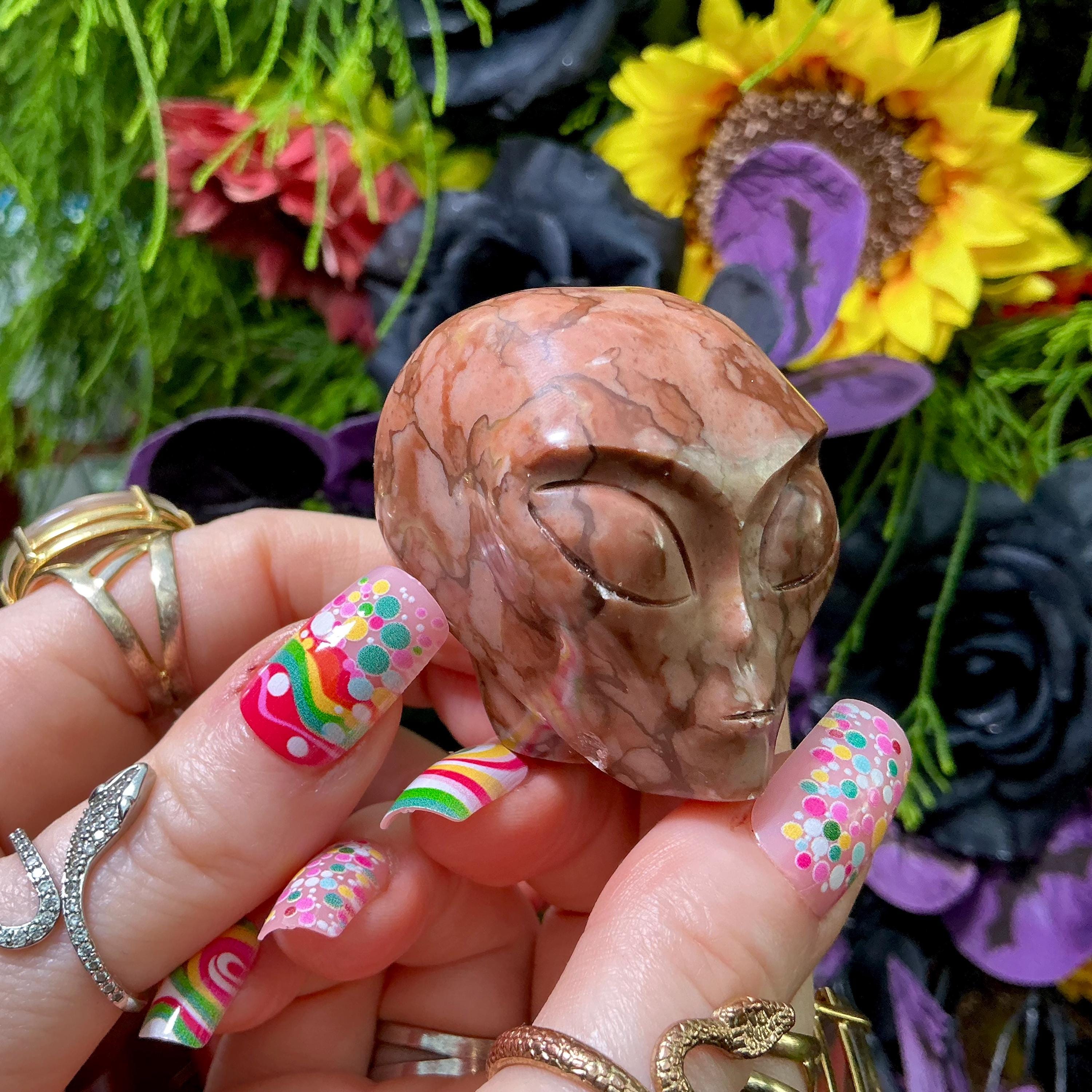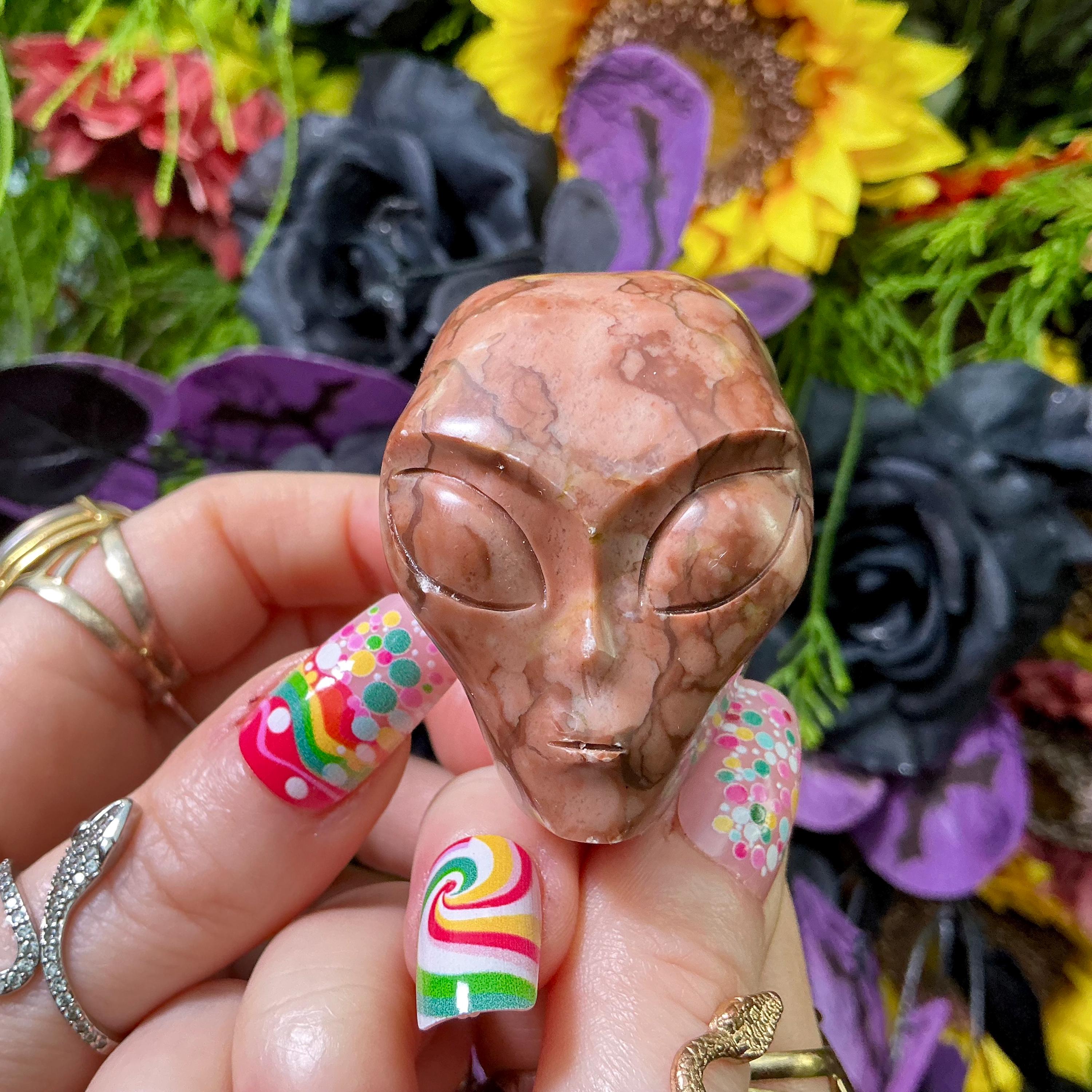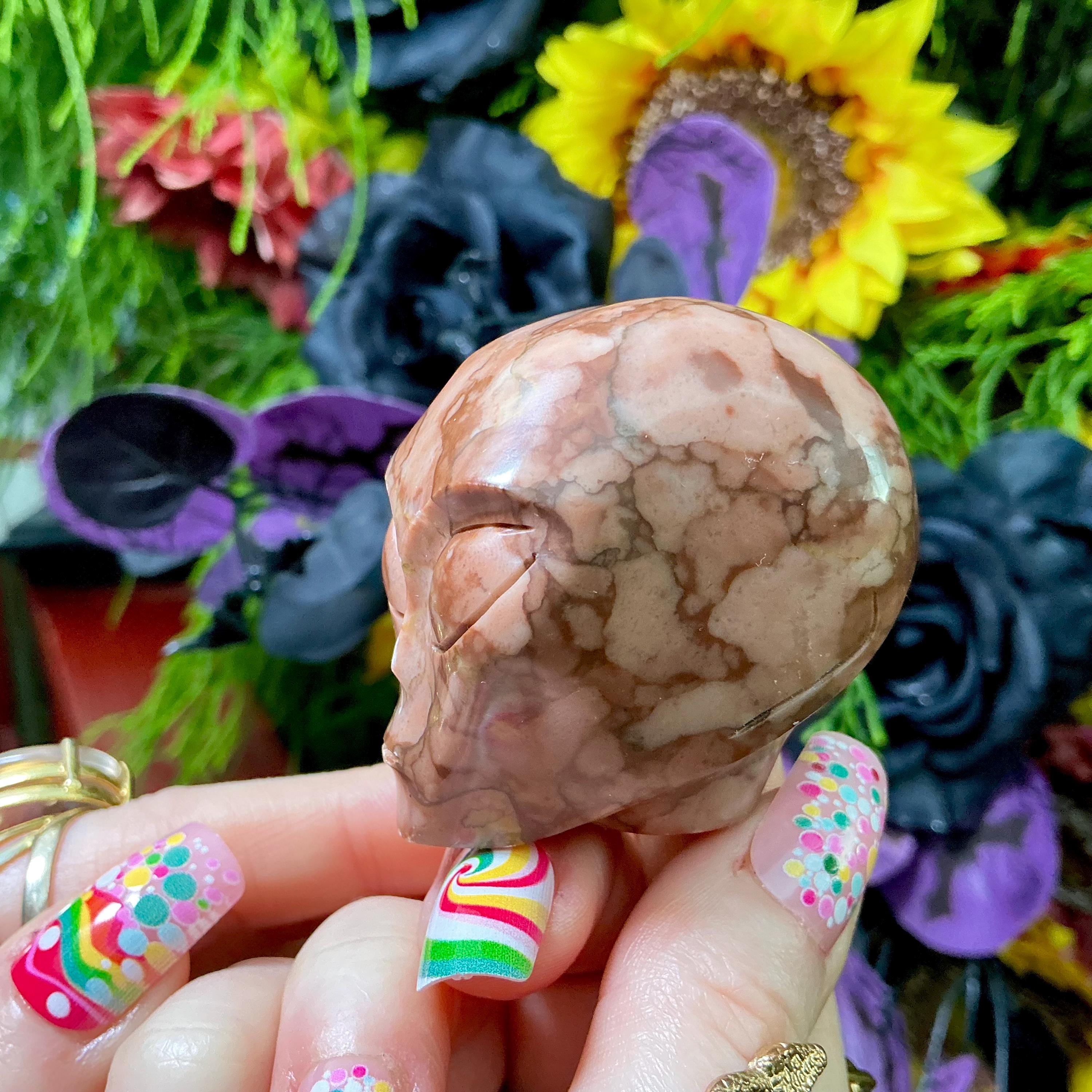 What makes this Picture Jasper Mini Alien Skull so unique is the original one-of-a-kind carving, this is a one-of-a-kind treasure.