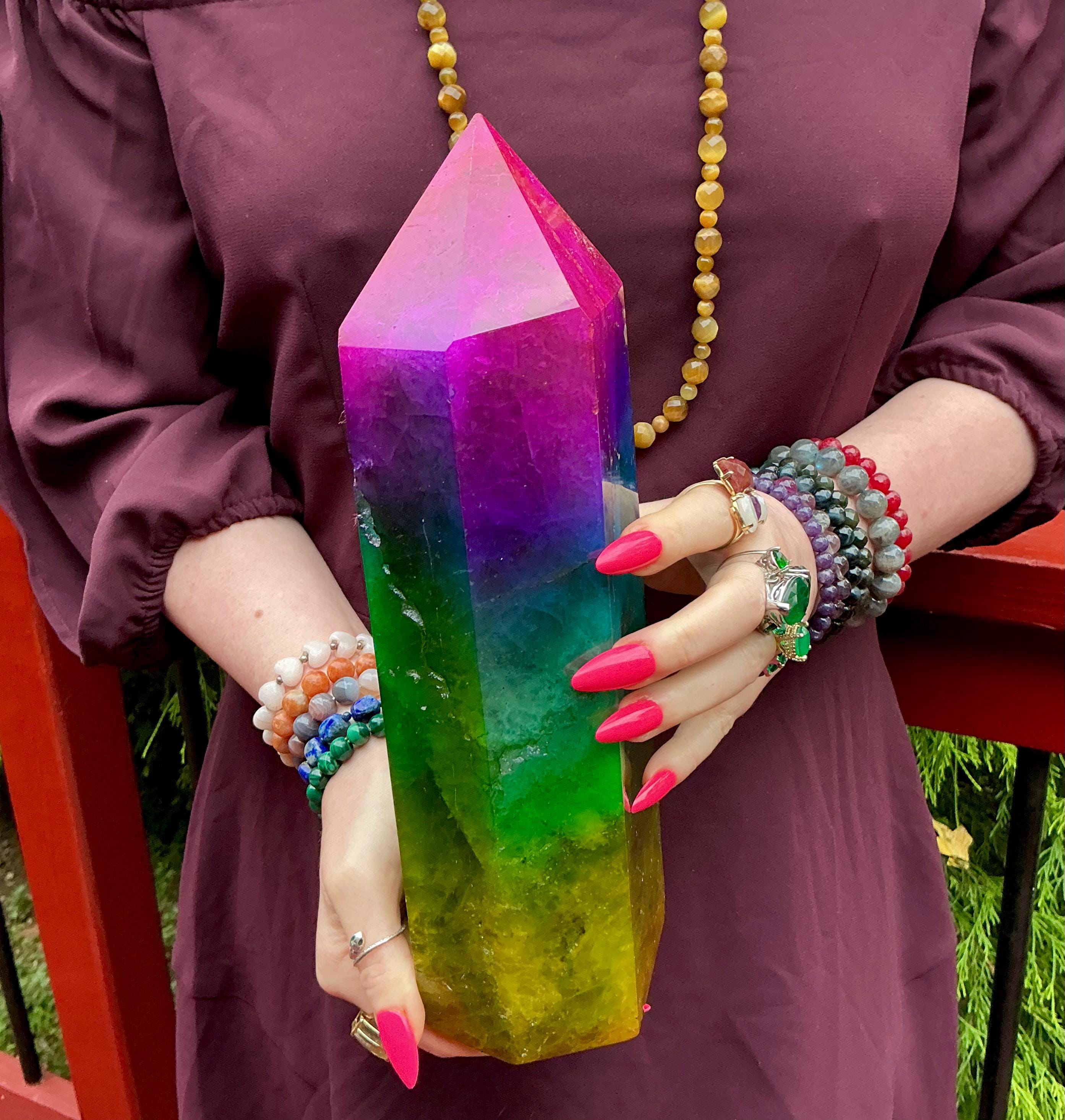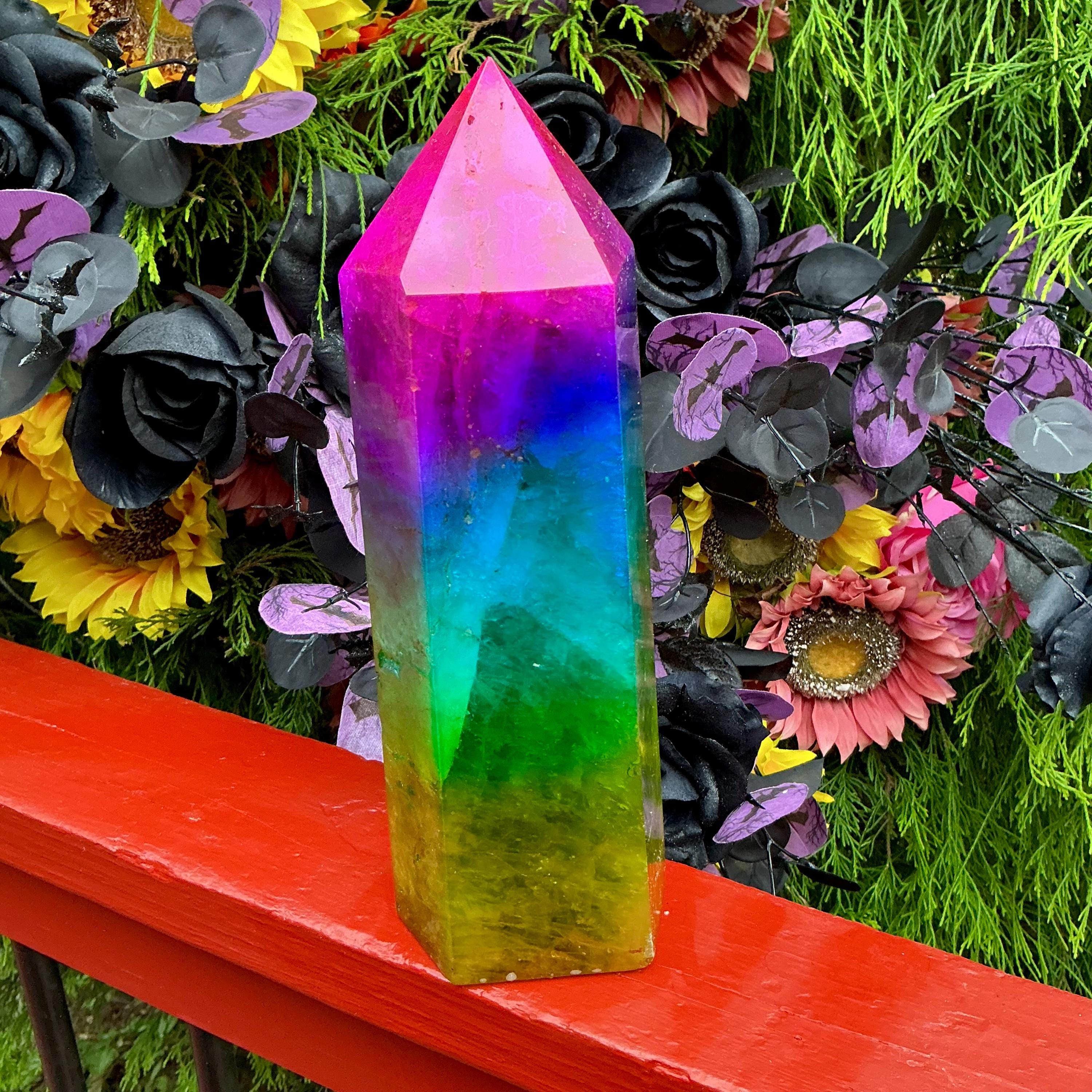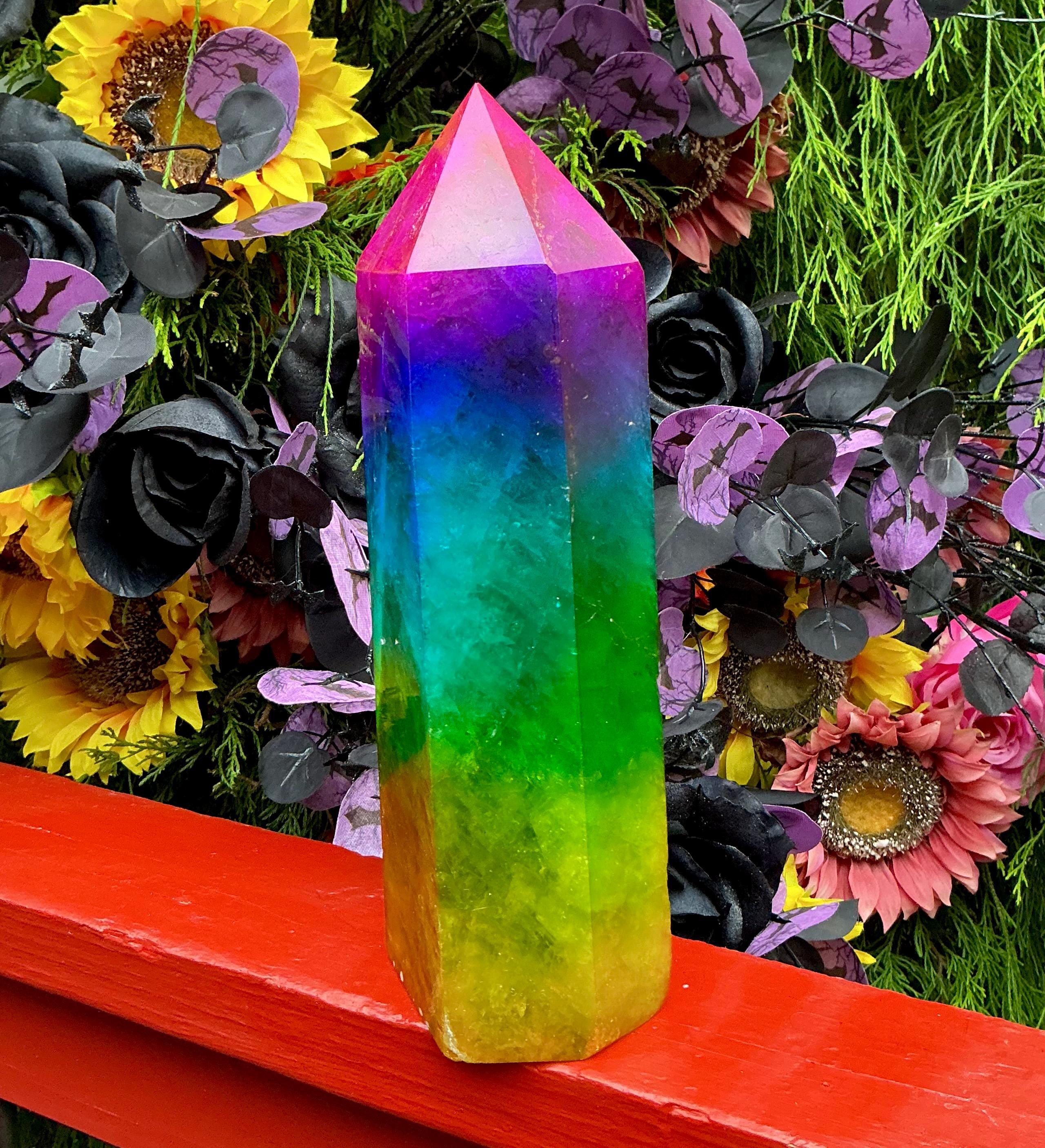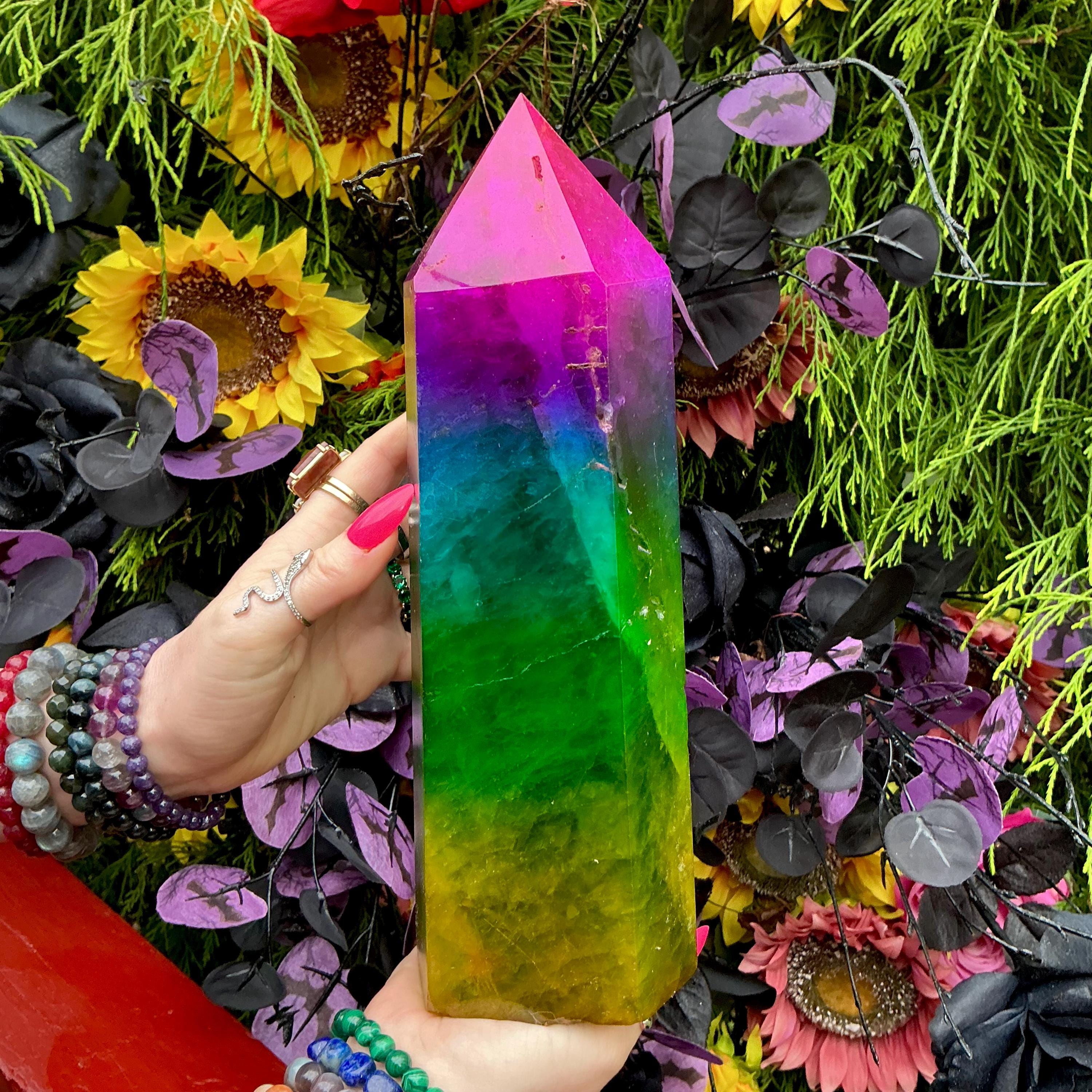 Rainbow Aura Fluorite Crystal Generator ~ 9 lb. 11 oz.~ 10" Tall Tower ~ Colorful Pink Blue Green Yellow Color ~ Fast & Free Shipping U.S.A.