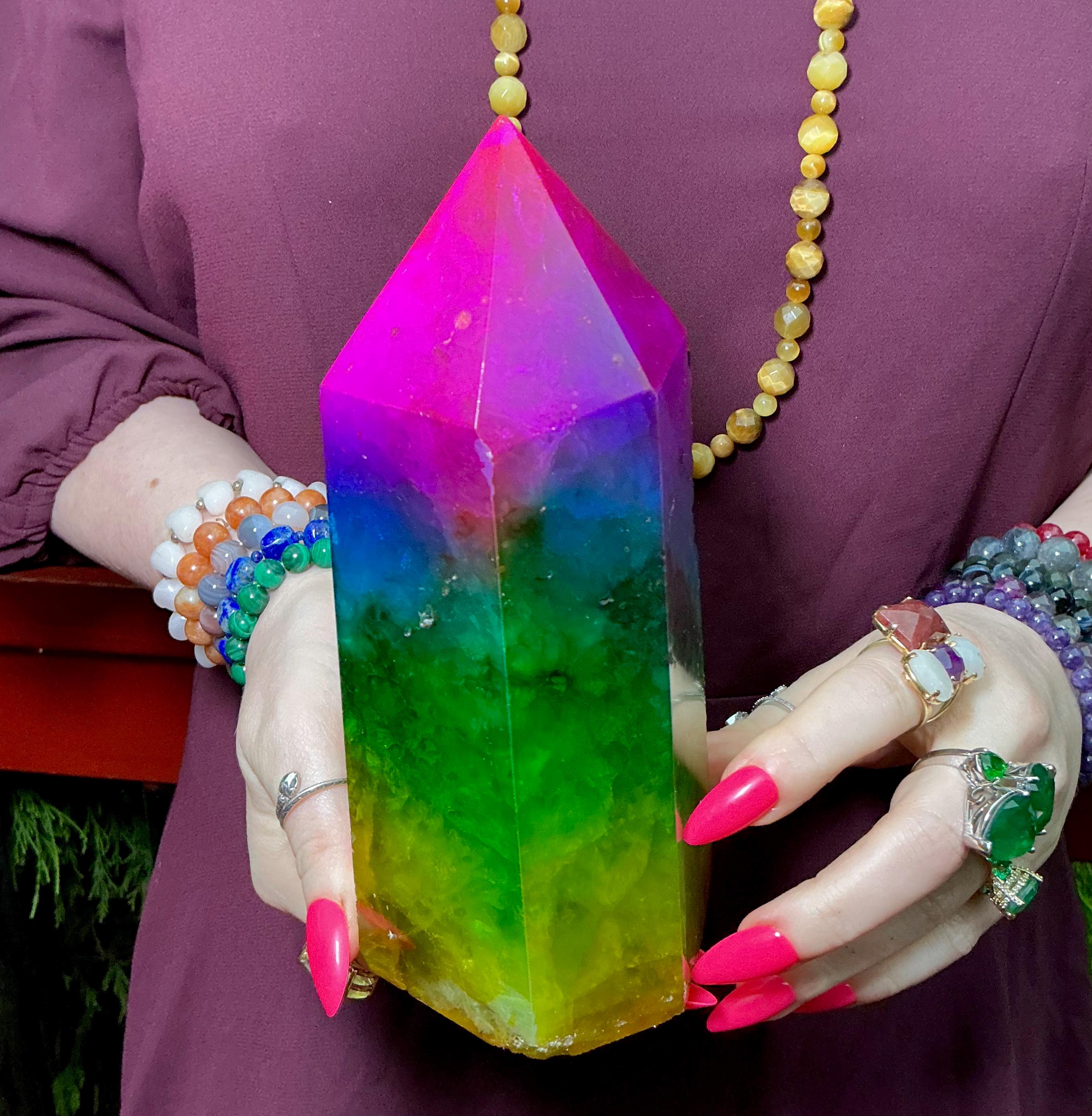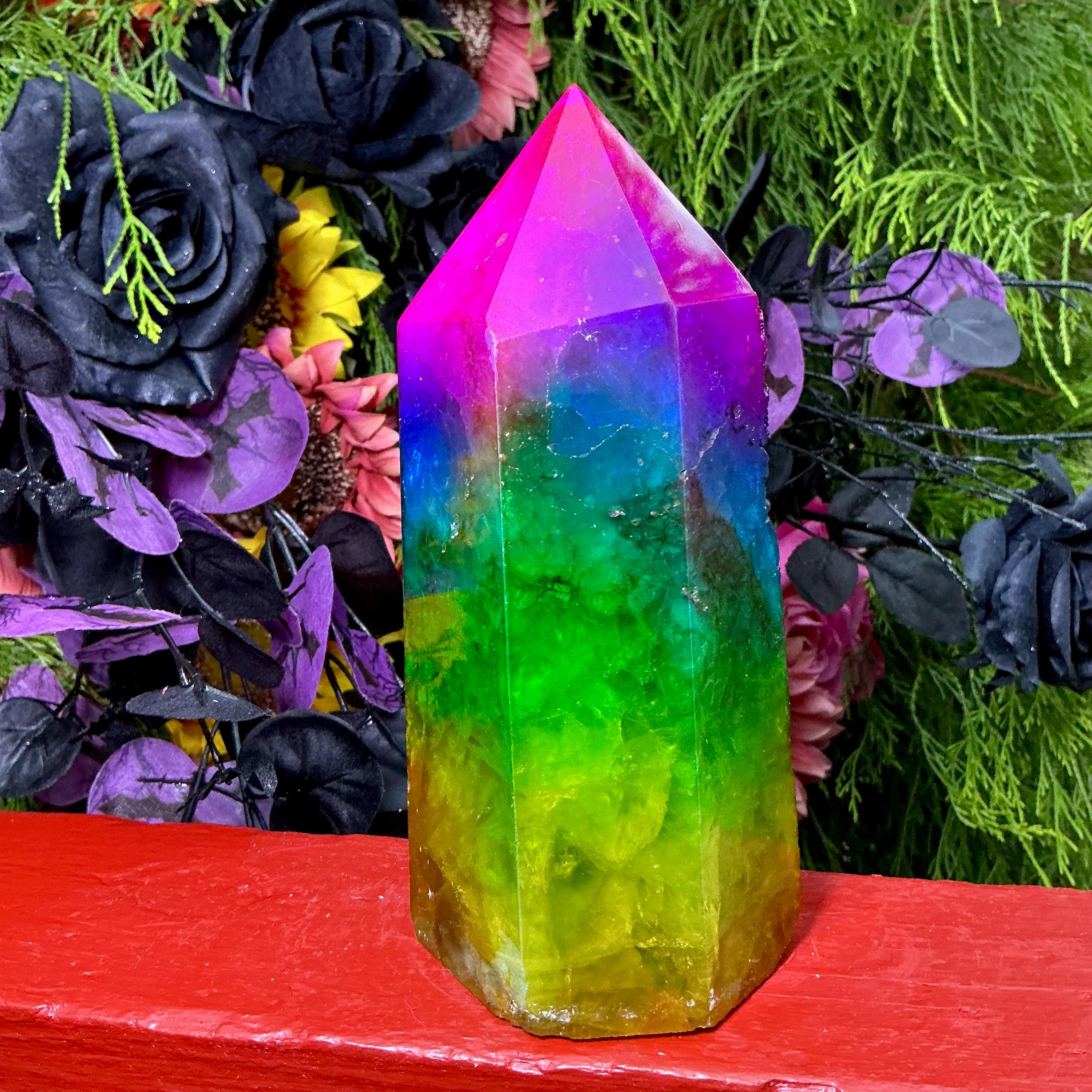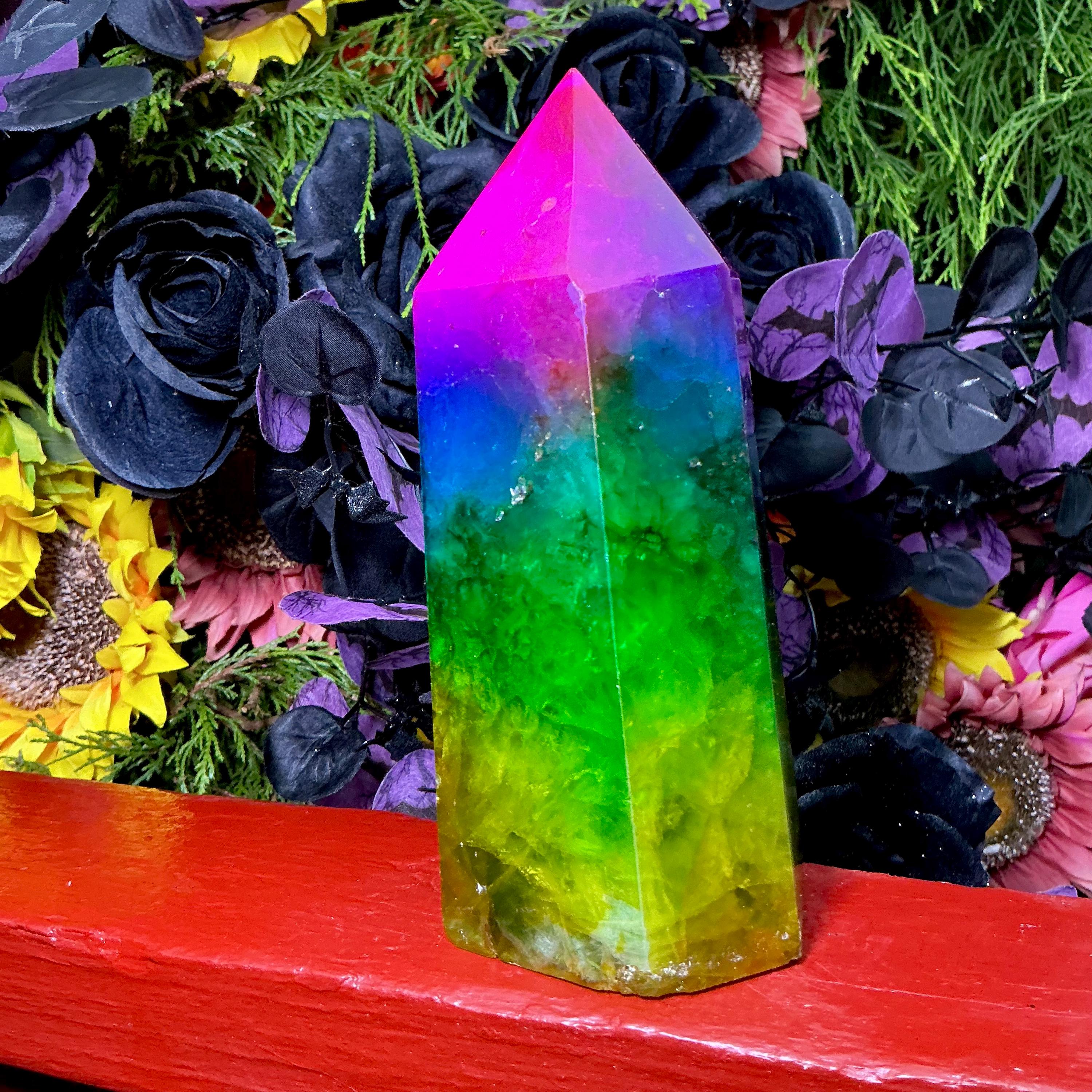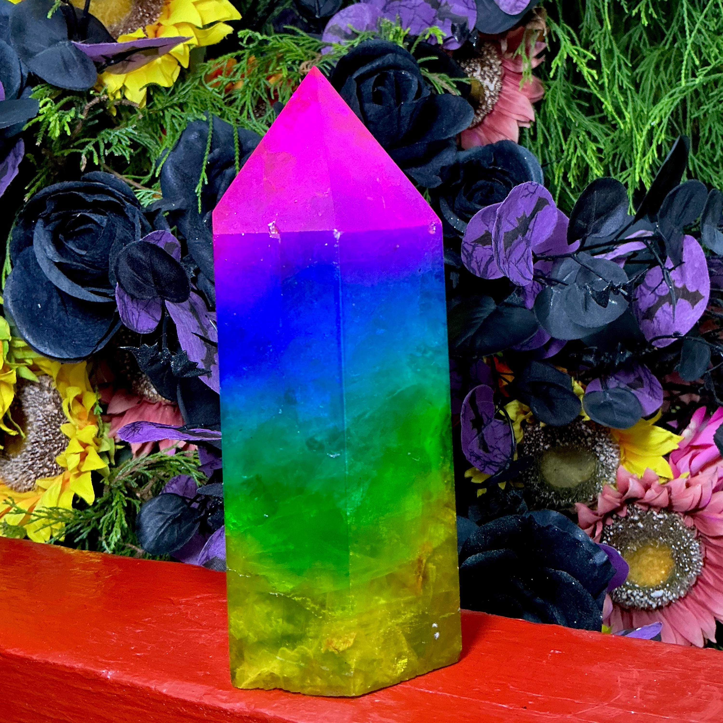 Rainbow Aura Fluorite Crystal Generator ~ 4 lb. 6 oz.~ 7 1/2" Tall Tower ~ Colorful Pink Blue Green Yellow Color ~ Fast Free Shipping U.S.A.