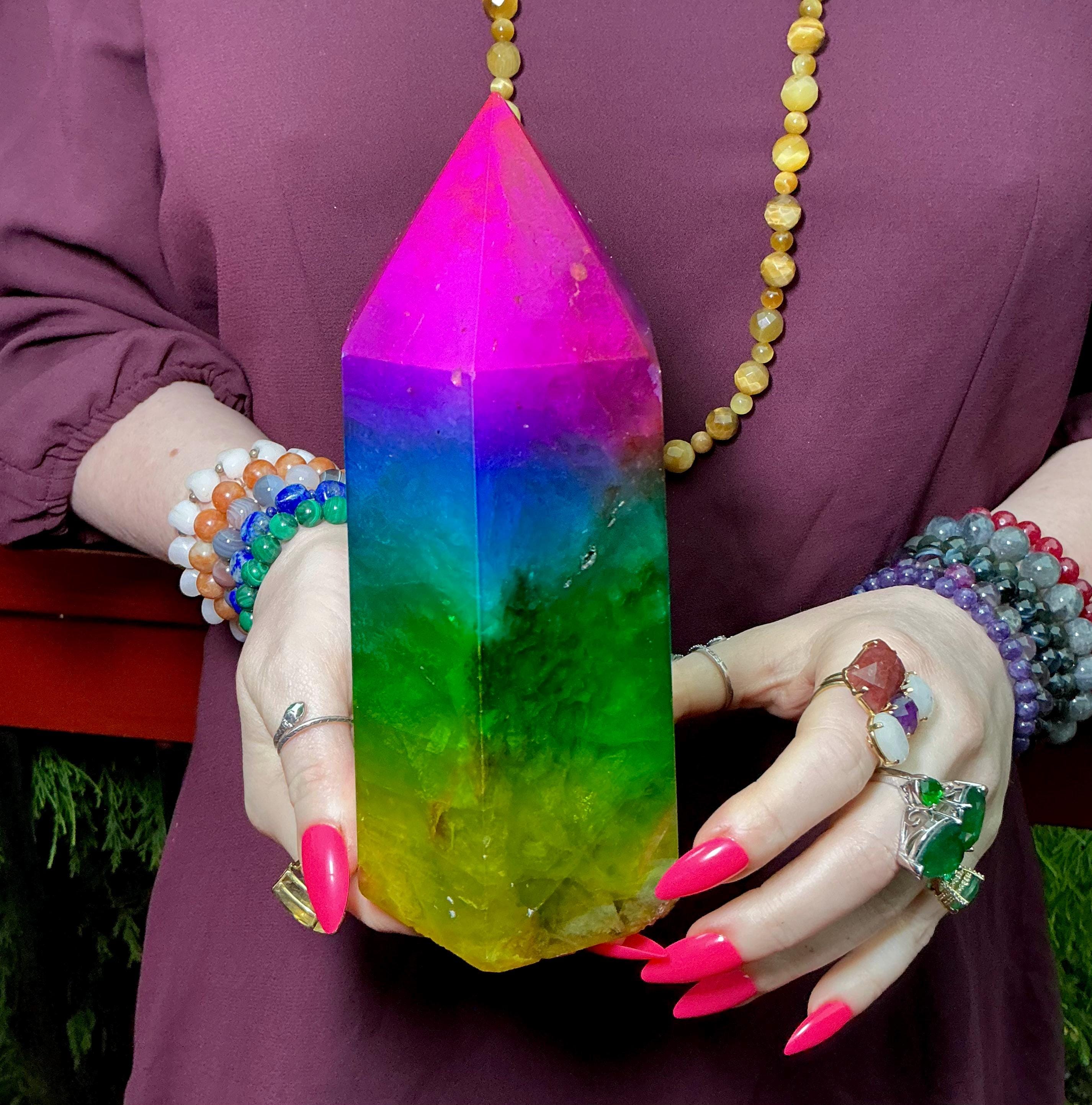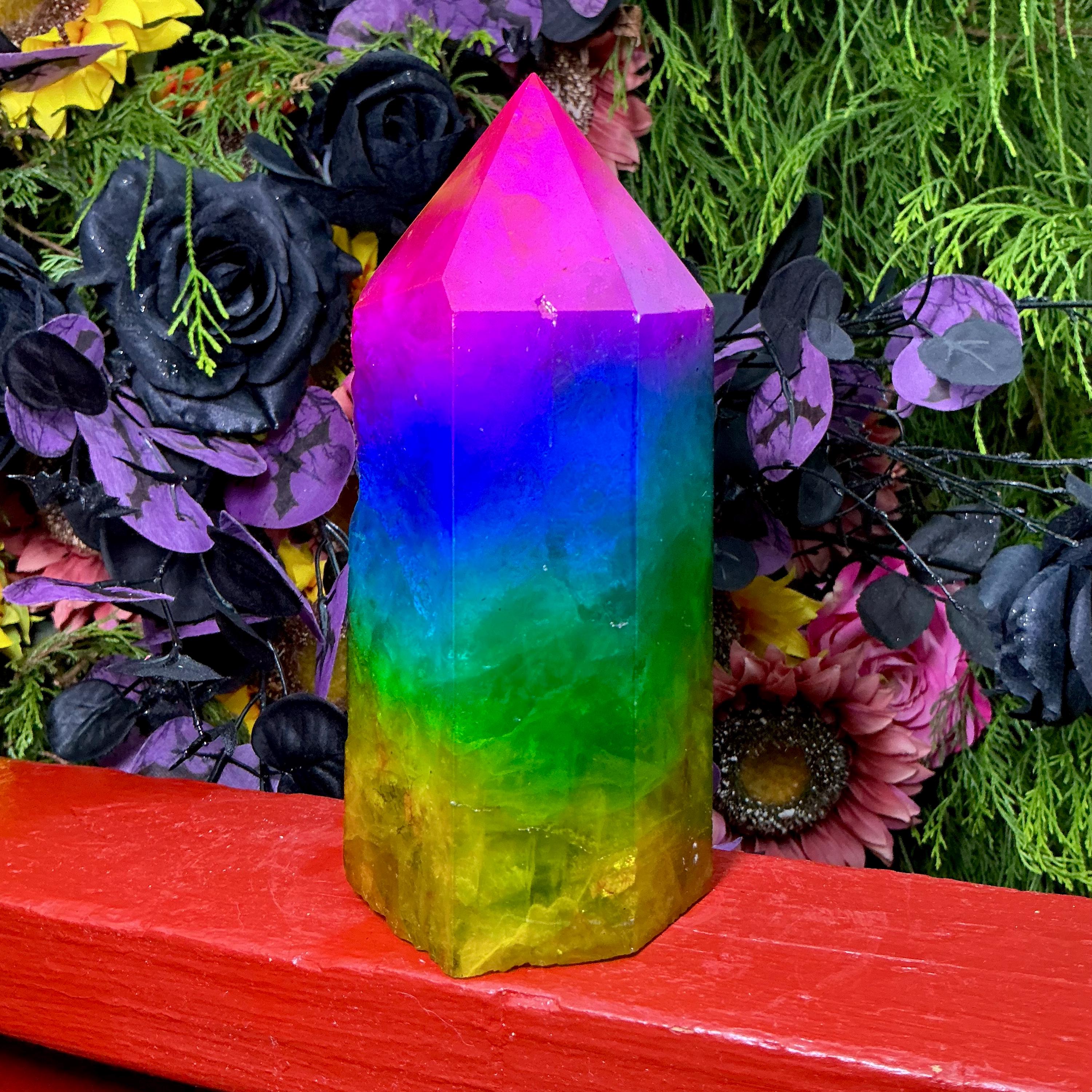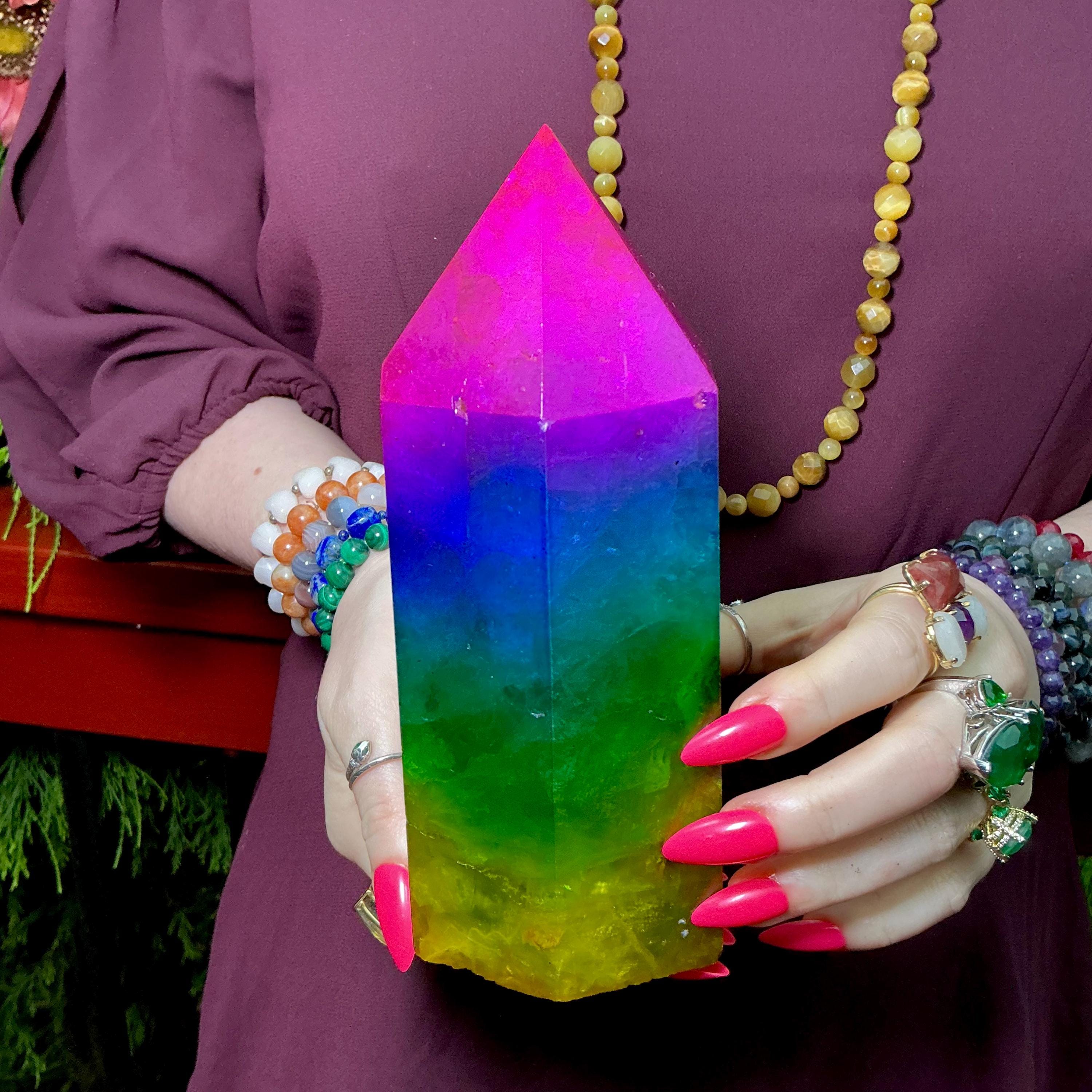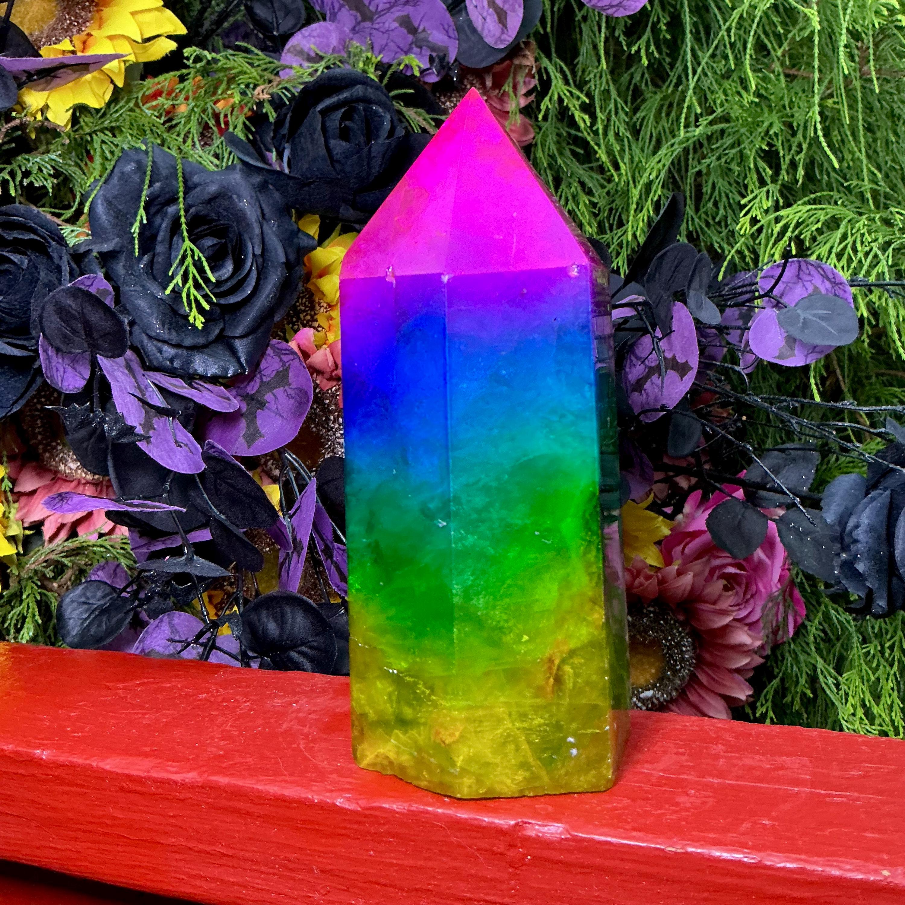 Rainbow Aura Fluorite Crystal Generator ~ 4 lb. 6 oz.~ 7 1/2" Tall Tower ~ Colorful Pink Blue Green Yellow Color ~ Fast Free Shipping U.S.A.