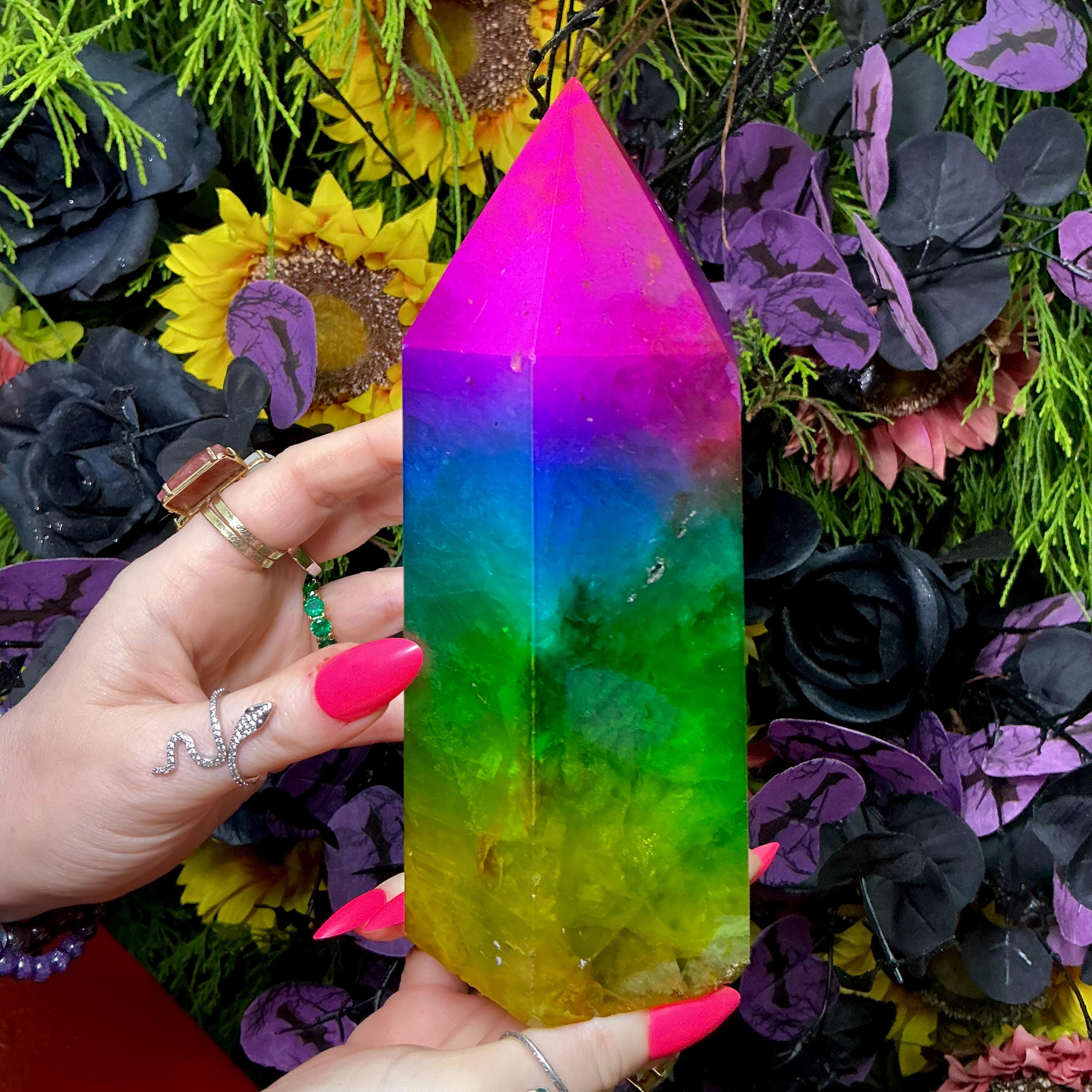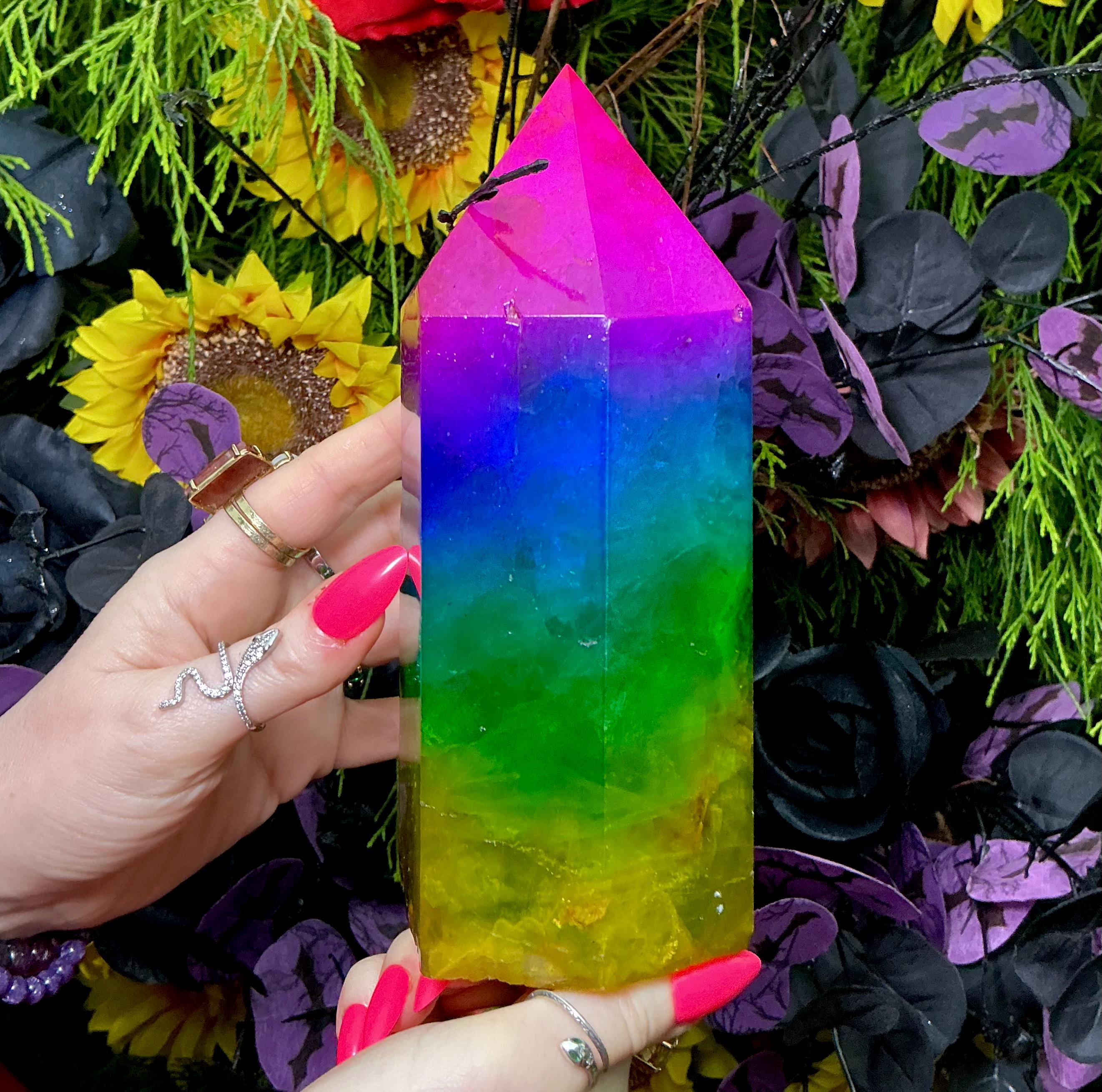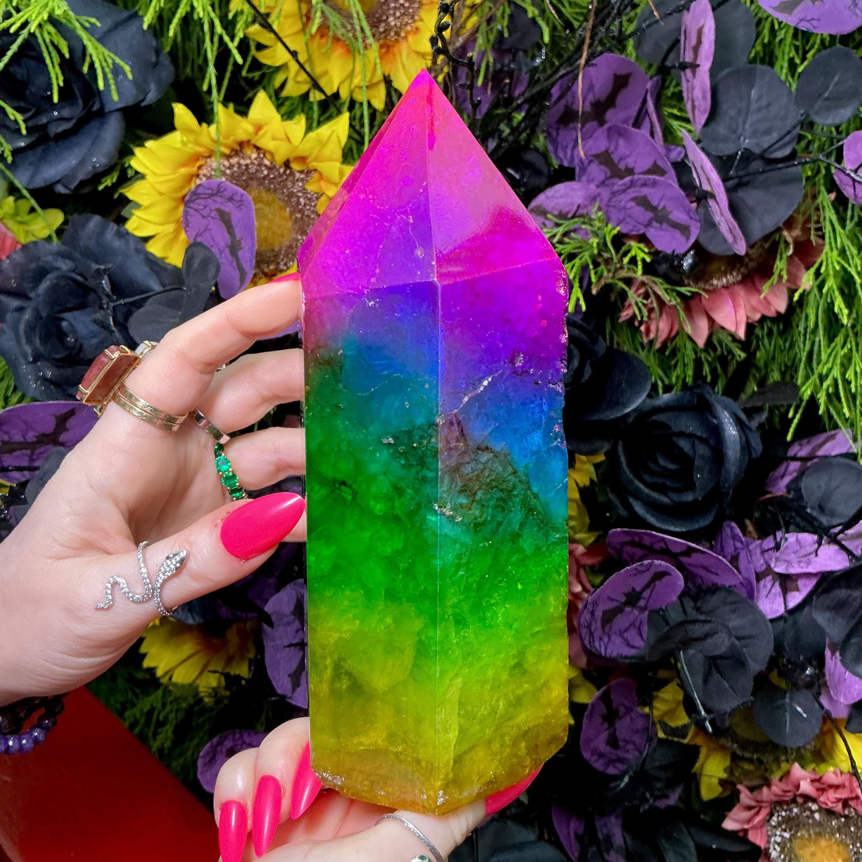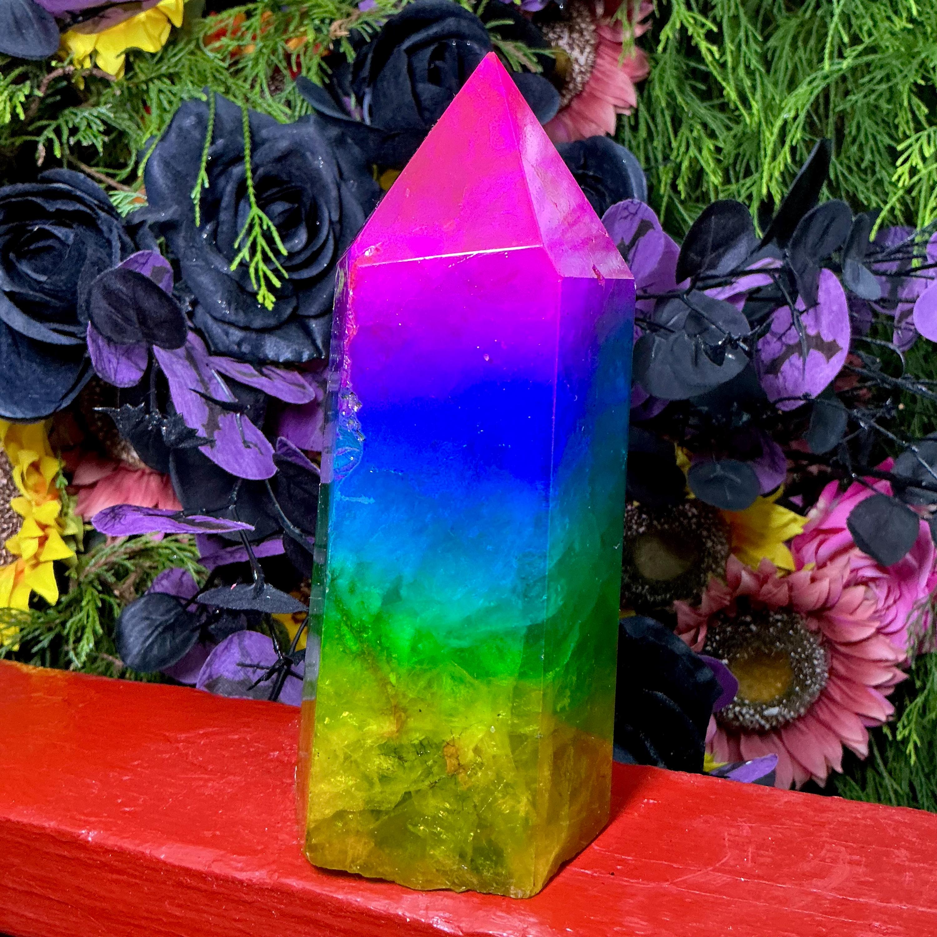 Rainbow Aura Fluorite Crystal Generator ~ 4 lb. 6 oz.~ 7 1/2" Tall Tower ~ Colorful Pink Blue Green Yellow Color ~ Fast Free Shipping U.S.A.