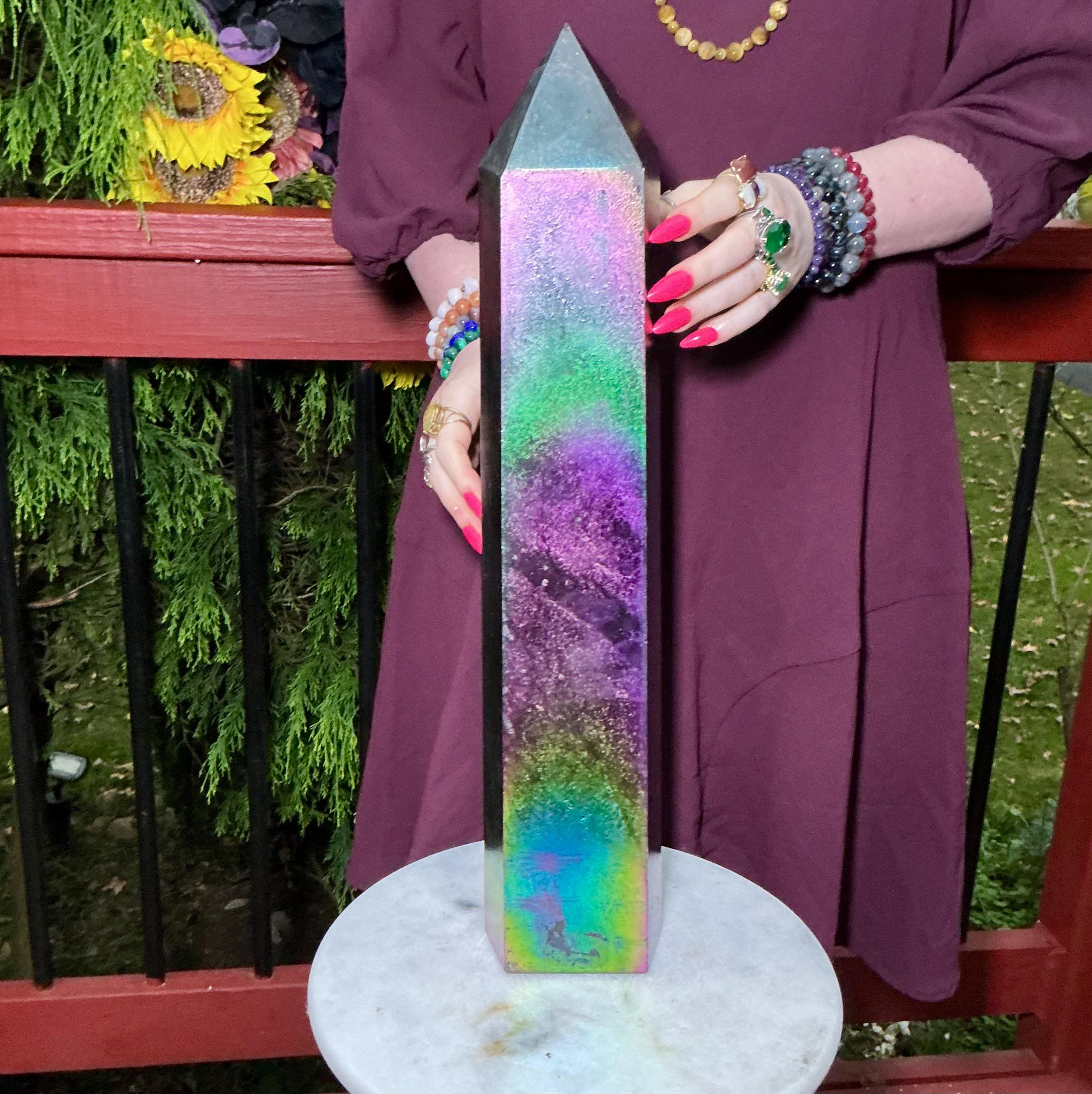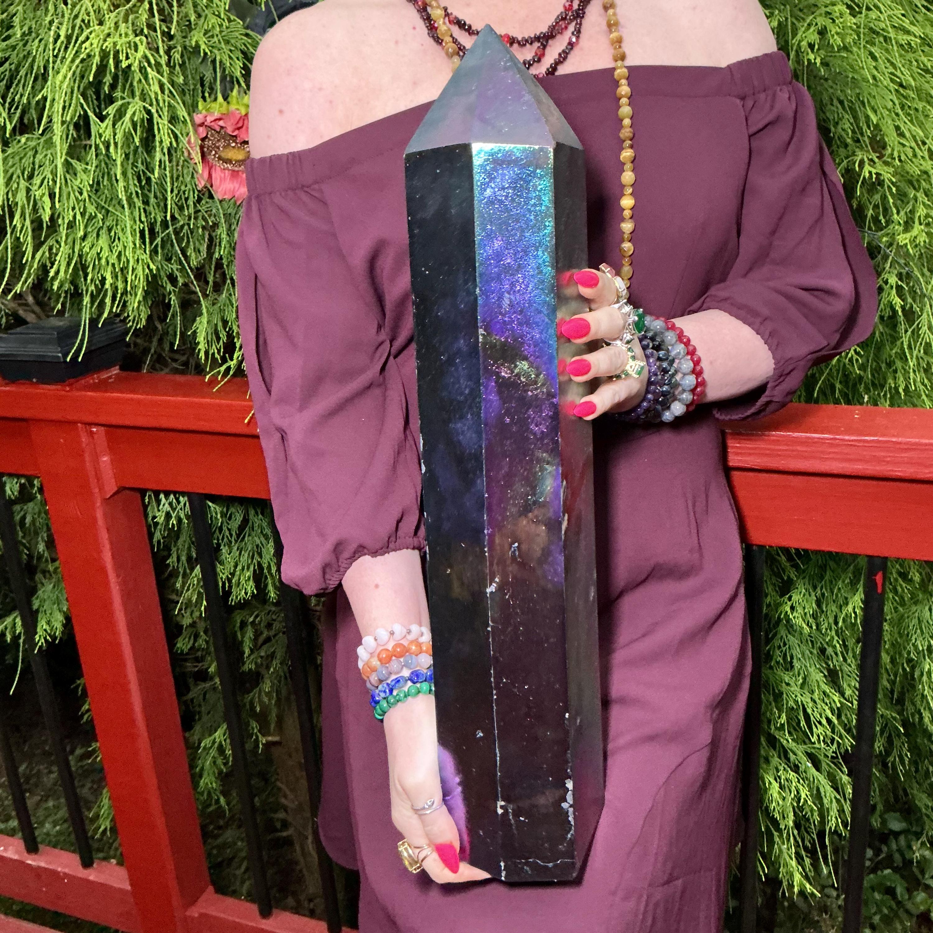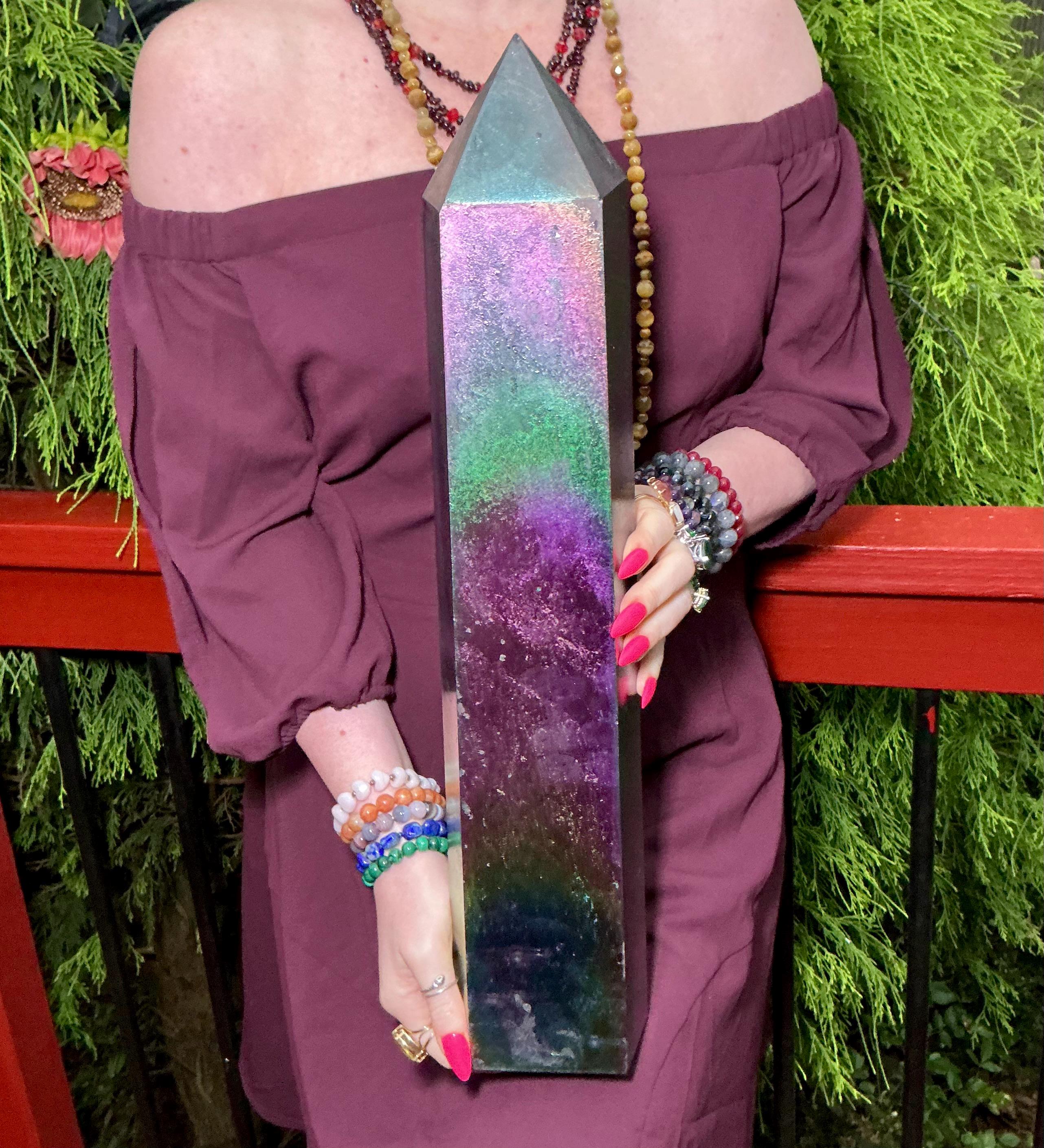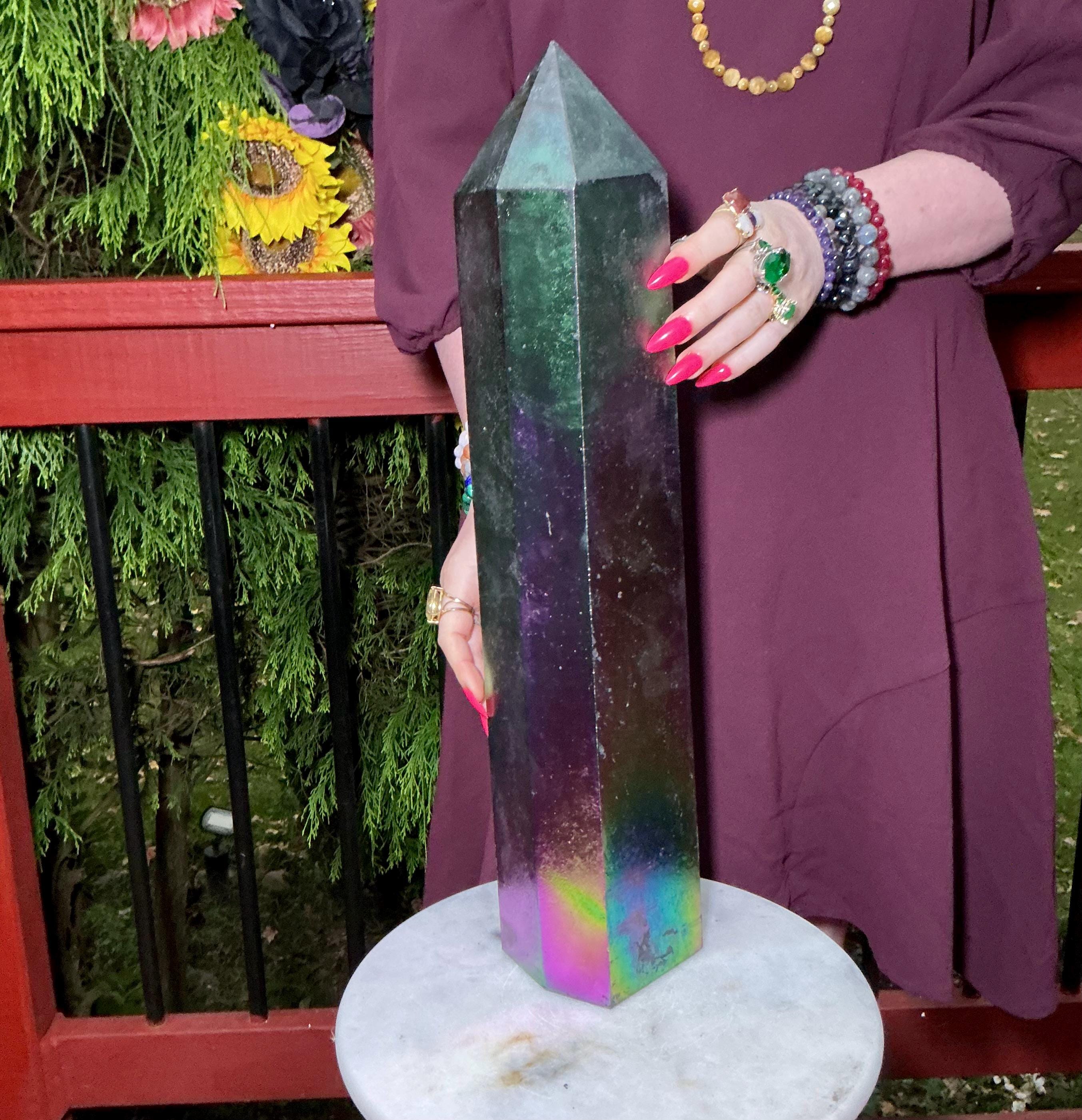 Aura Shungite Crystal Generator ~ Large 25 Lb. ~ 21" Tall Tower ~ Rainbow Colors ~ Pink, Blue, Green, Yellow ~ Fast & Free Shipping from USA